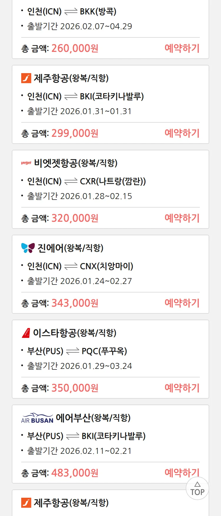 (1월 21일(수)) 모두투어 동남아 특가 항공권