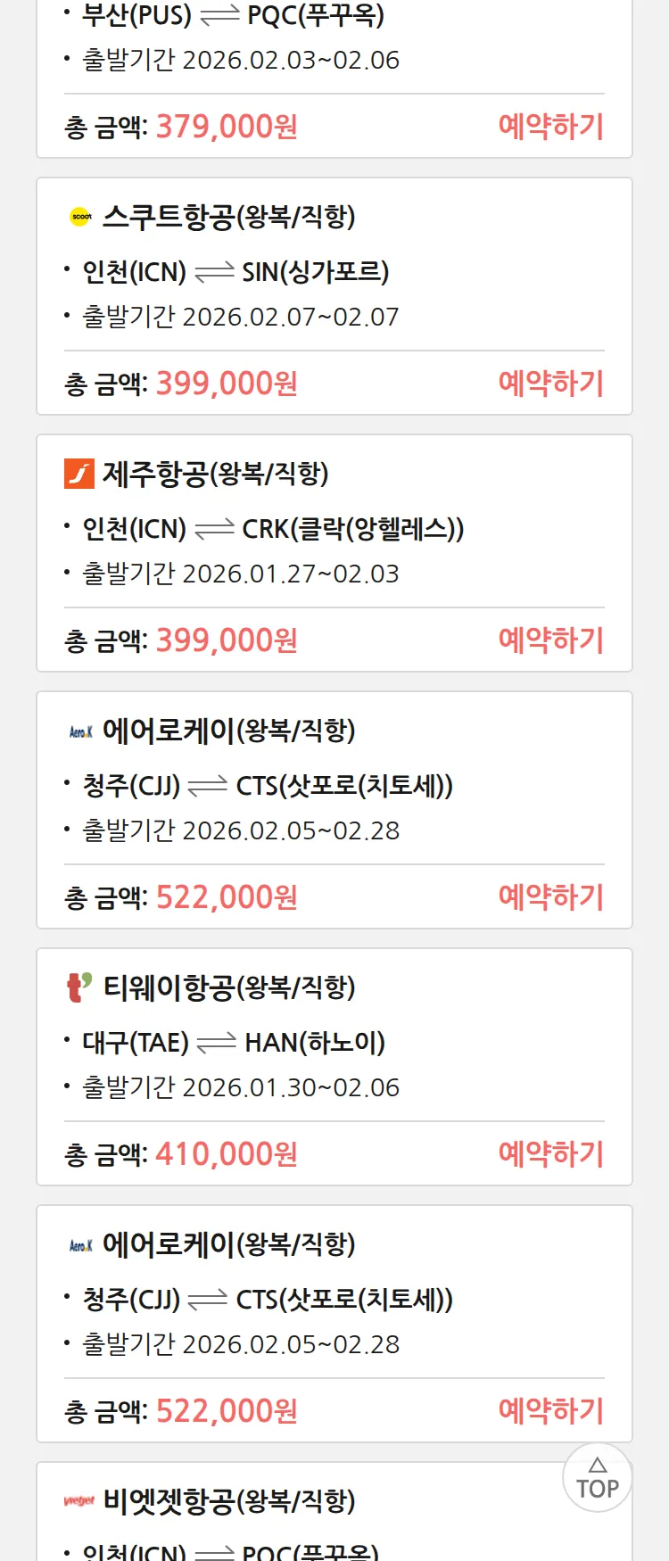 (1월 22일(목)) 땡처리 99.9% 확정 패키지