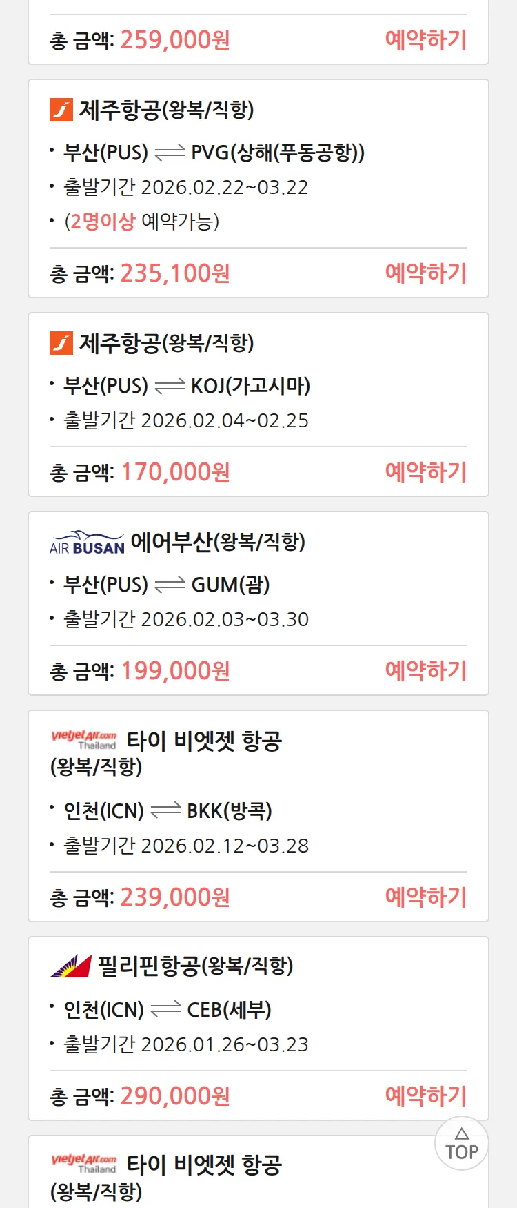 (1월 21일(수)) 땡처리 99.9% 확정 패키지