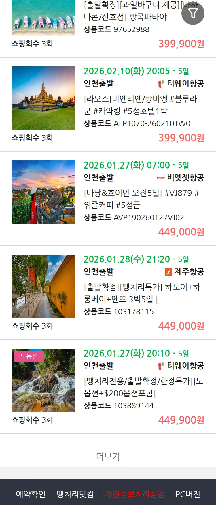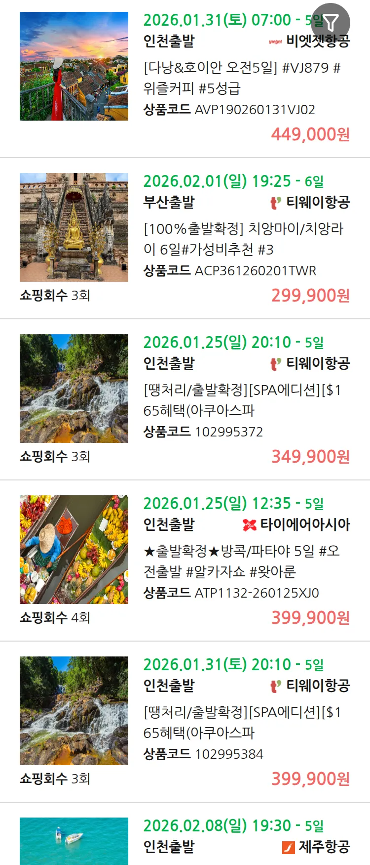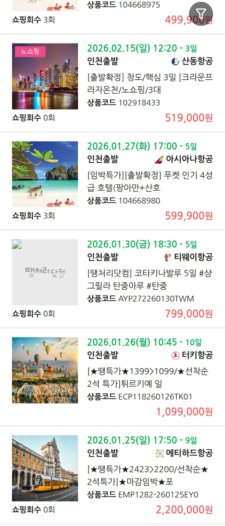 (1월 22일(목)) 땡처리 99.9% 확정 패키지