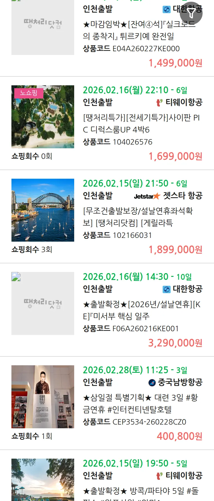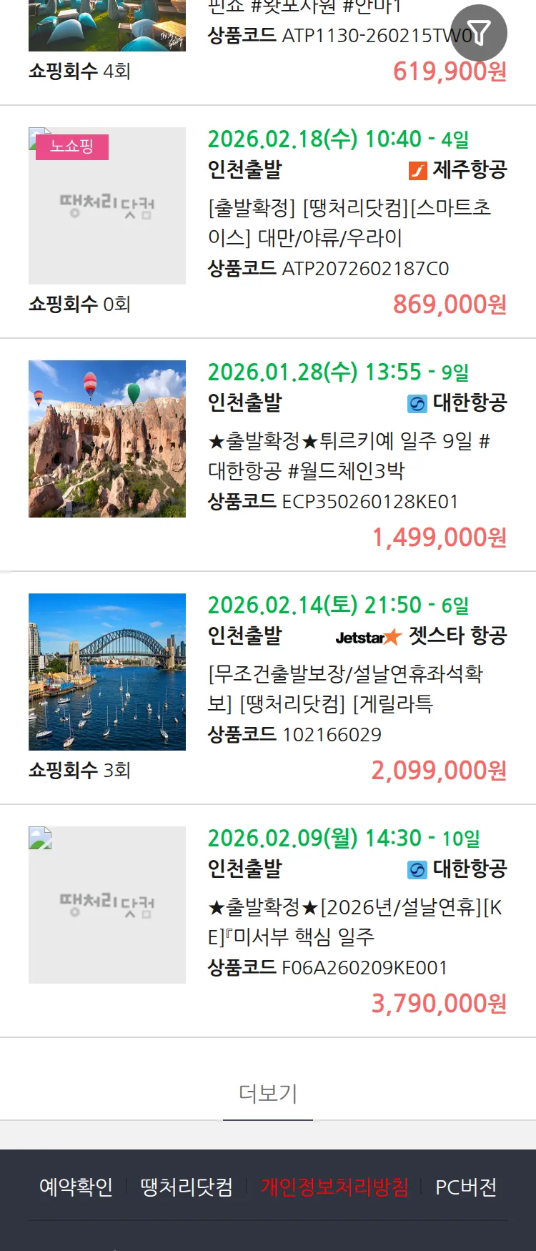 (1월 22일(목)) 땡처리 연휴 패키지 패키지