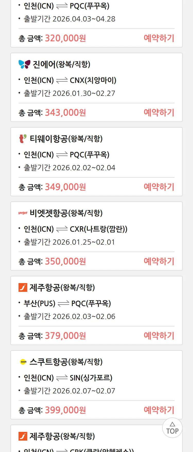 (1월 23일(금)) 모두투어 동남아 특가 항공권