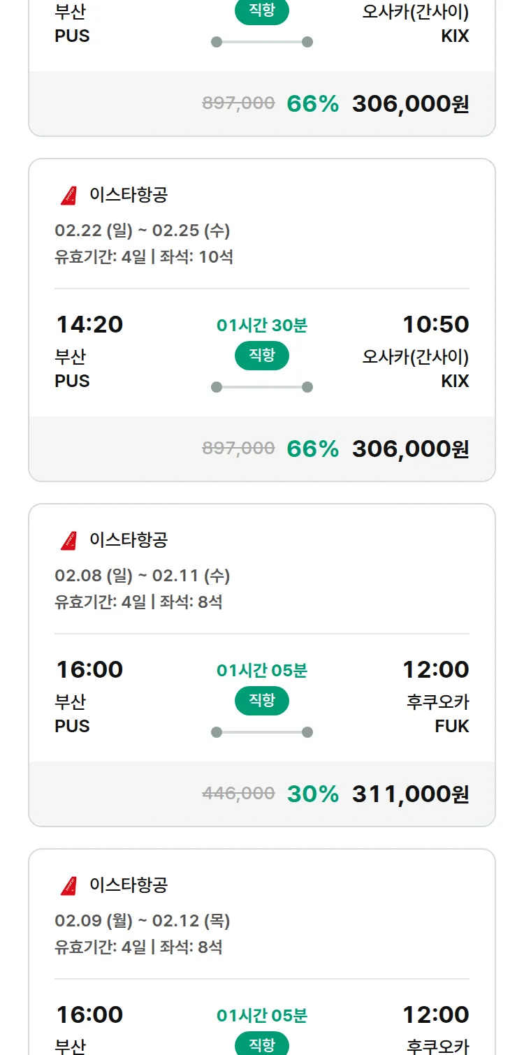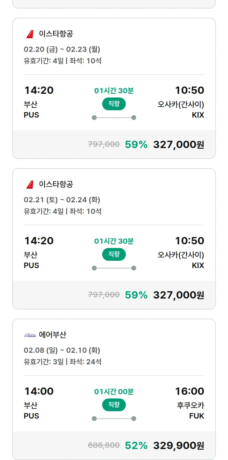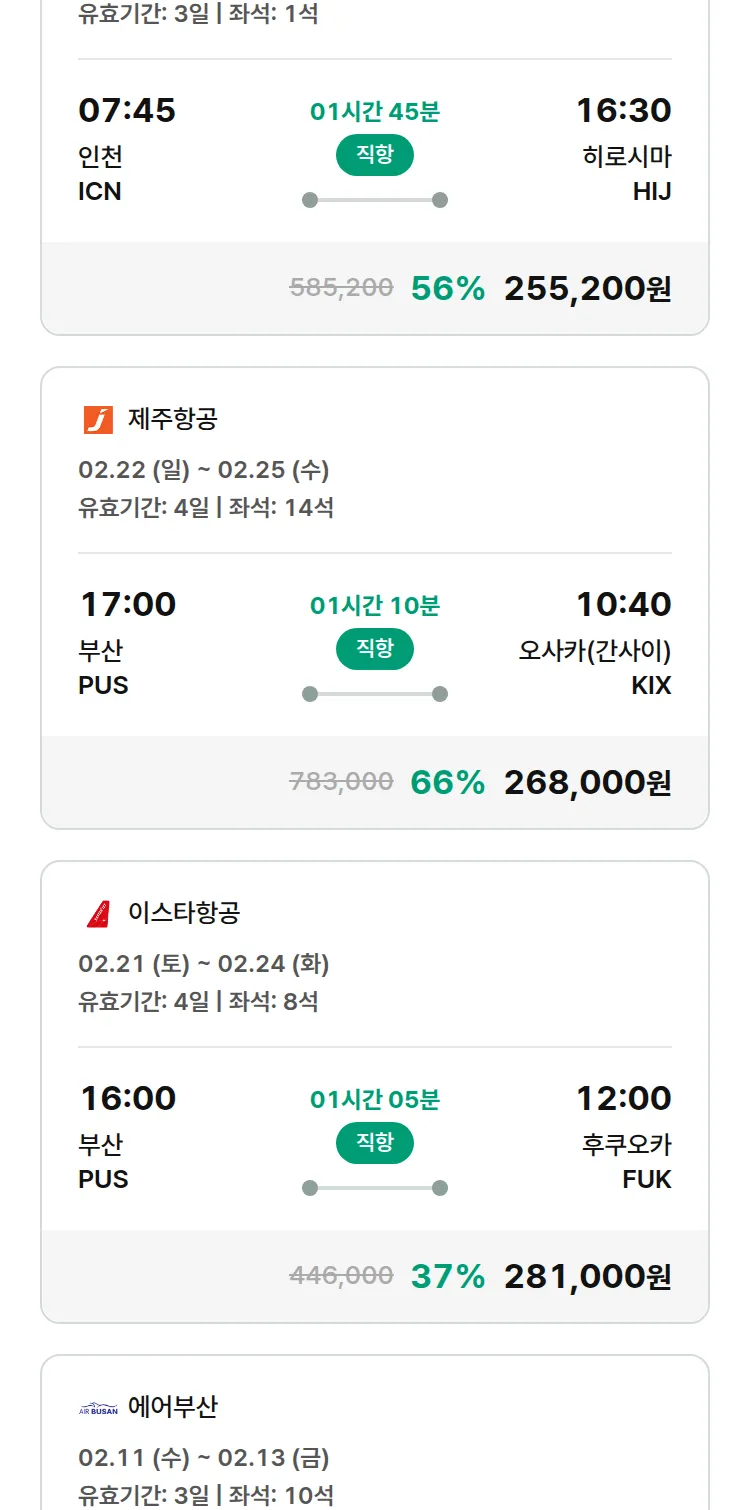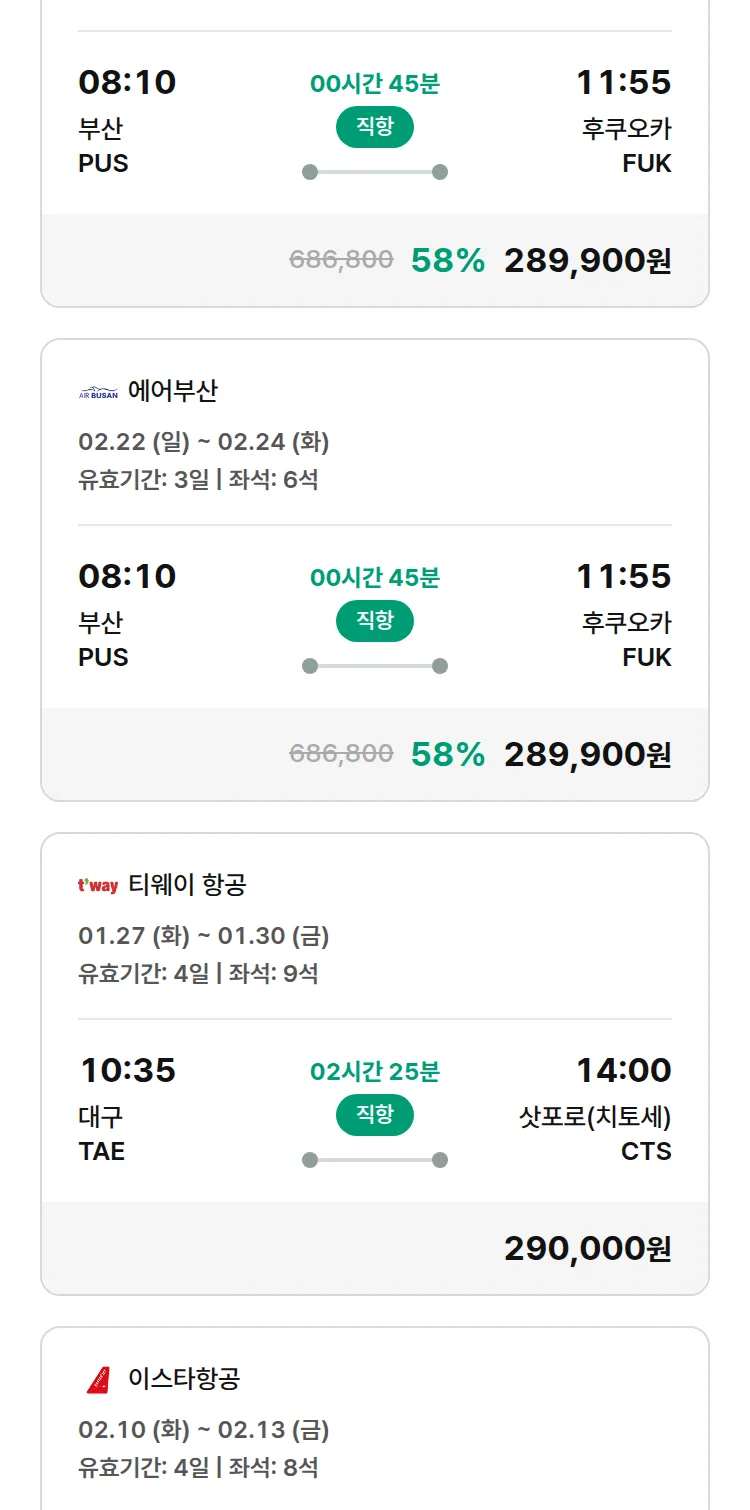 (1월 22일(목)) 땡처리 특가 항공권