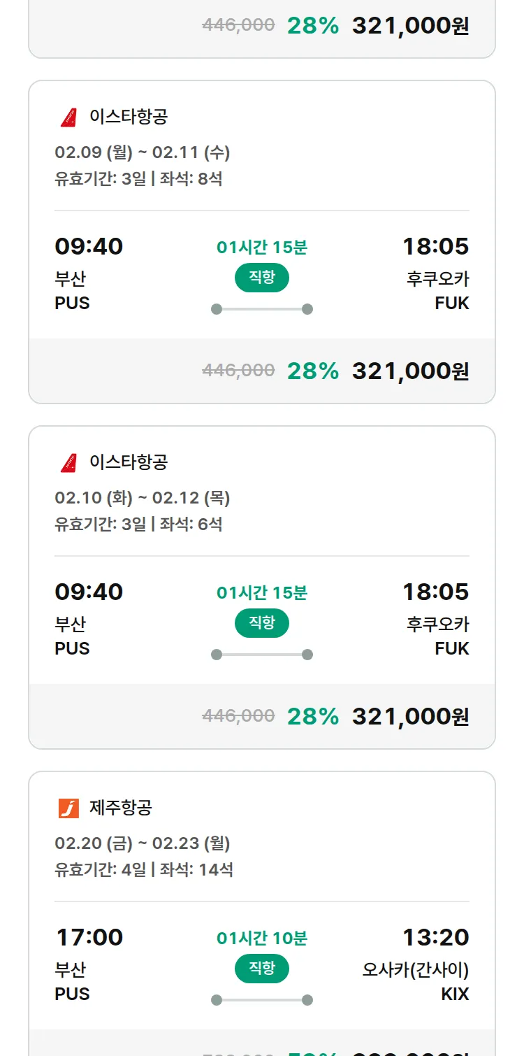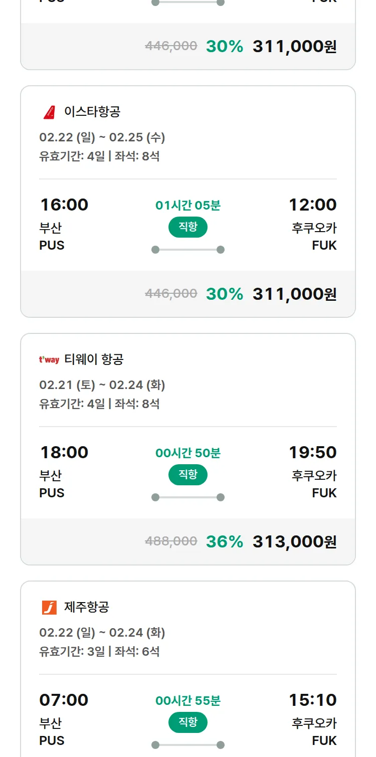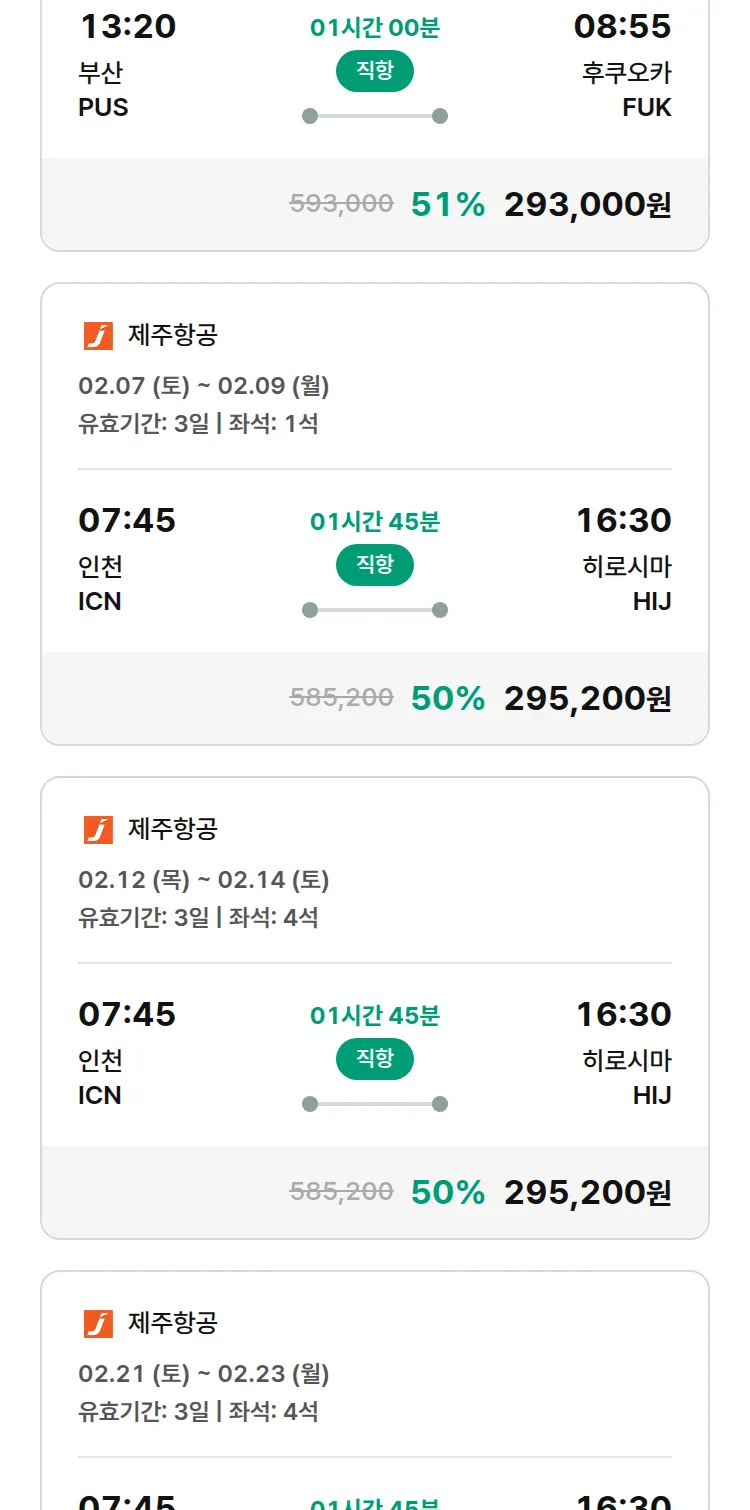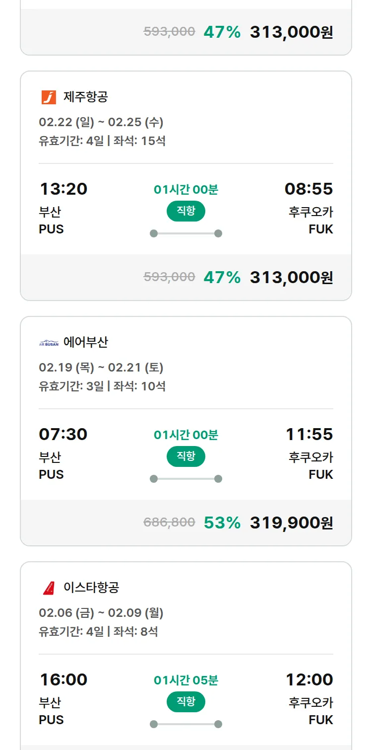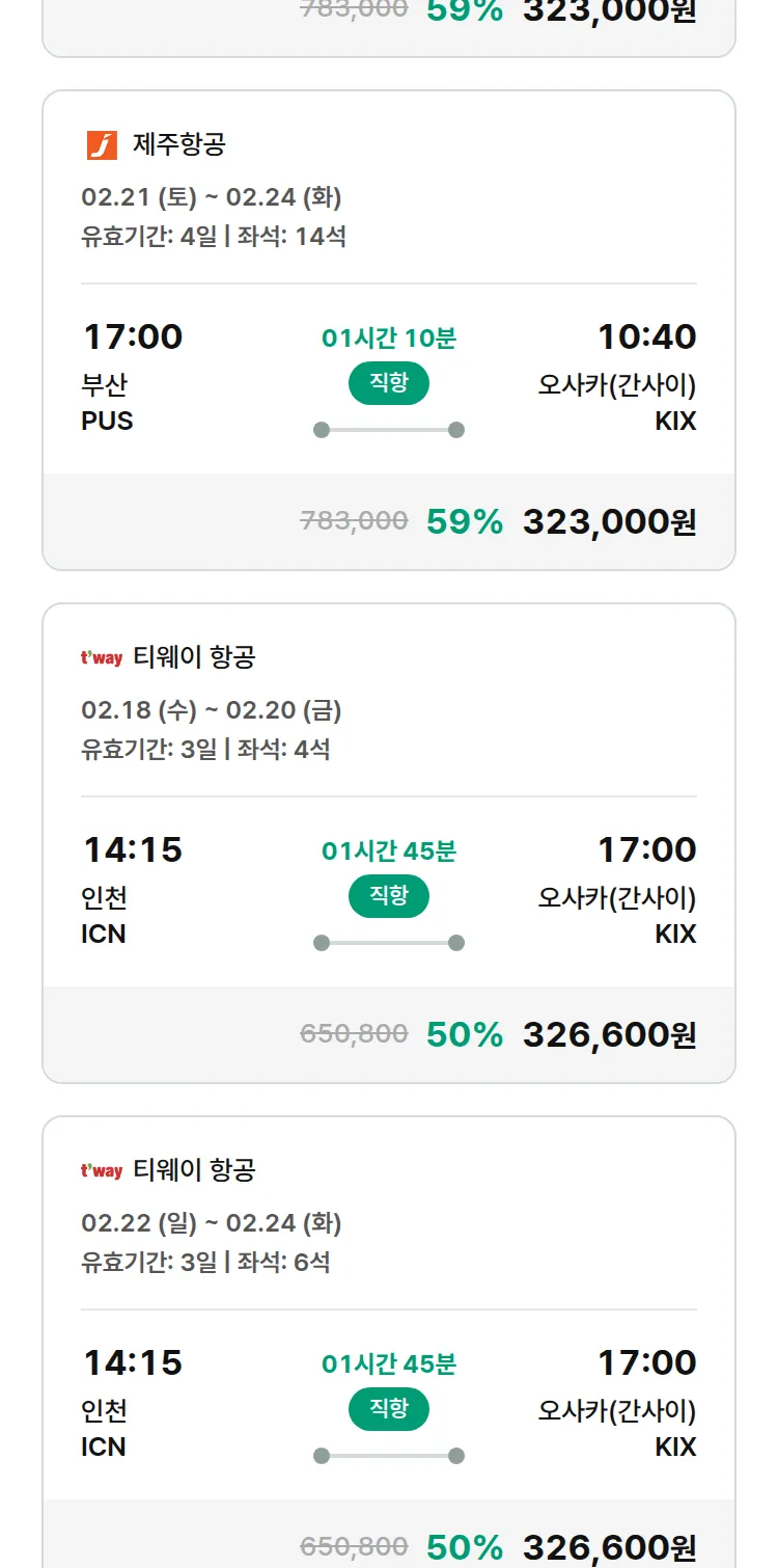 (1월 22일(목)) 땡처리 특가 항공권