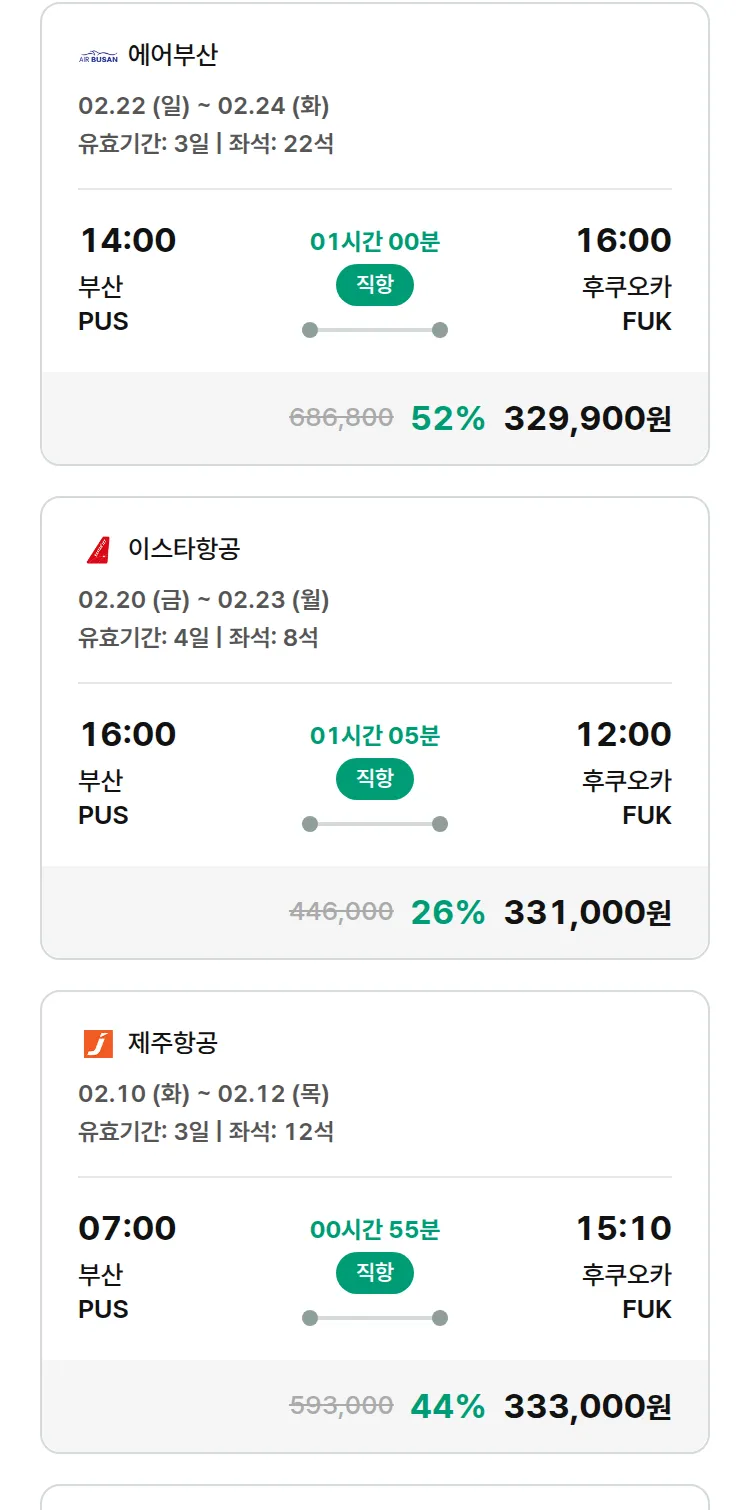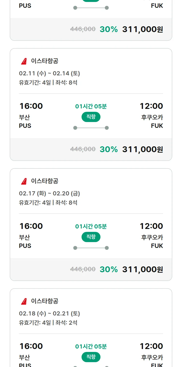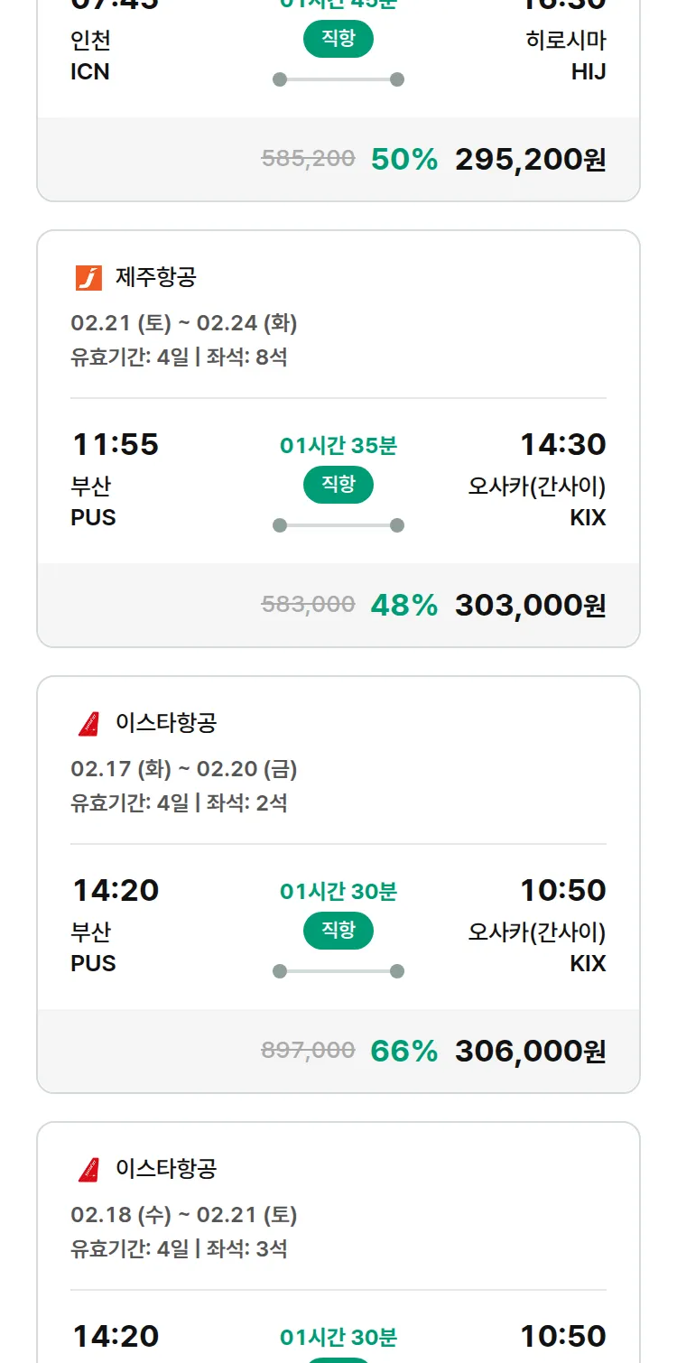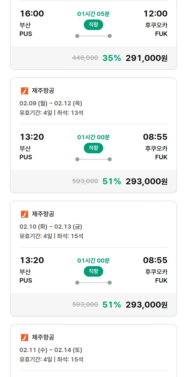 (1월 22일(목)) 땡처리 특가 항공권