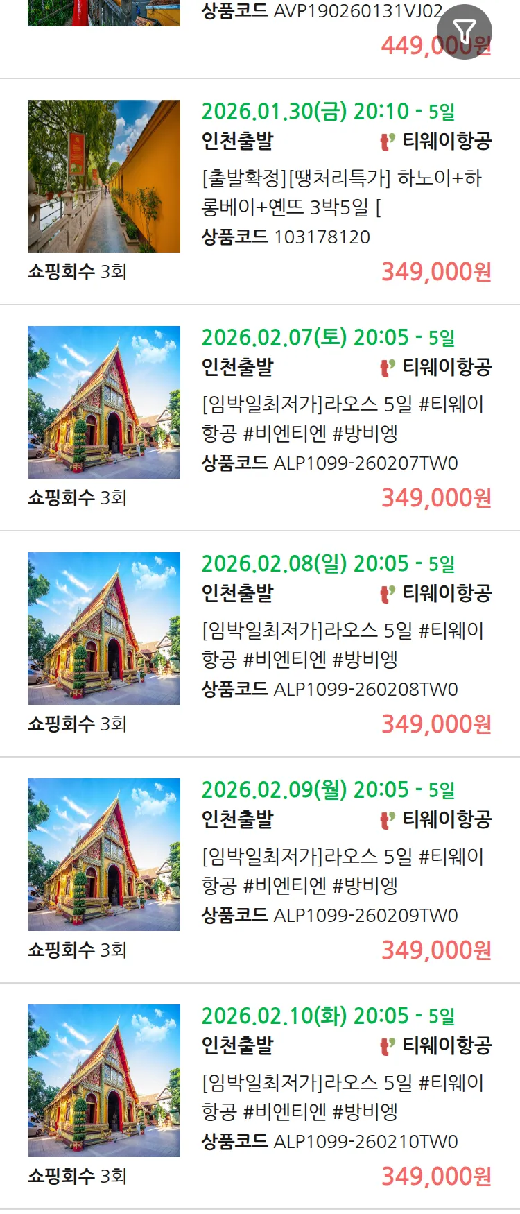 (1월 22일(목)) 땡처리 연휴 패키지 패키지