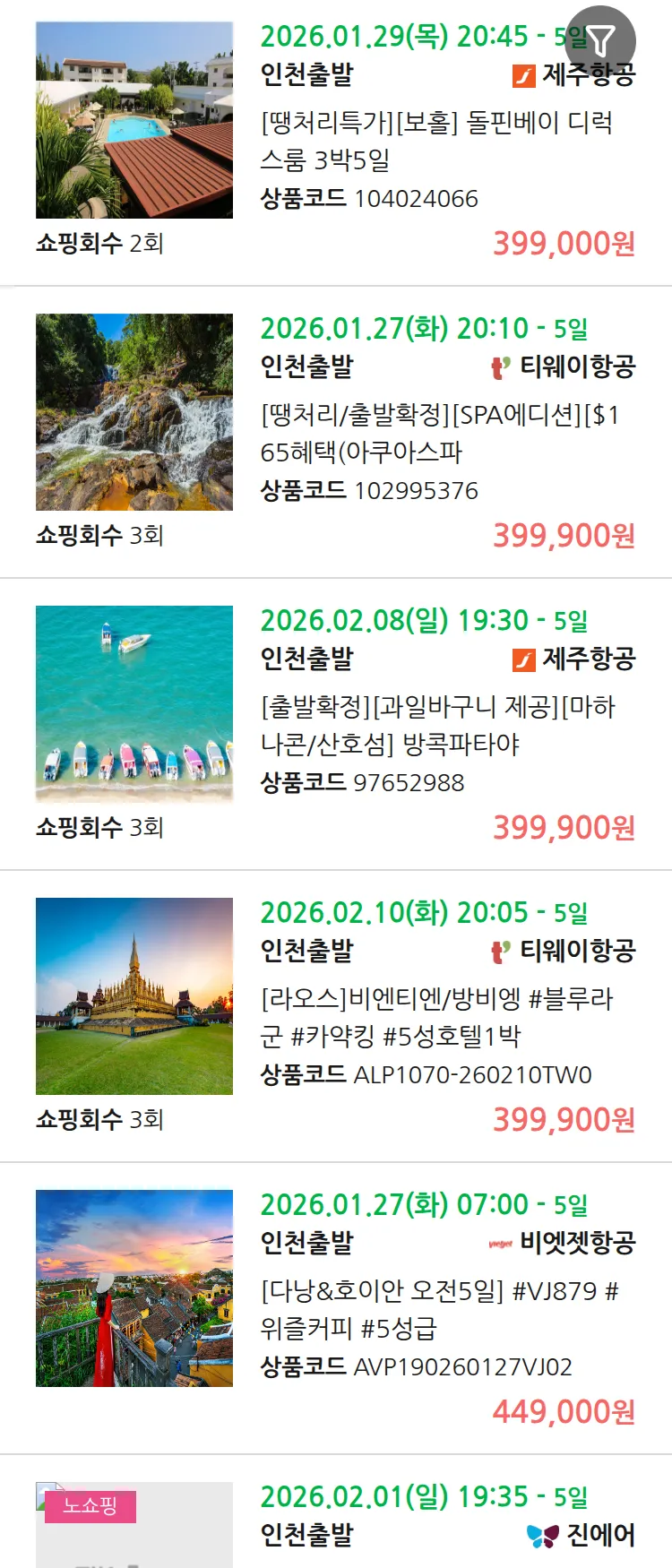 (1월 23일(금)) 땡처리 99.9% 확정 패키지
