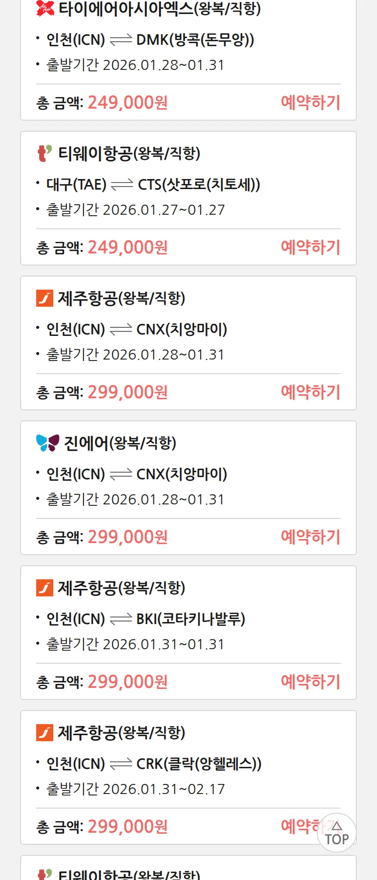 (1월 23일(금)) 땡처리 99.9% 확정 패키지