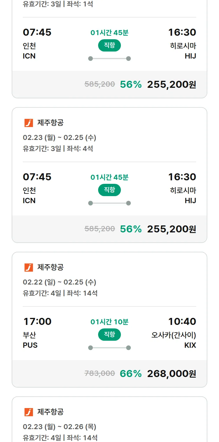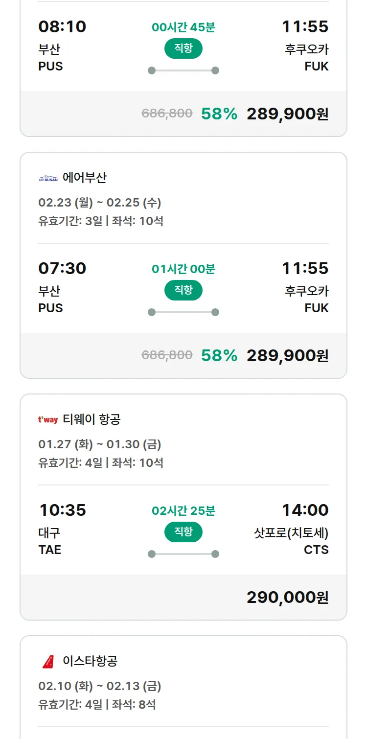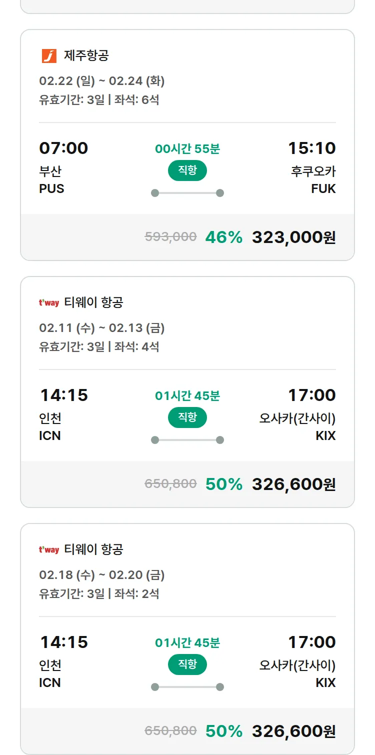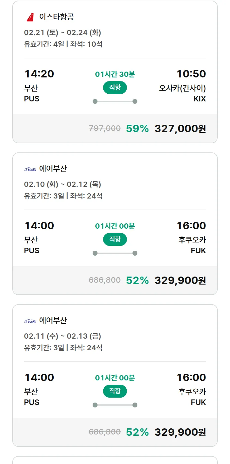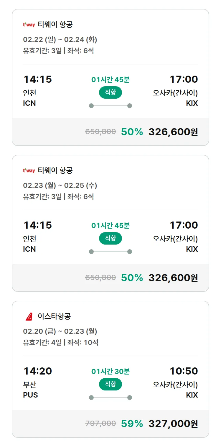 (1월 22일(목)) 모두투어 일본 특가 항공권