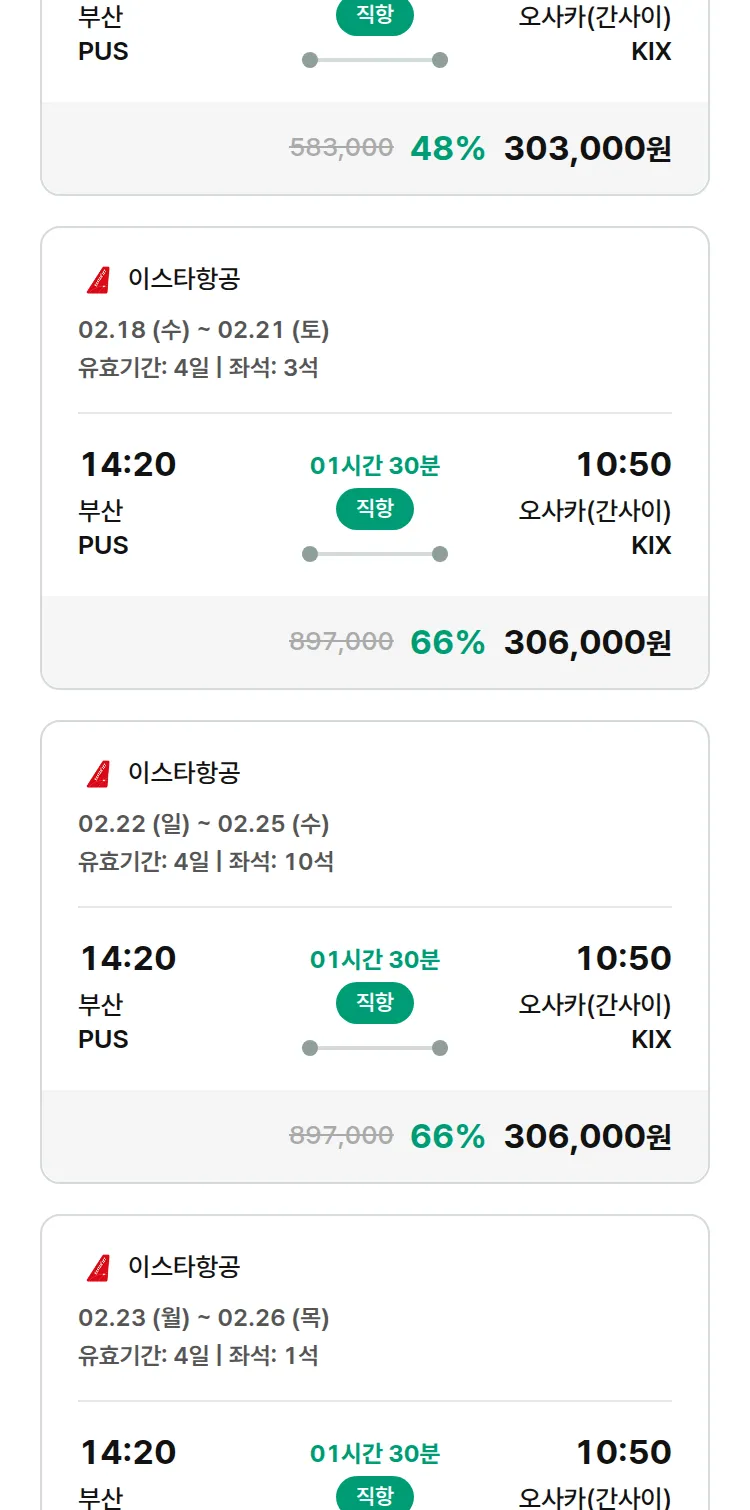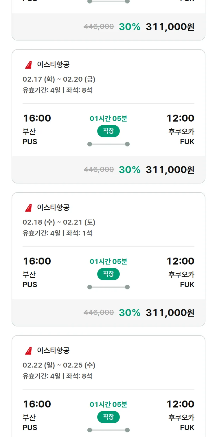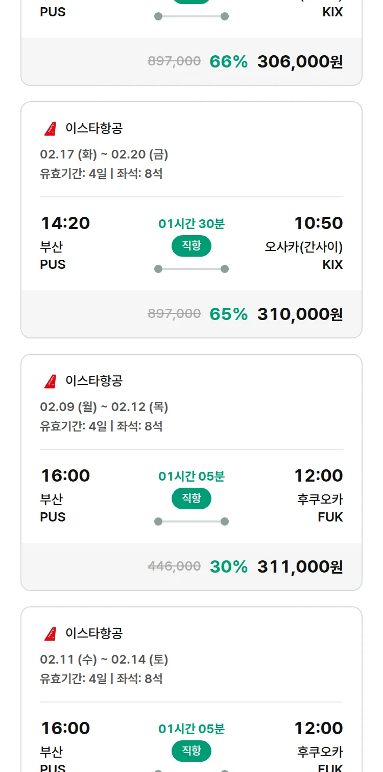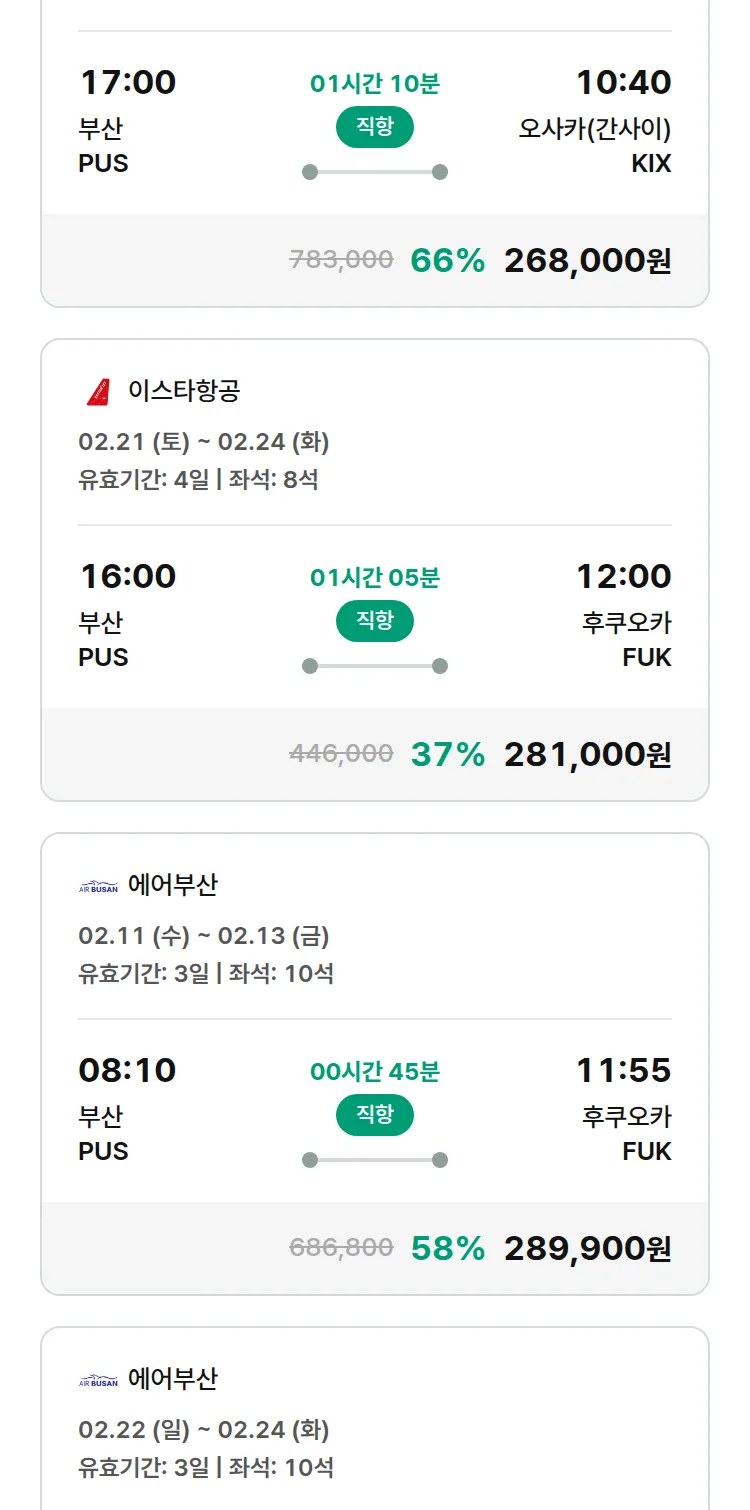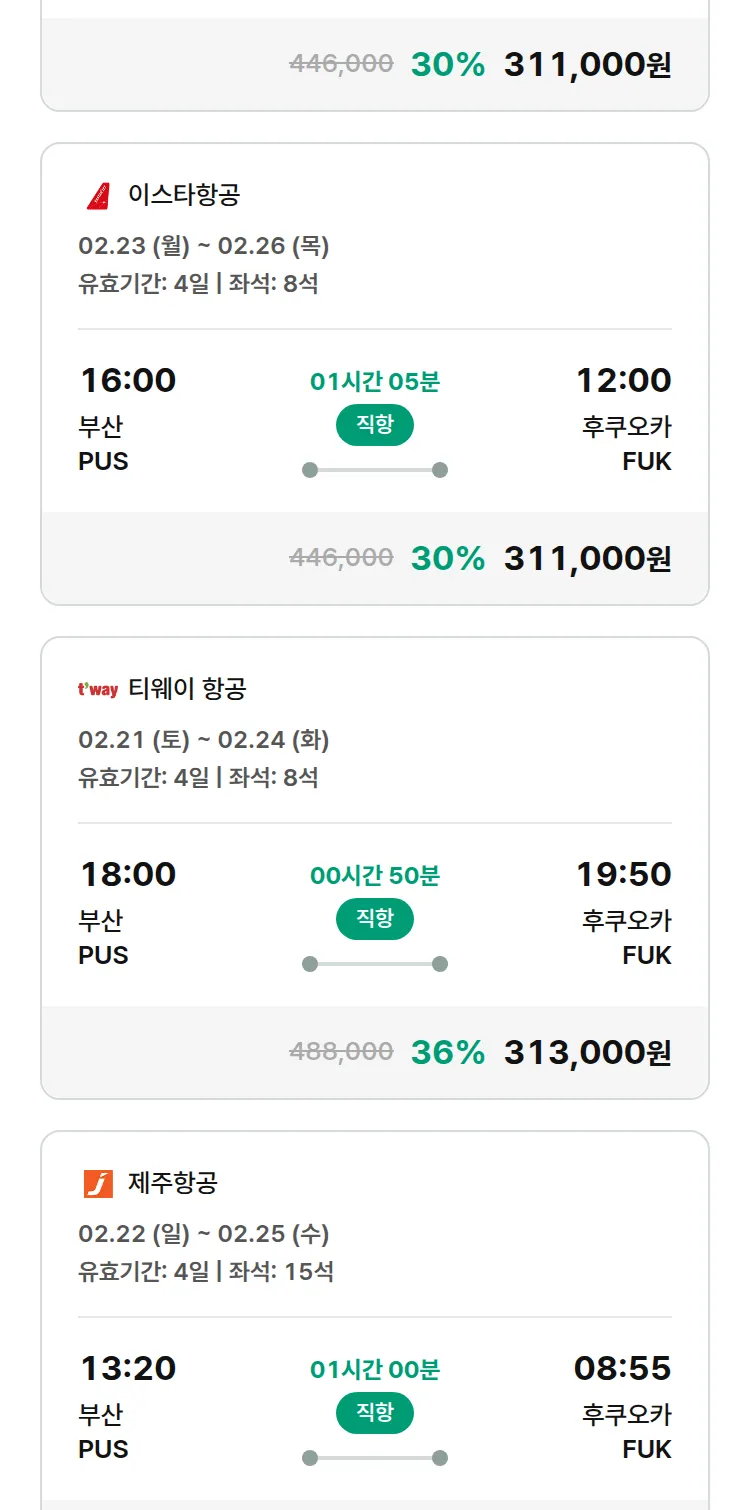 (1월 22일(목)) 모두투어 일본 특가 항공권