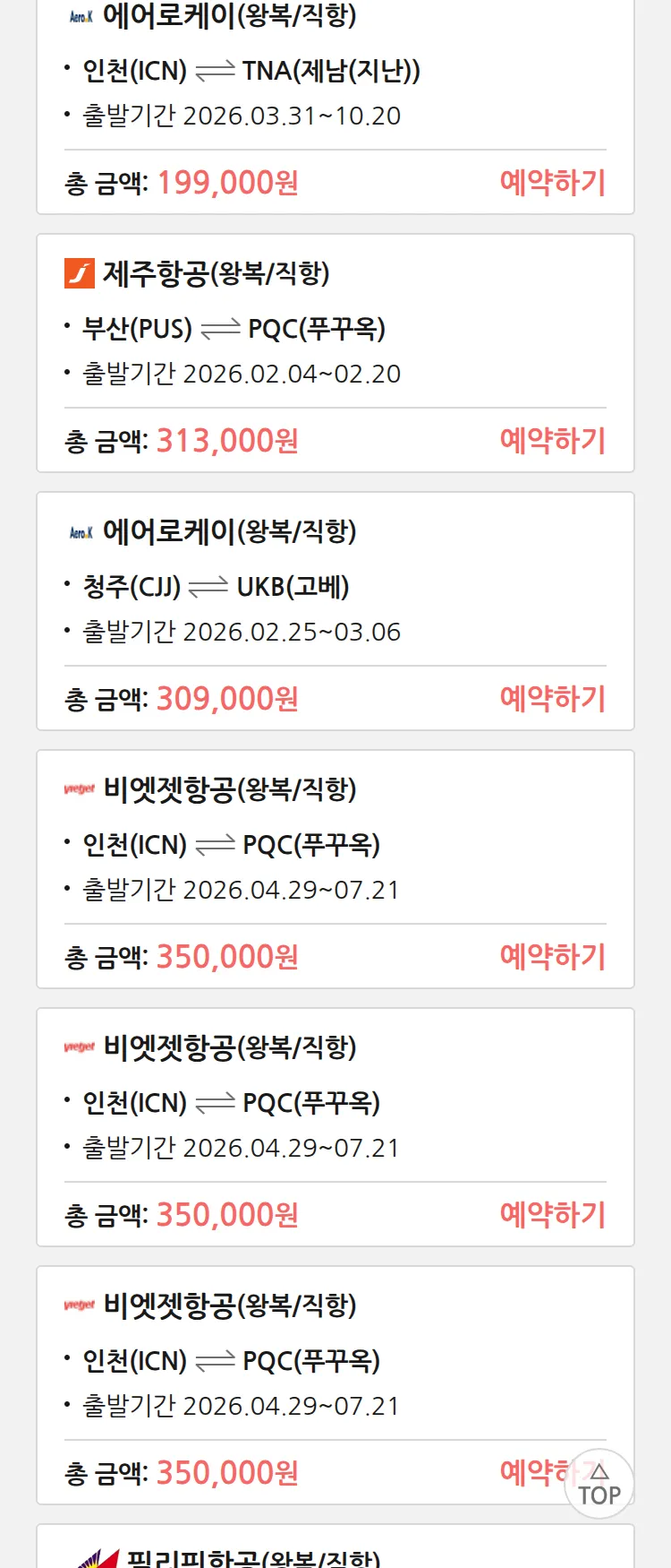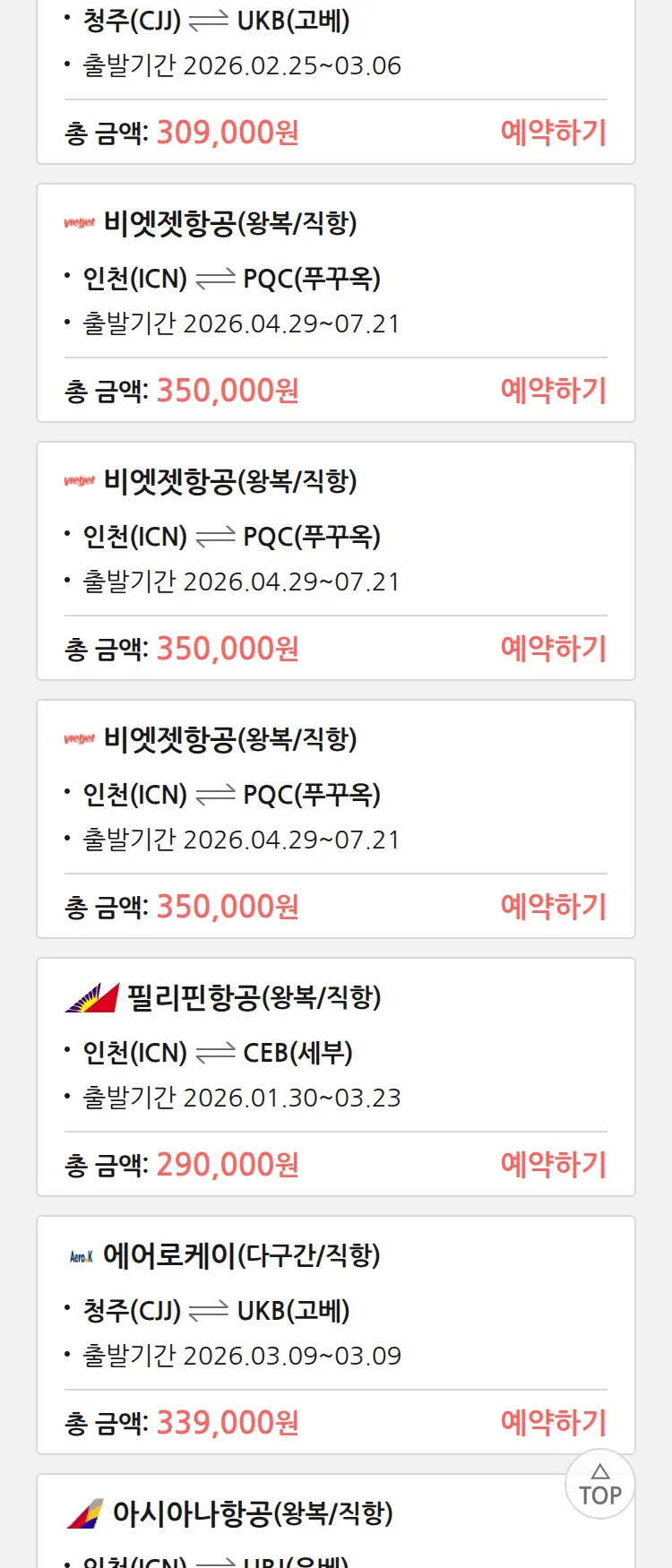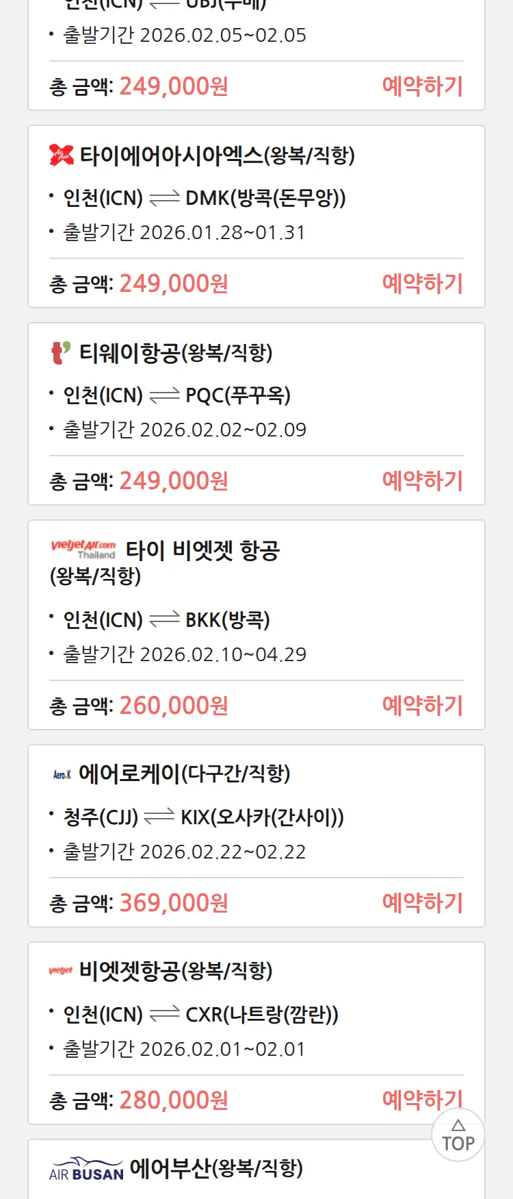 (1월 24일(토)) 모두투어 동남아 특가 항공권