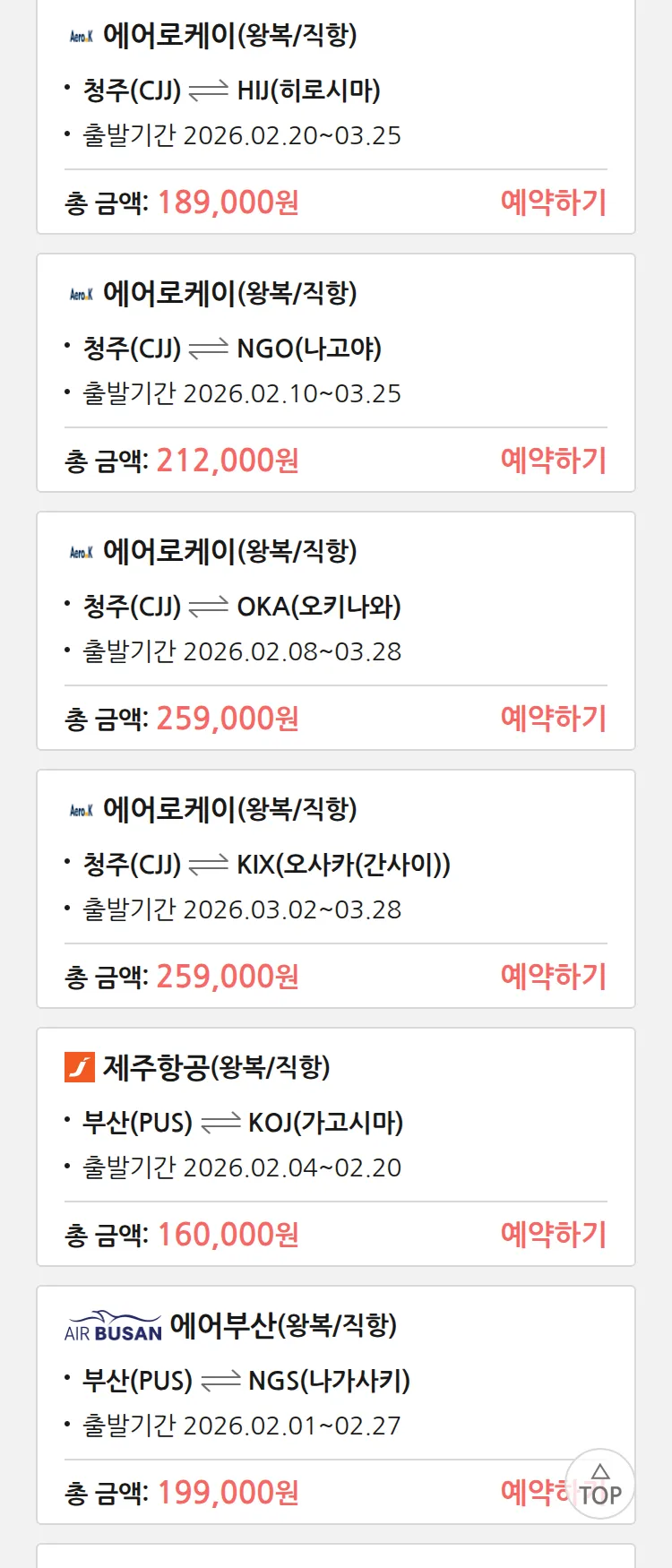 (1월 24일(토)) 모두투어 일본 특가 항공권