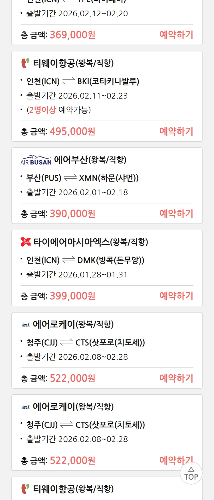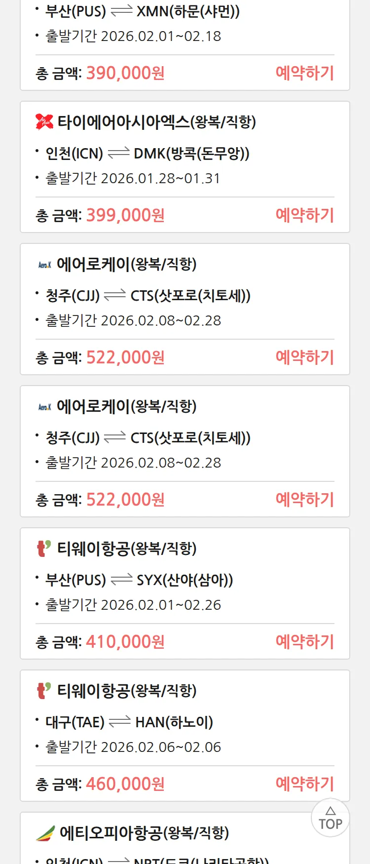 (1월 26일(월)) 땡처리 99.9% 확정 패키지