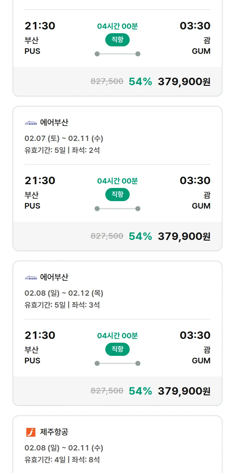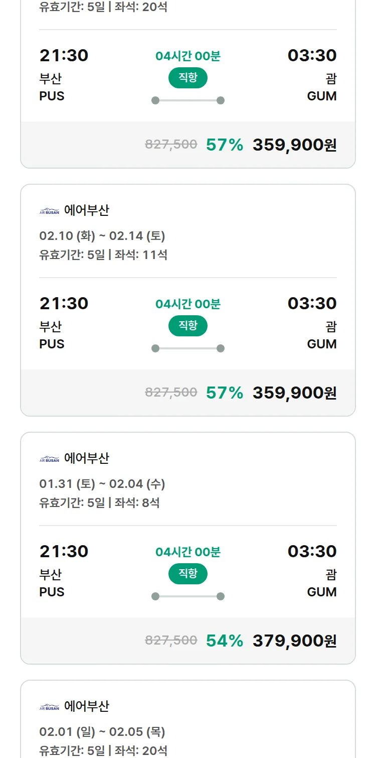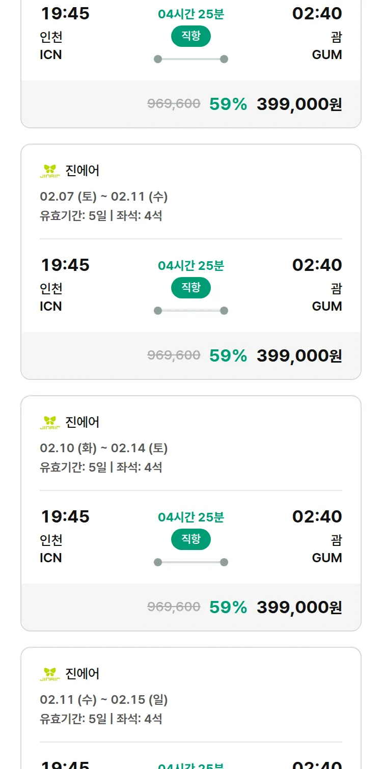 (1월 25일(일)) 땡처리 특가 항공권