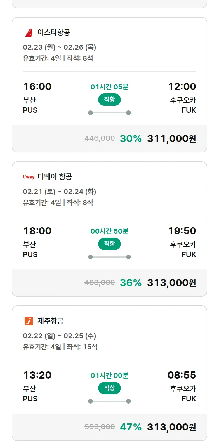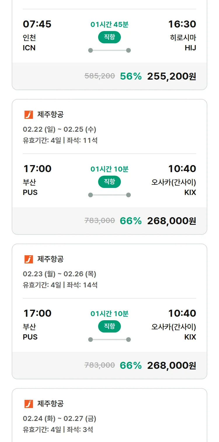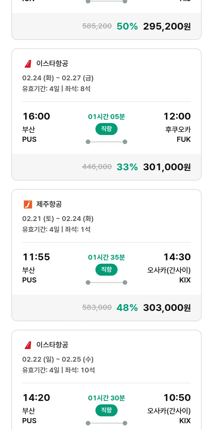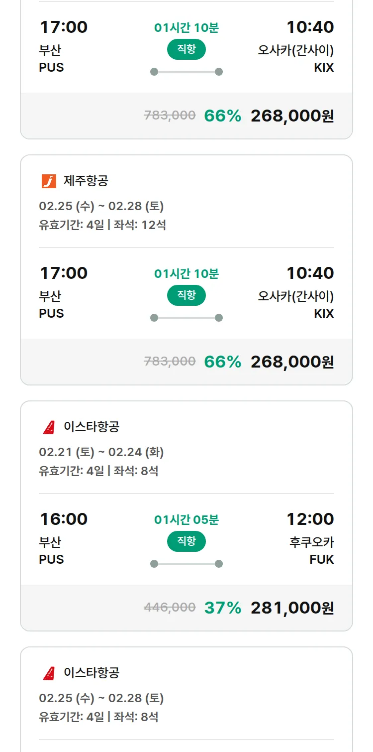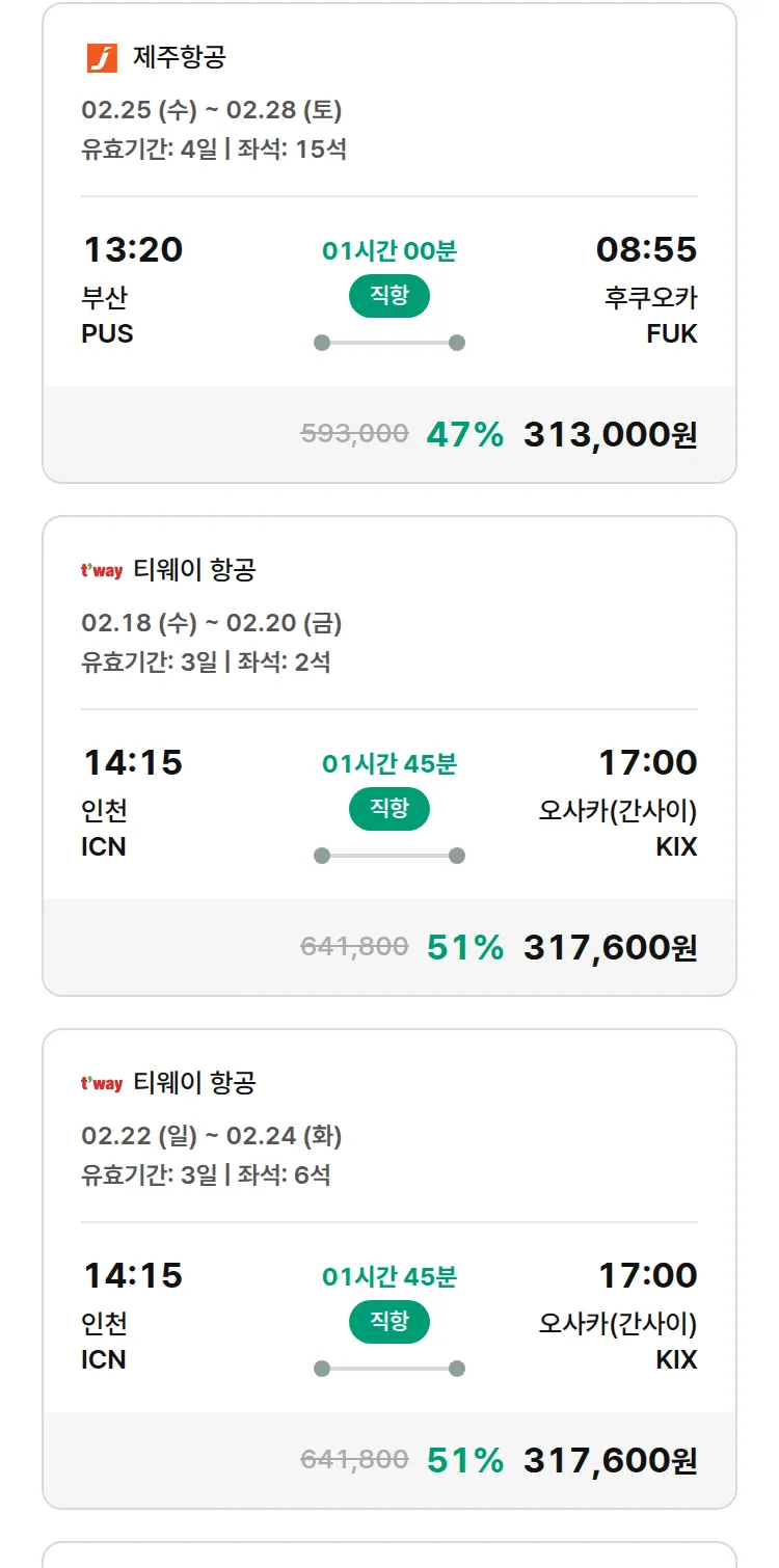 (1월 25일(일)) 모두투어 일본 특가 항공권