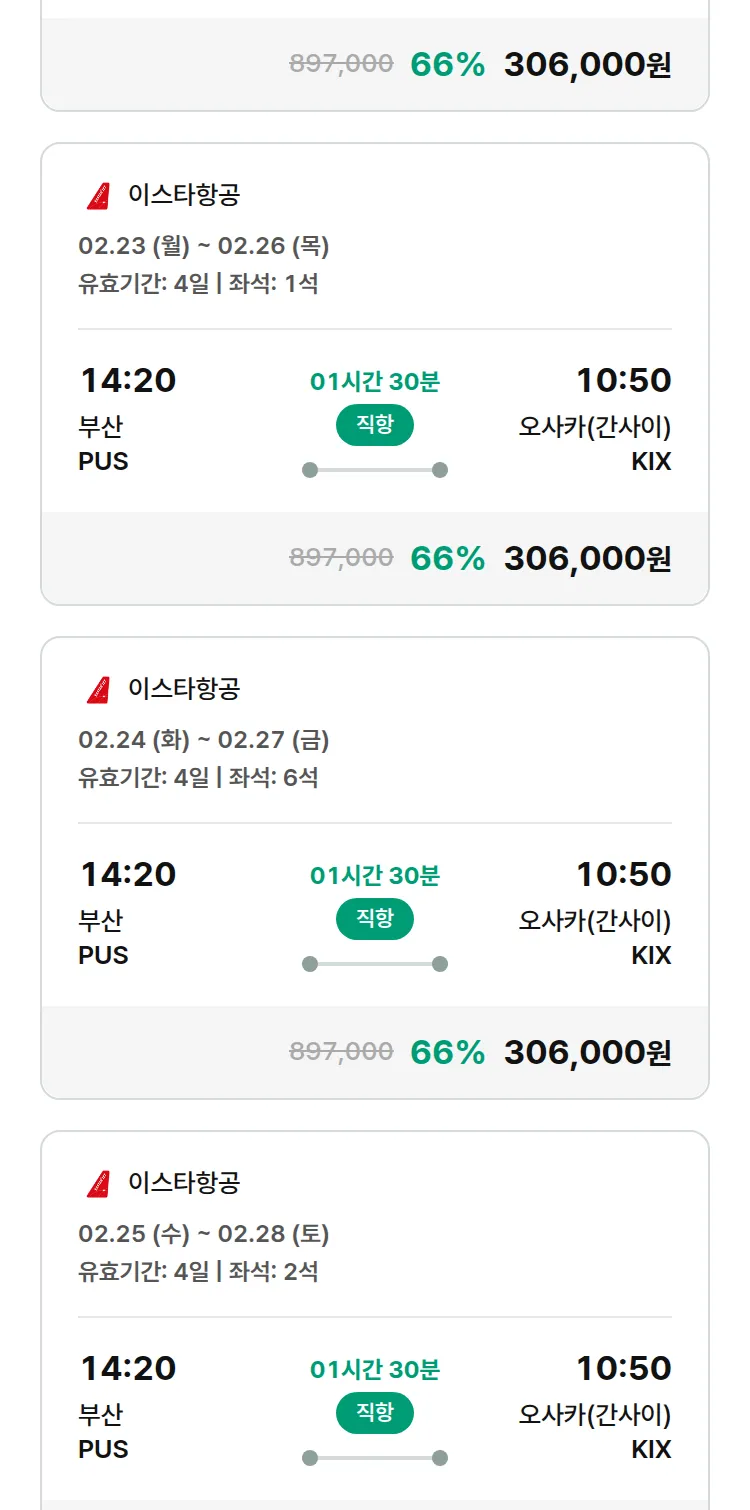(1월 26일(월)) 땡처리 99.9% 확정 패키지