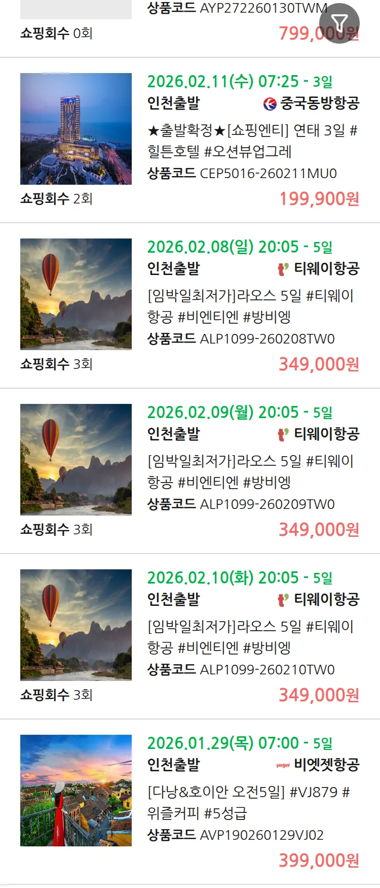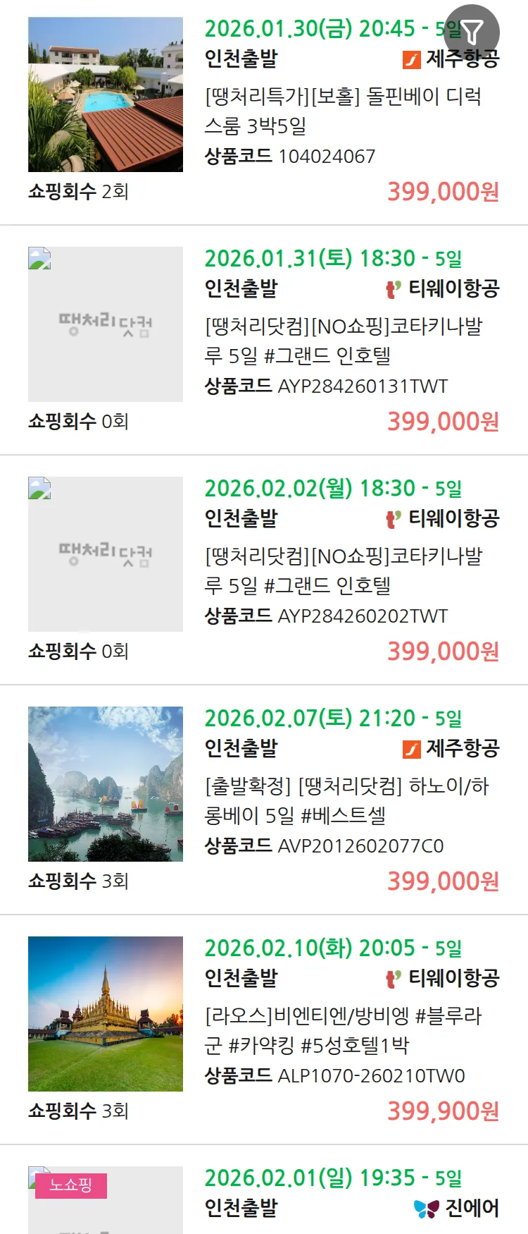 (1월 26일(월)) 땡처리 99.9% 확정 패키지