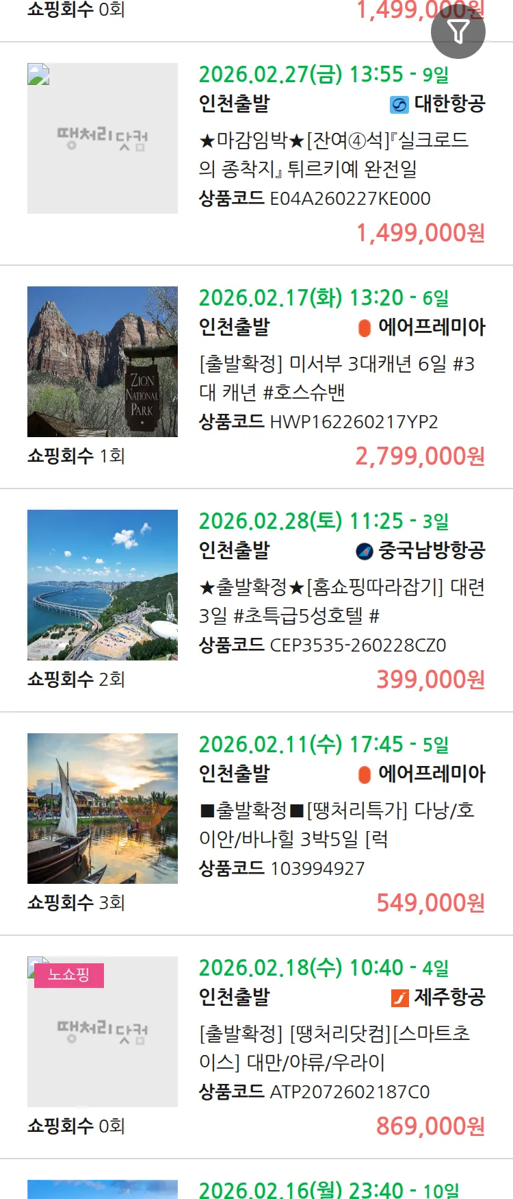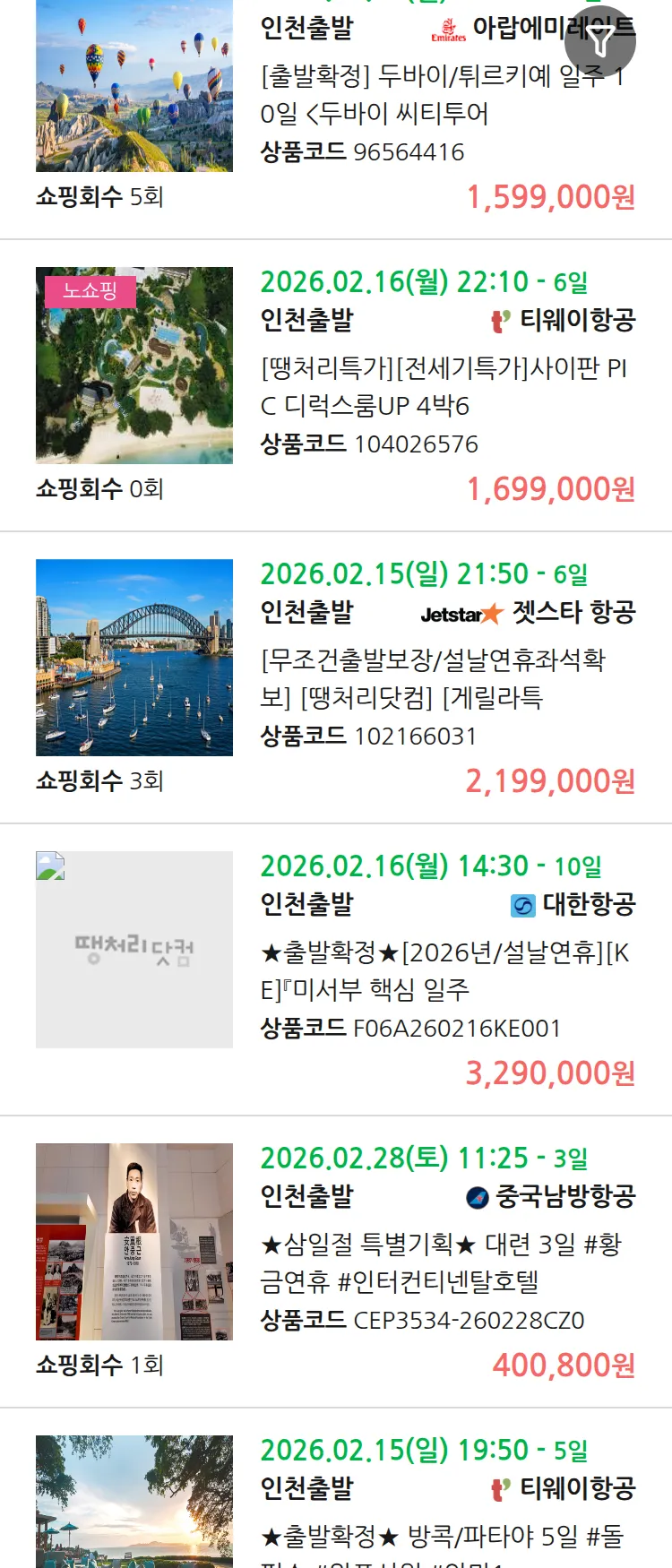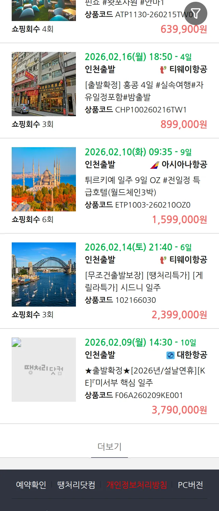 (1월 26일(월)) 땡처리 99.9% 확정 패키지