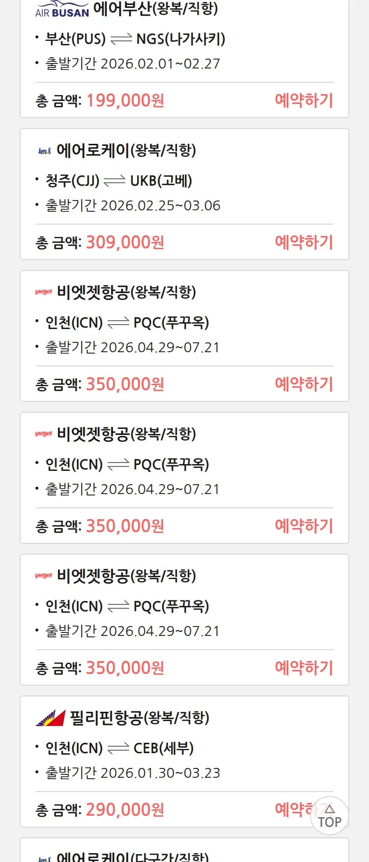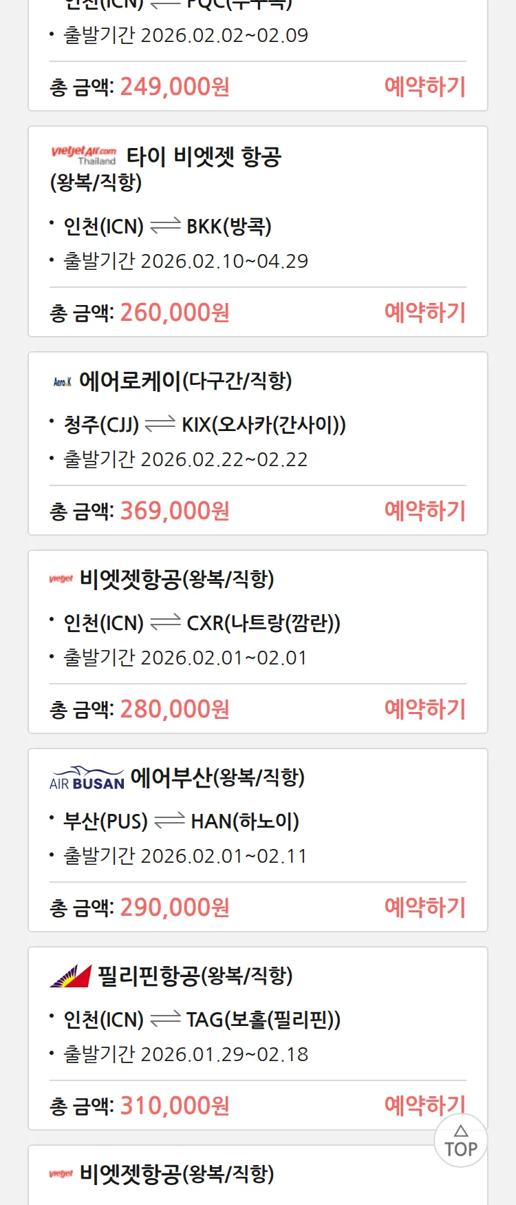(1월 26일(월)) 모두투어 동남아 특가 항공권