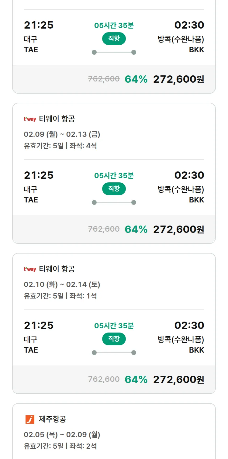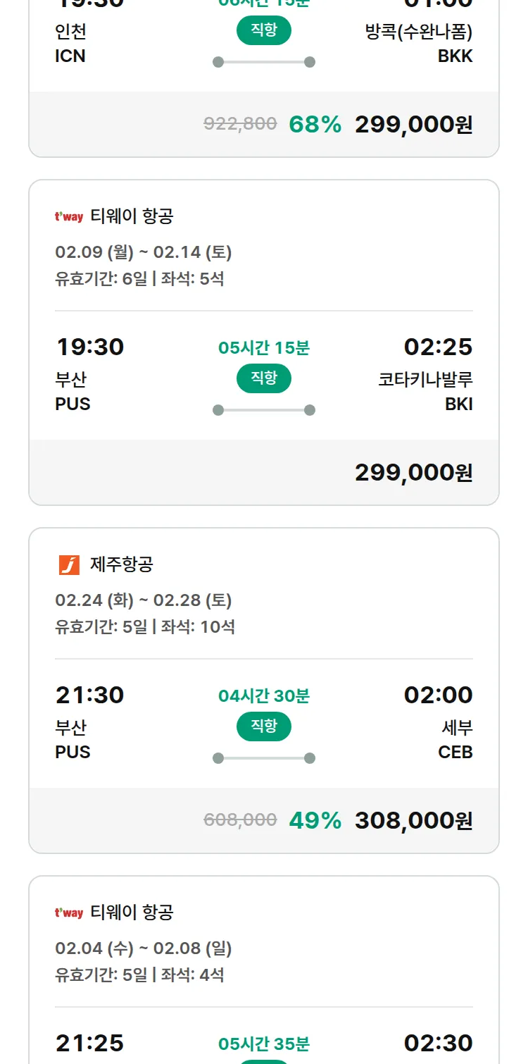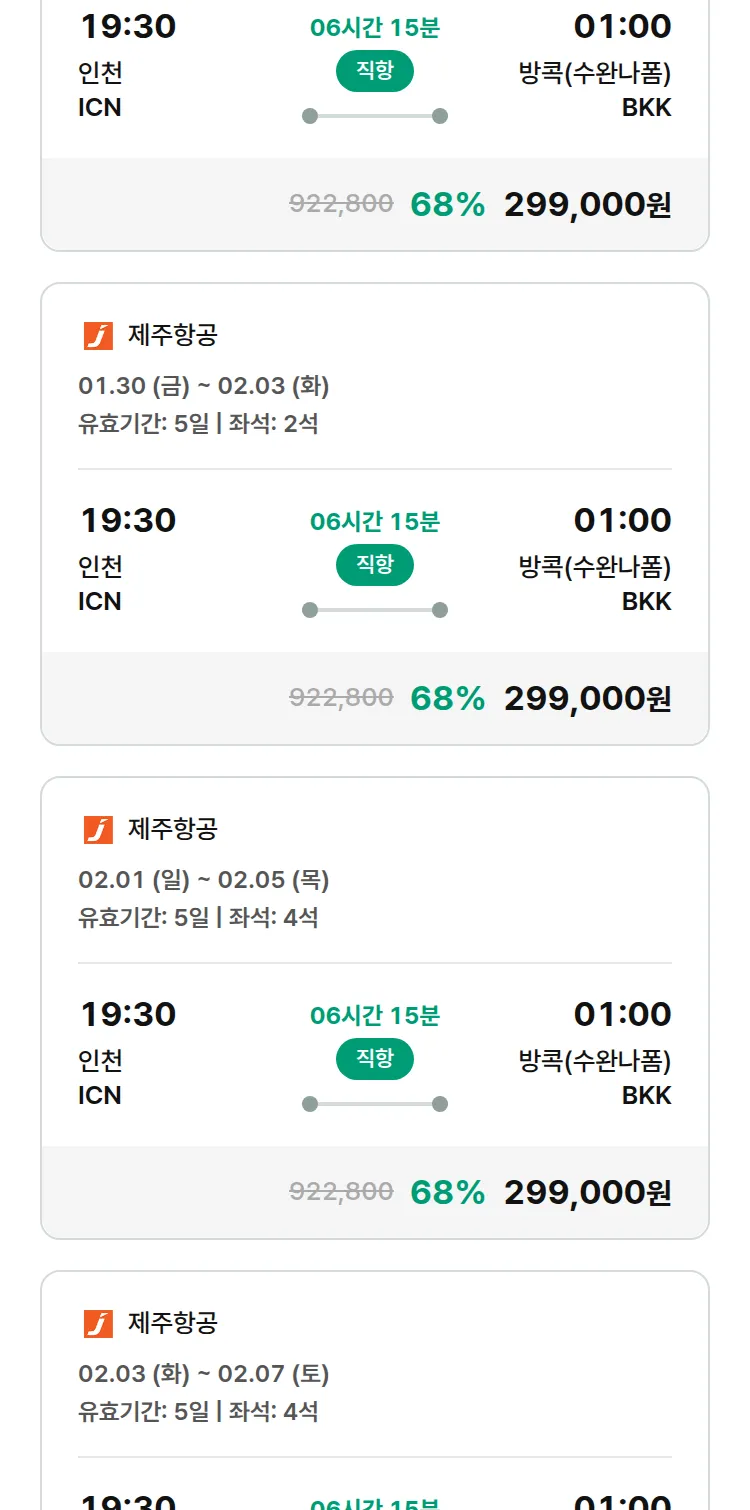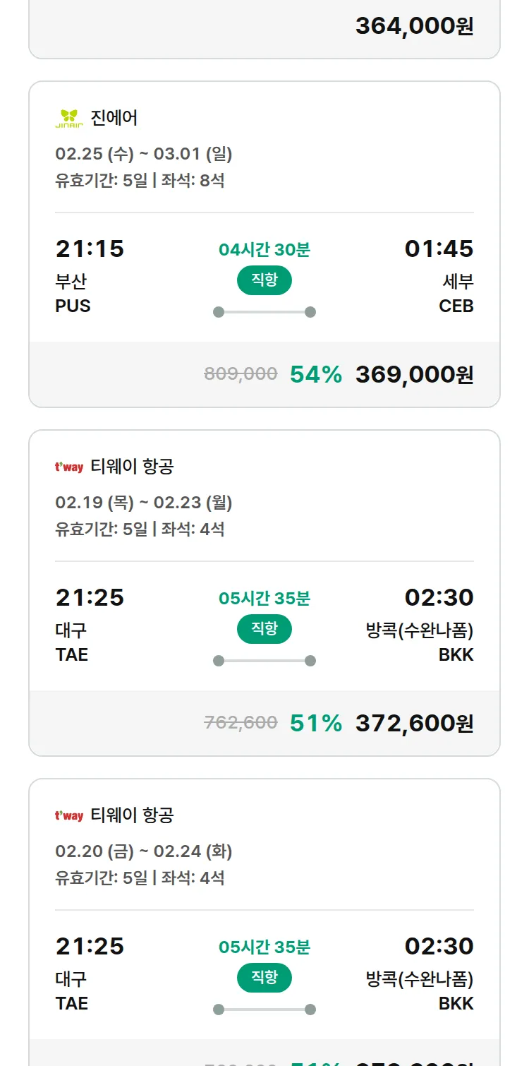 (1월 25일(일)) 땡처리 특가 항공권