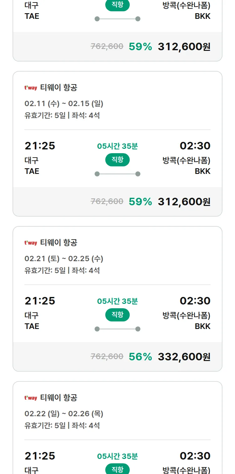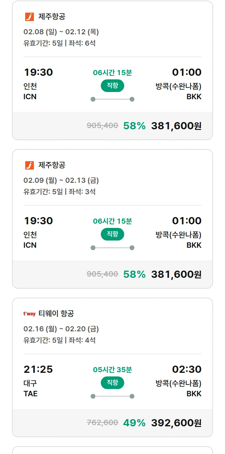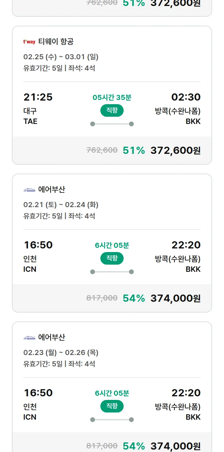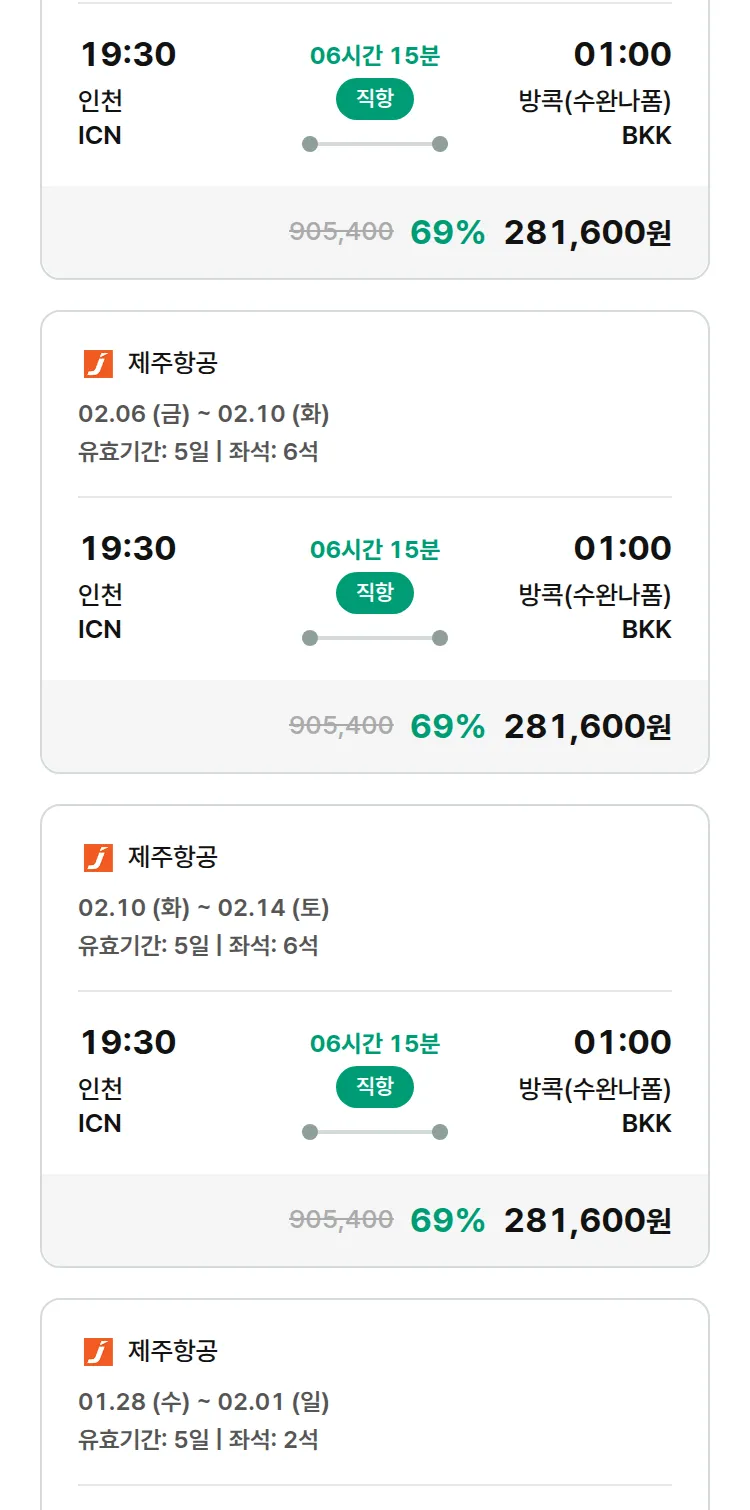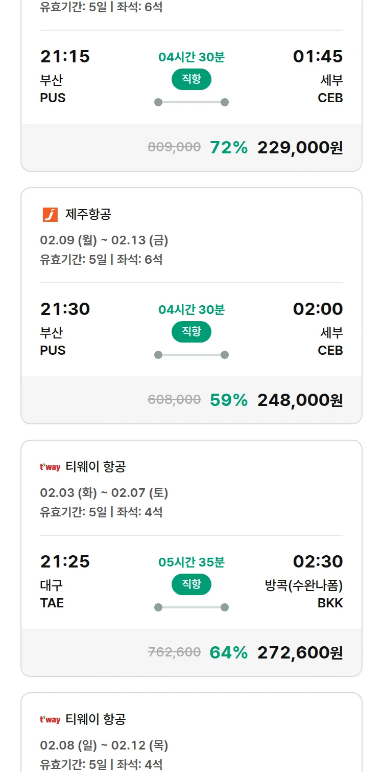 (1월 25일(일)) 땡처리 특가 항공권