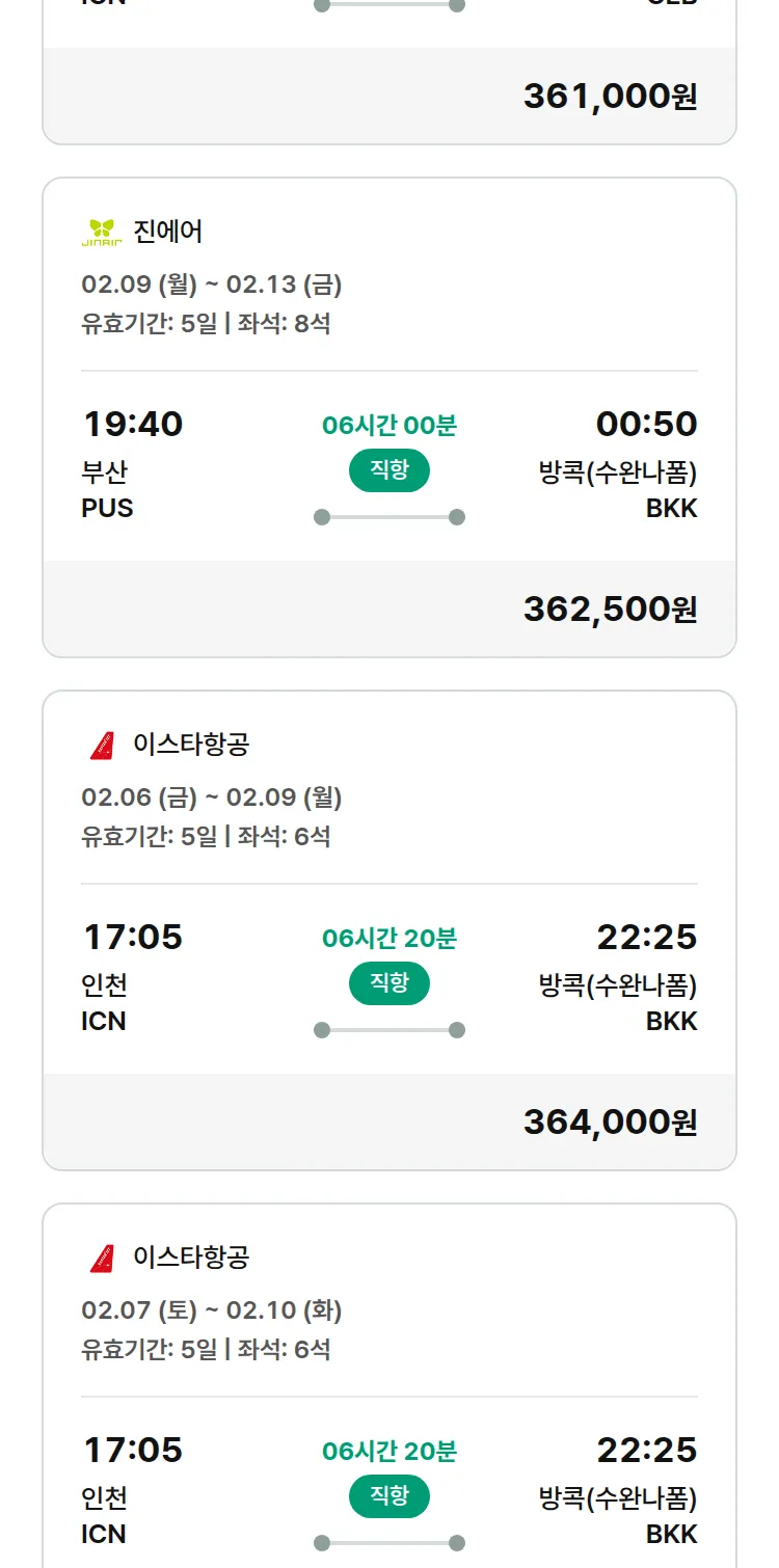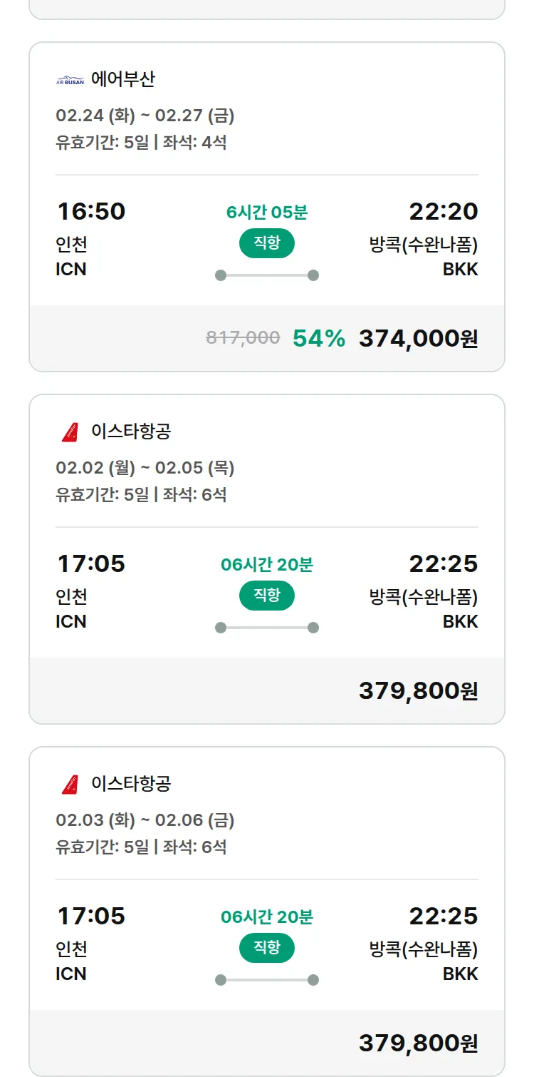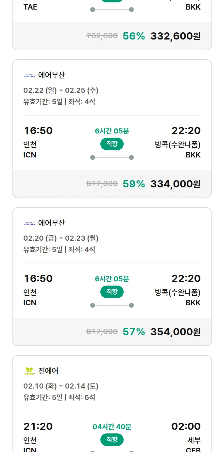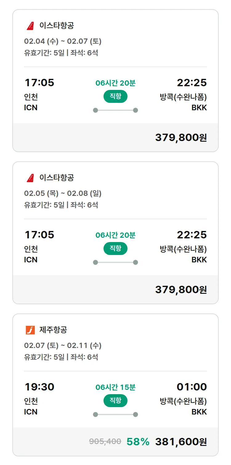 (1월 25일(일)) 땡처리 특가 항공권