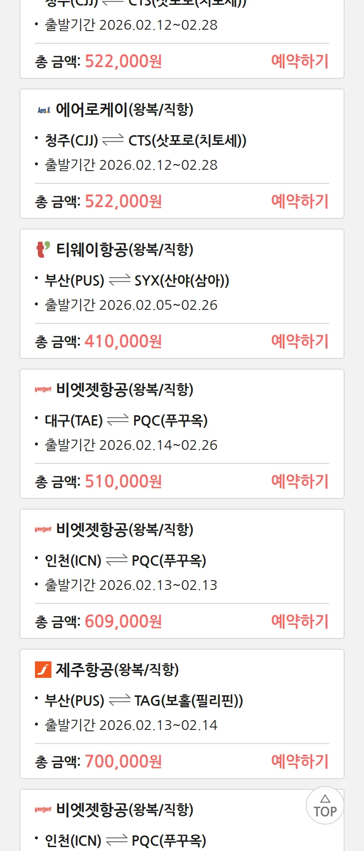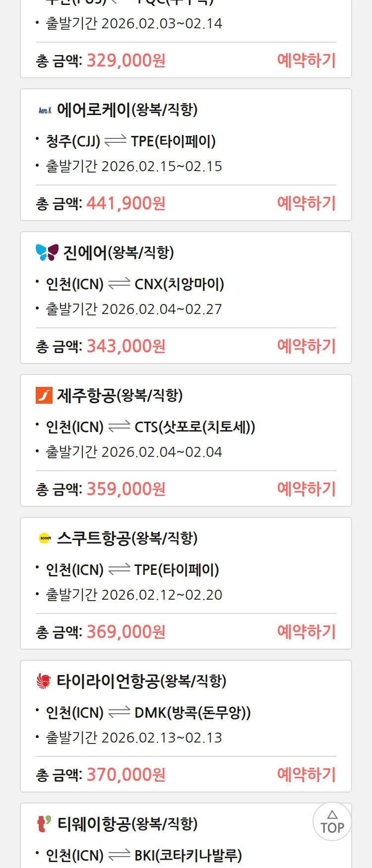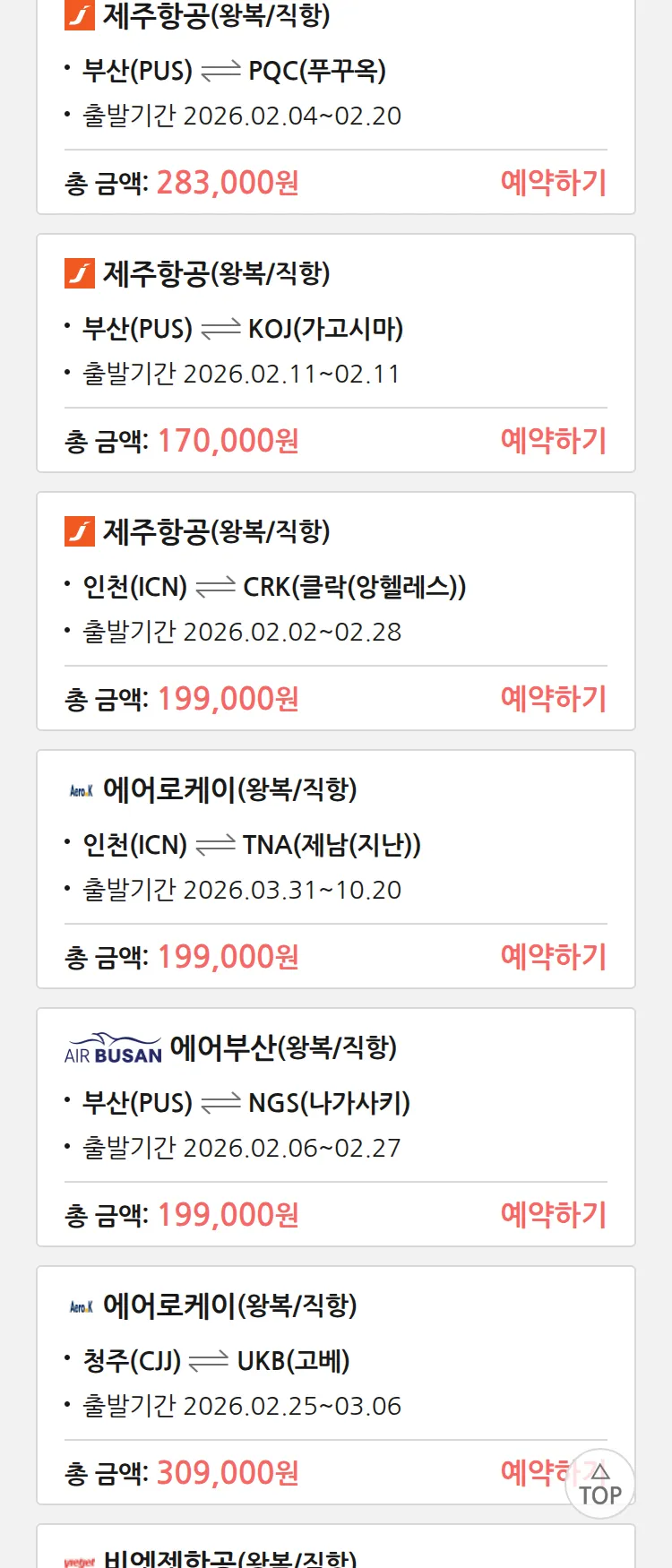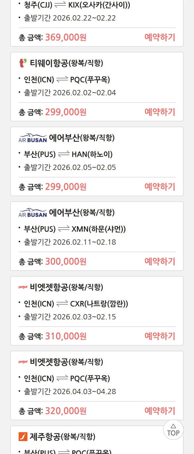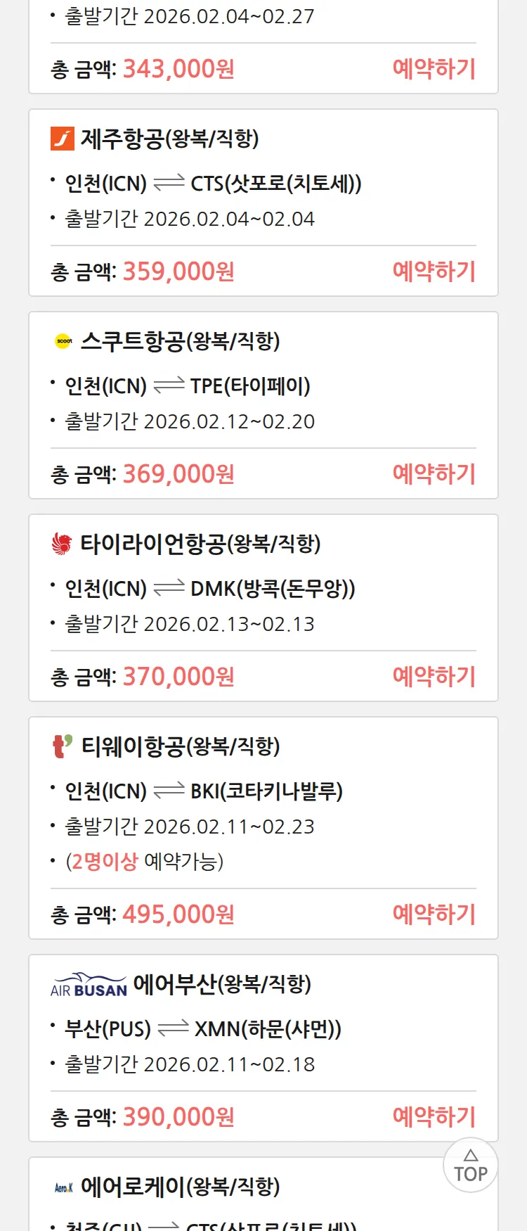 (1월 27일(화)) 땡처리 특가 항공권