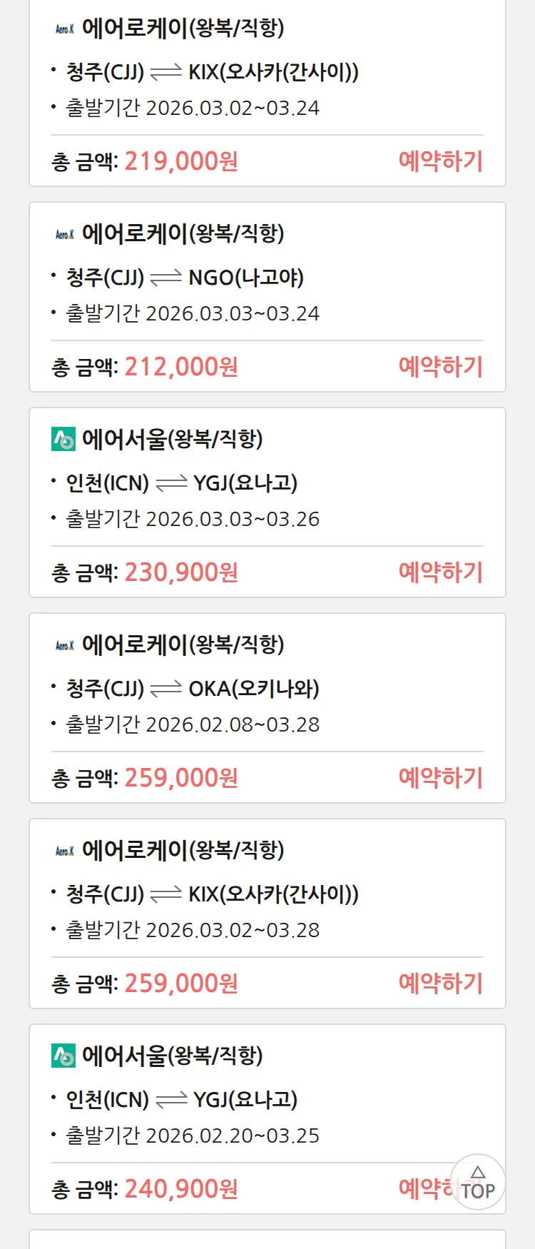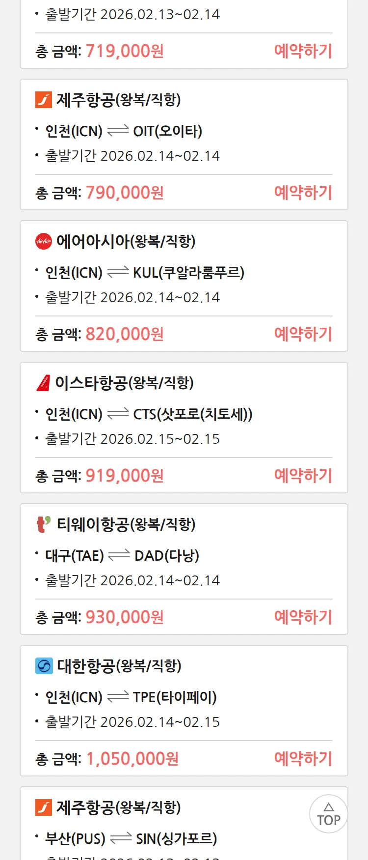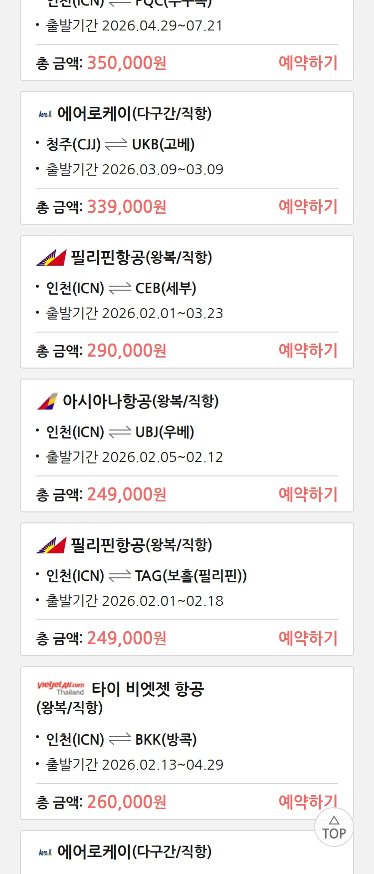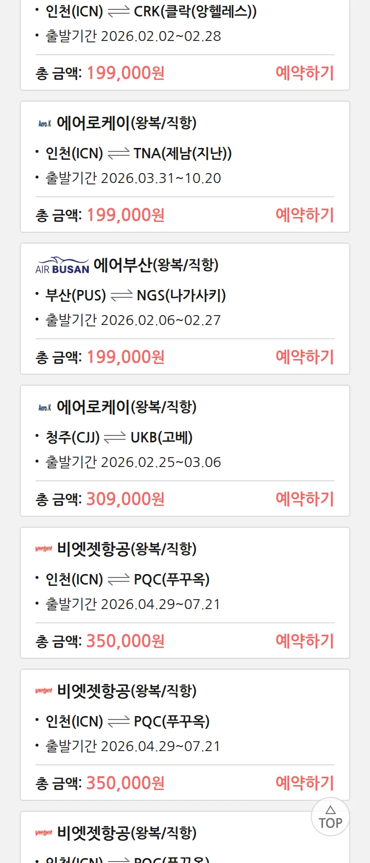 (1월 28일(수)) 땡처리 특가 항공권