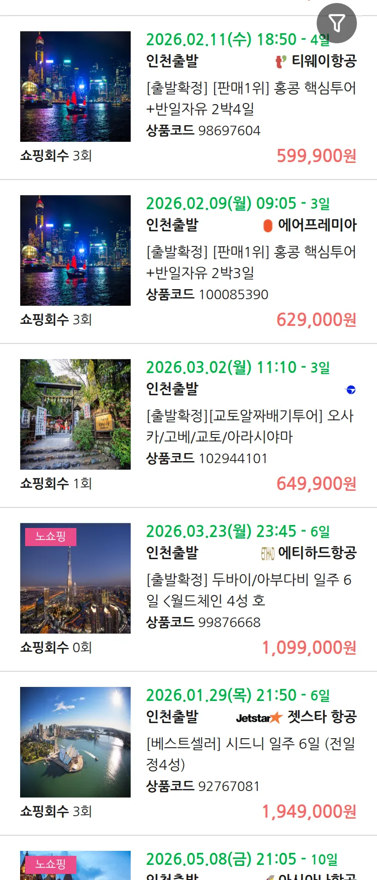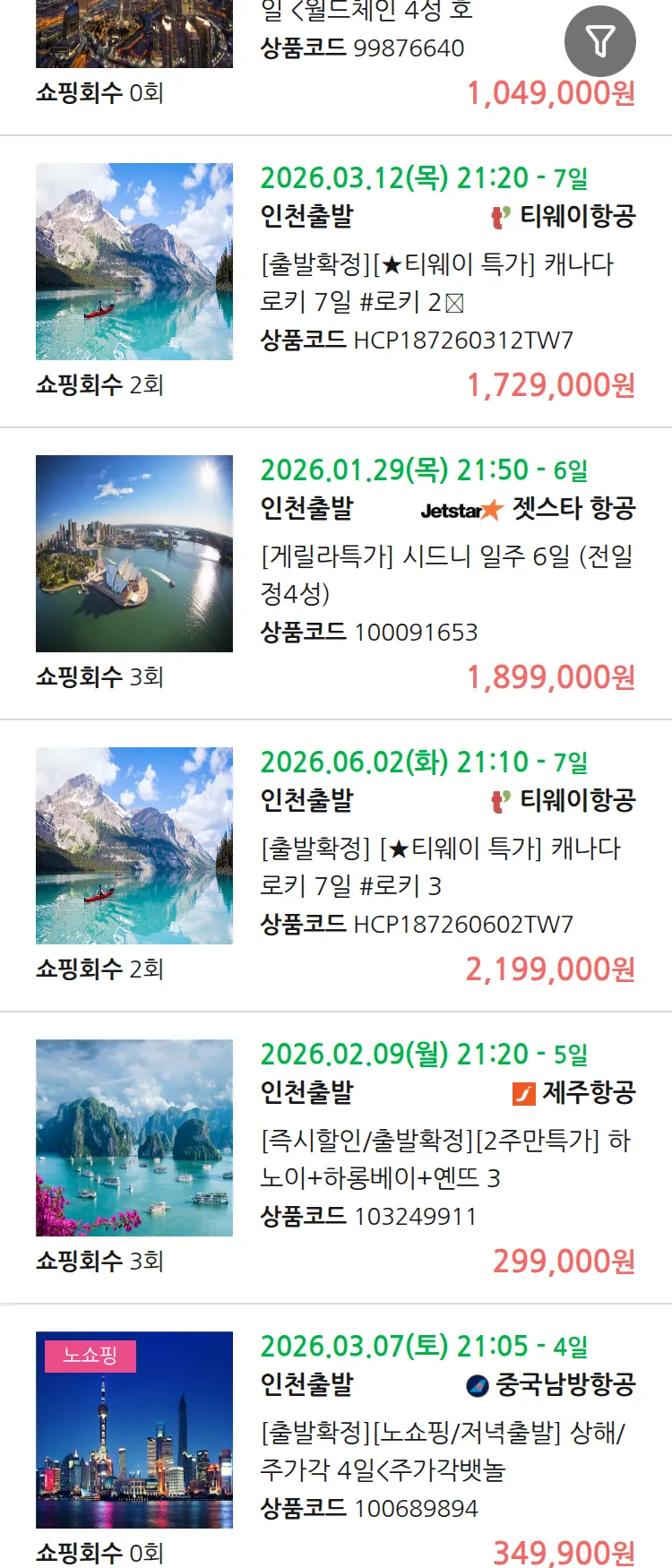 (1월 27일(화)) 땡처리 99.9% 확정 패키지