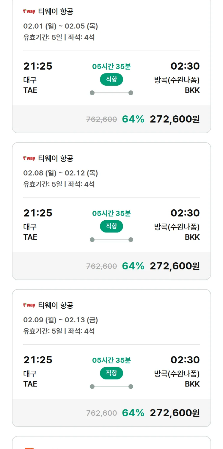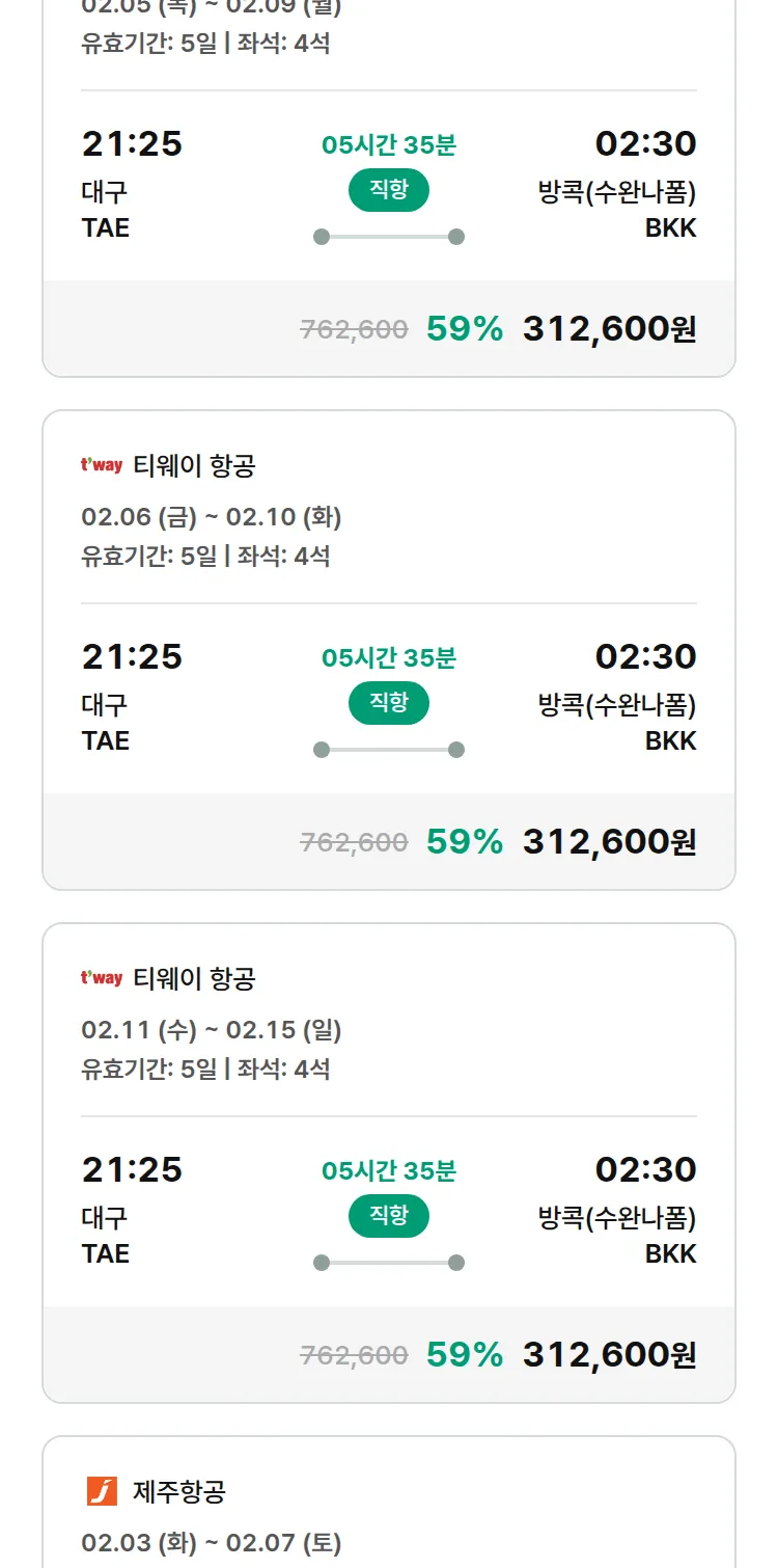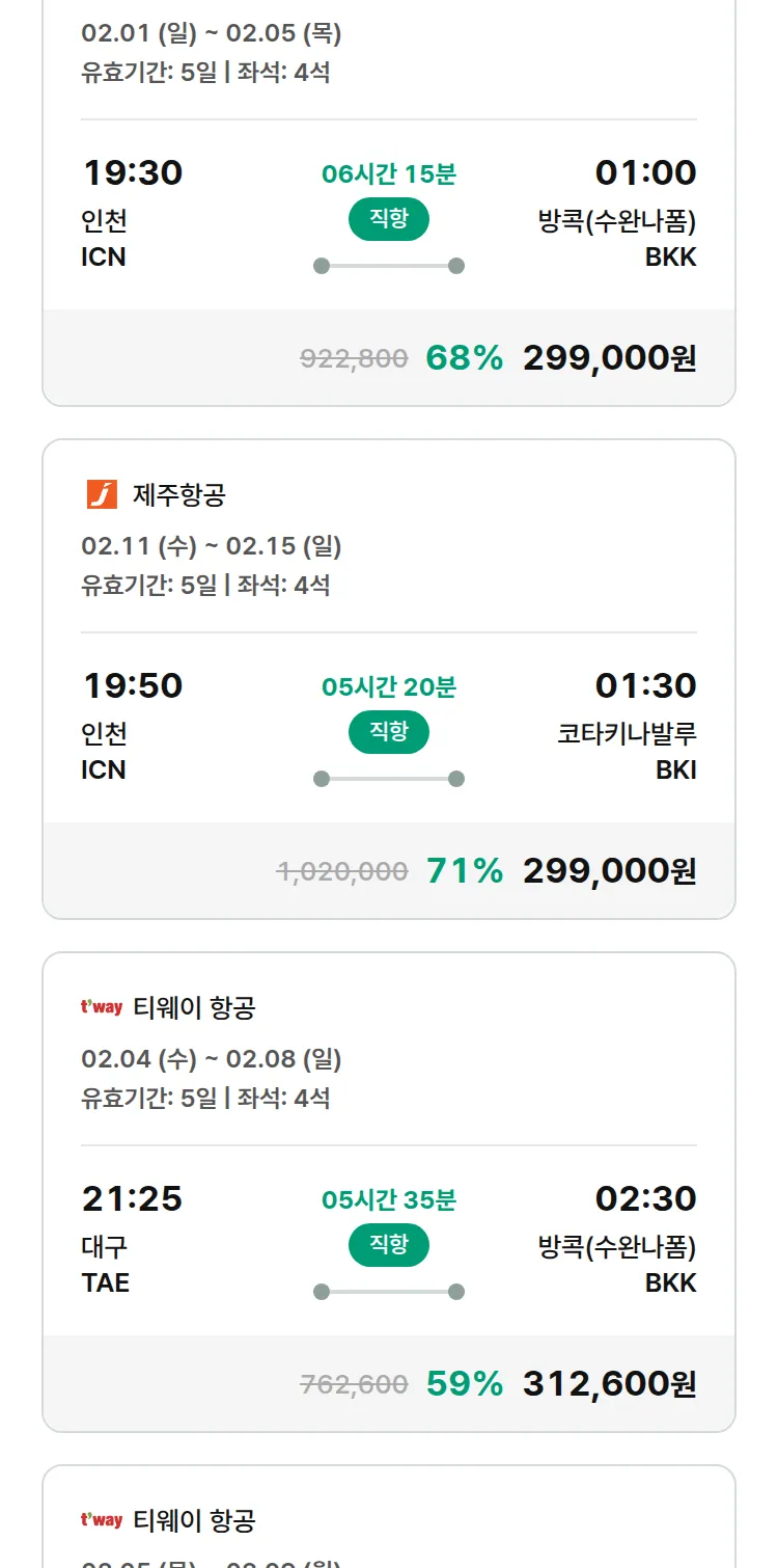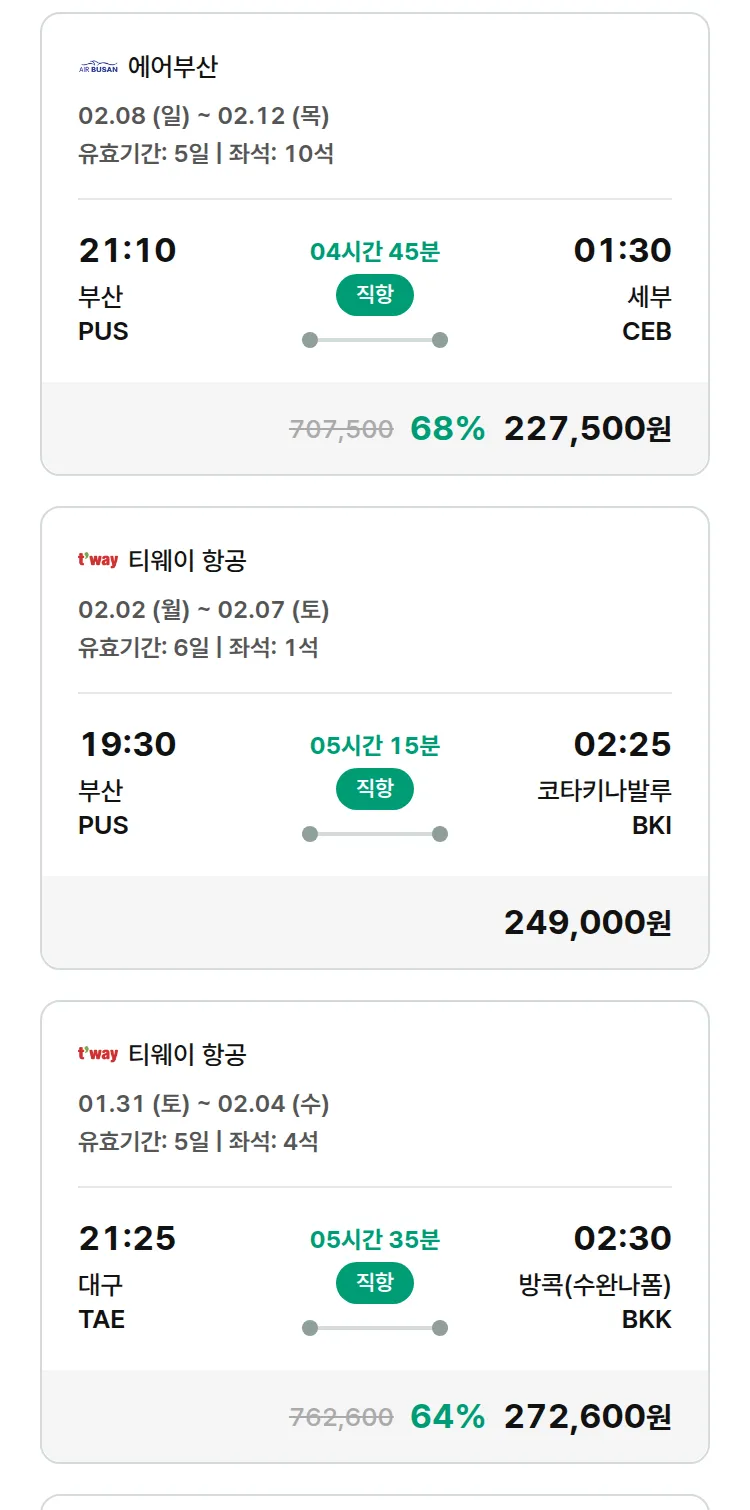 (1월 27일(화)) 땡처리 특가 항공권