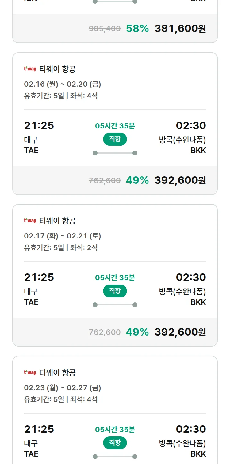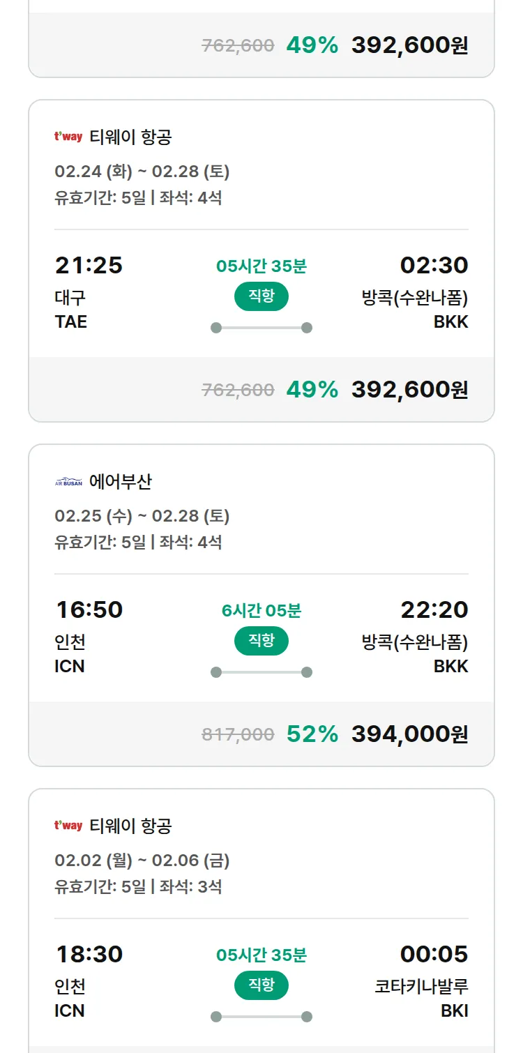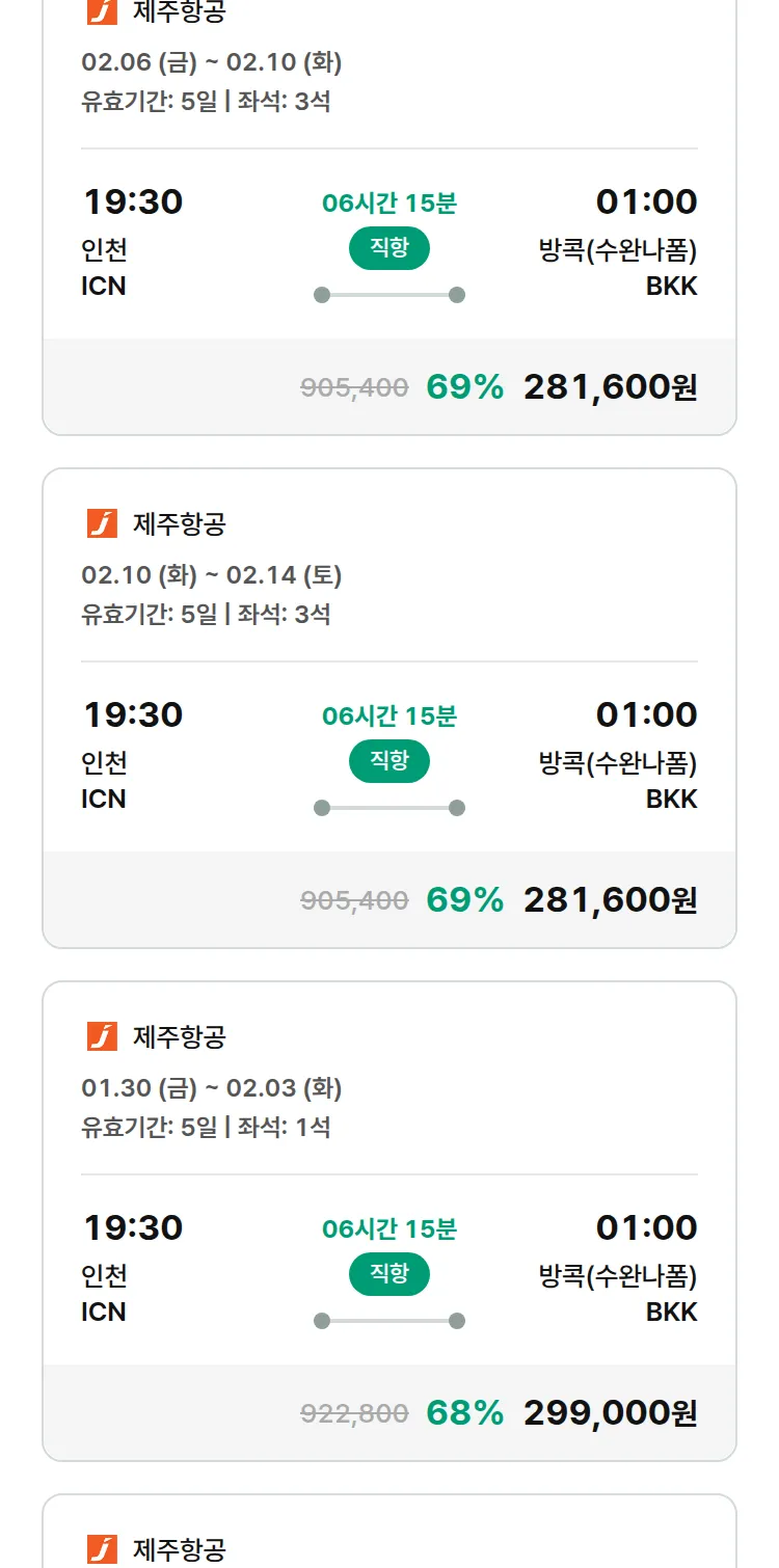 (1월 28일(수)) 땡처리 특가 항공권