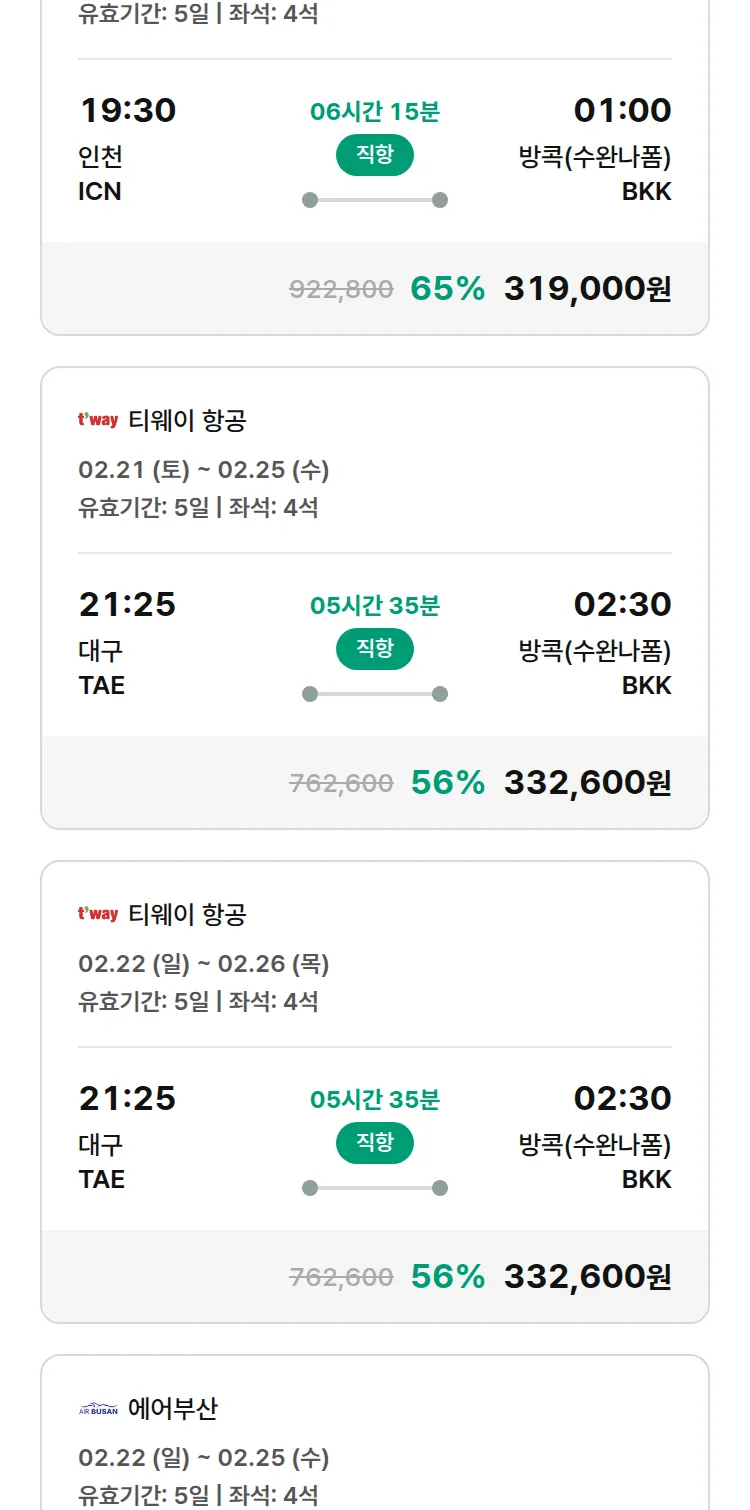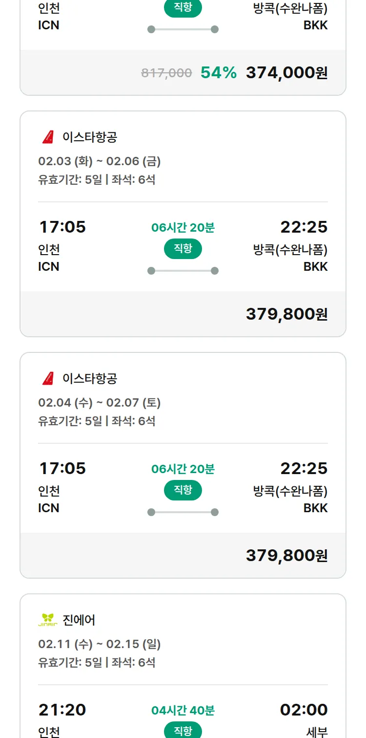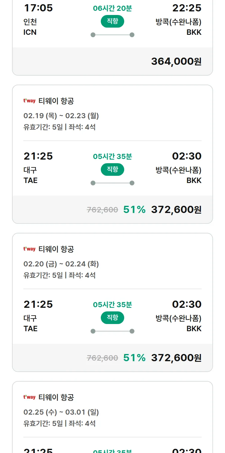 (1월 28일(수)) 땡처리 특가 항공권