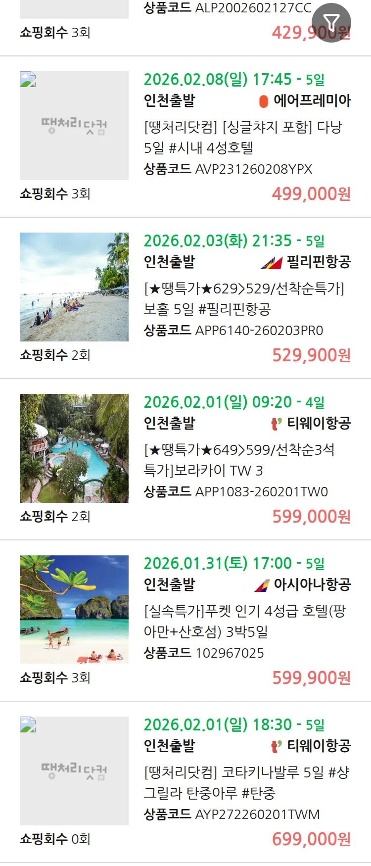 (1월 27일(화)) 땡처리 99.9% 확정 패키지
