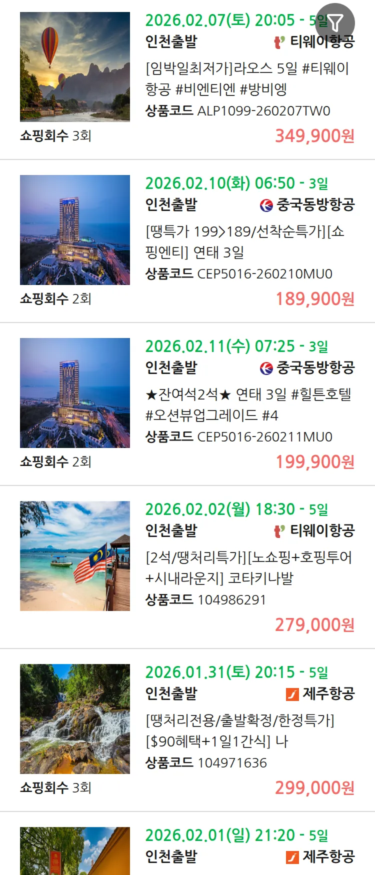 (1월 28일(수)) 땡처리 99.9% 확정 패키지