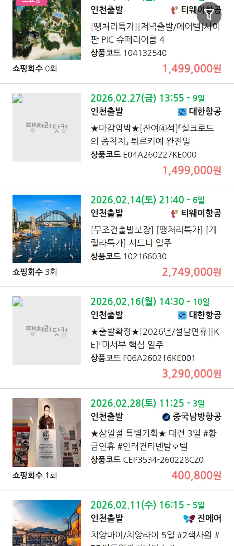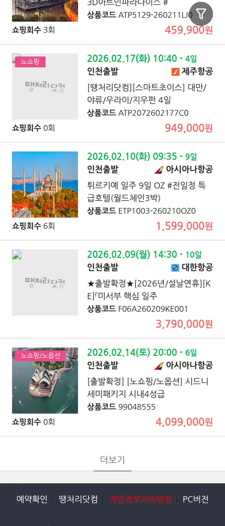 (1월 29일(목)) 땡처리 연휴 패키지 패키지