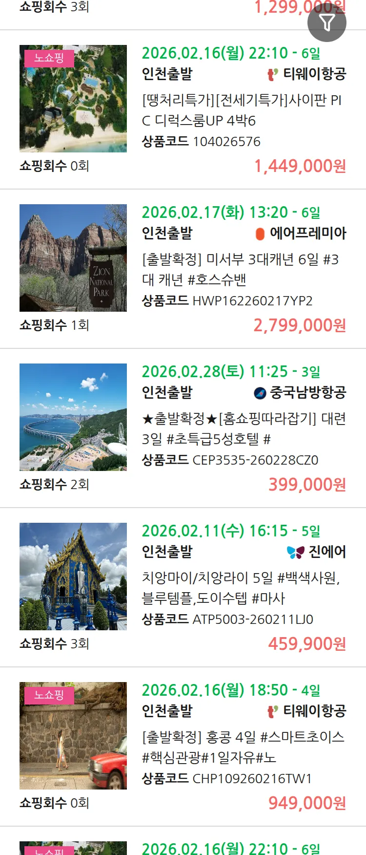 (1월 29일(목)) 땡처리 99.9% 확정 패키지
