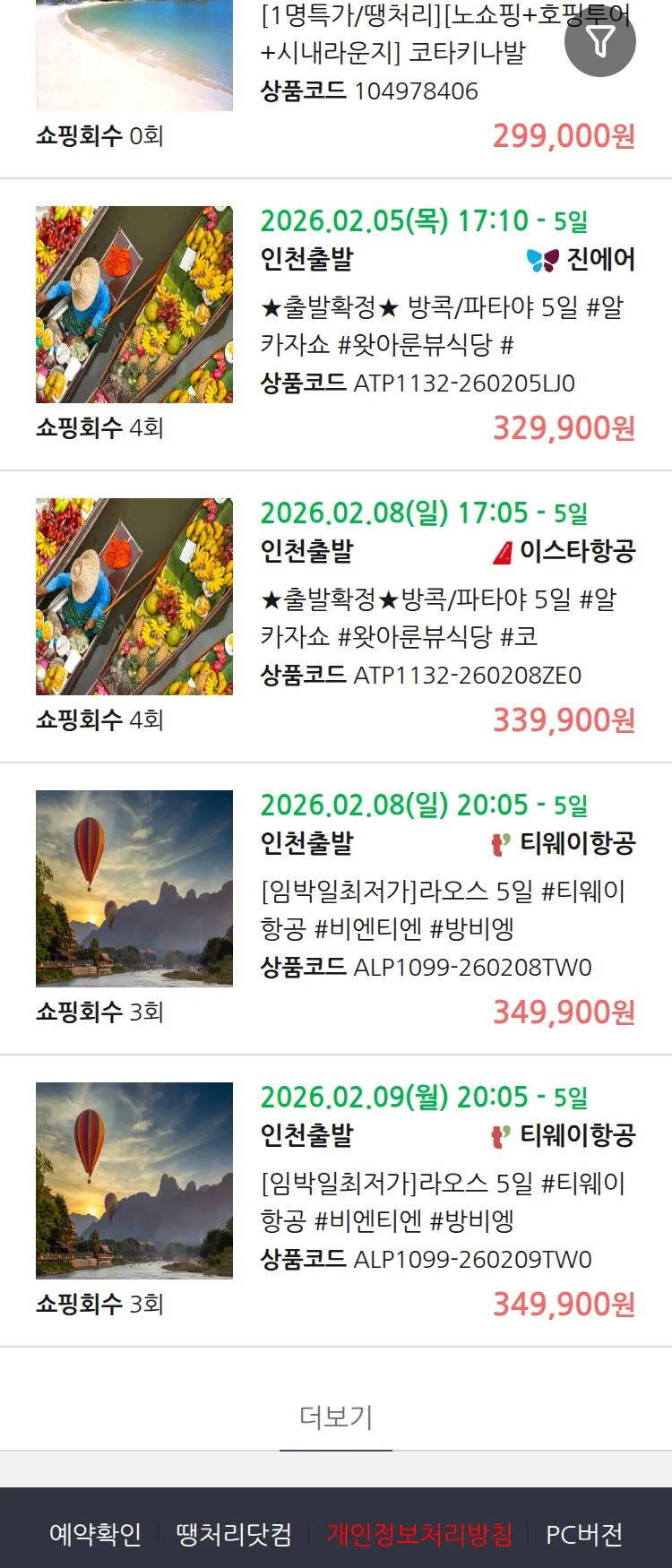 (1월 29일(목)) 땡처리 연휴 패키지 패키지