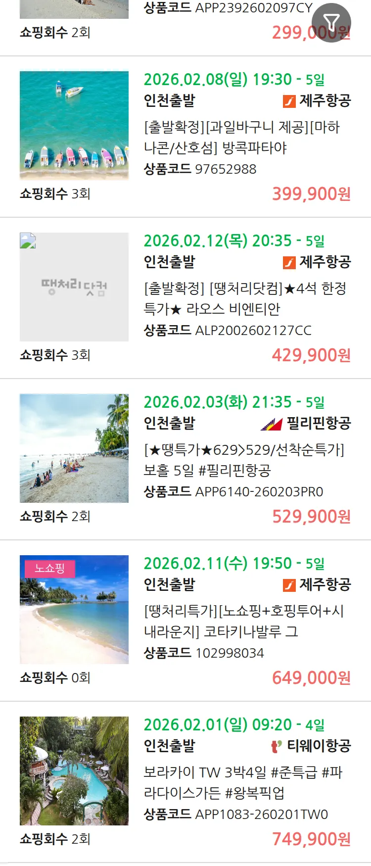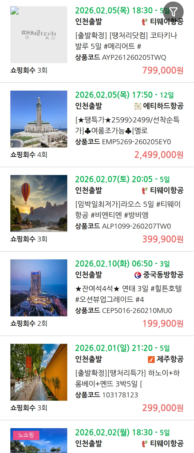 (1월 29일(목)) 땡처리 99.9% 확정 패키지