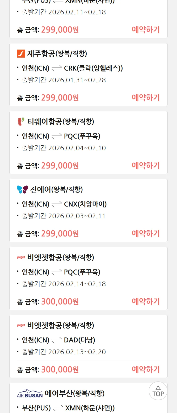 (1월 29일(목)) 땡처리 99.9% 확정 패키지