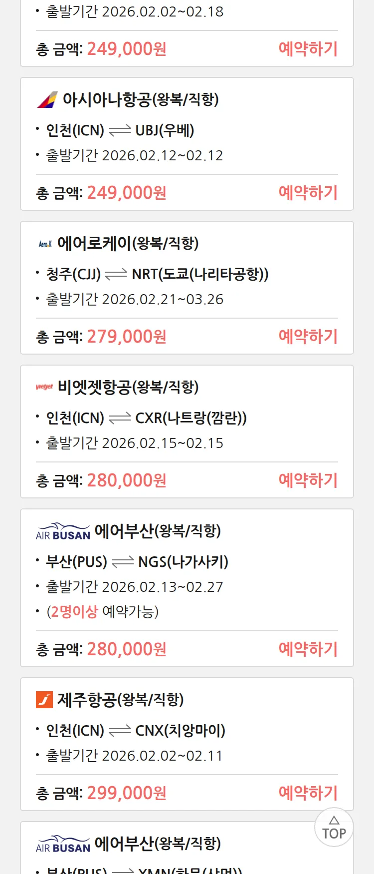 (1월 29일(목)) 모두투어 일본 특가 항공권