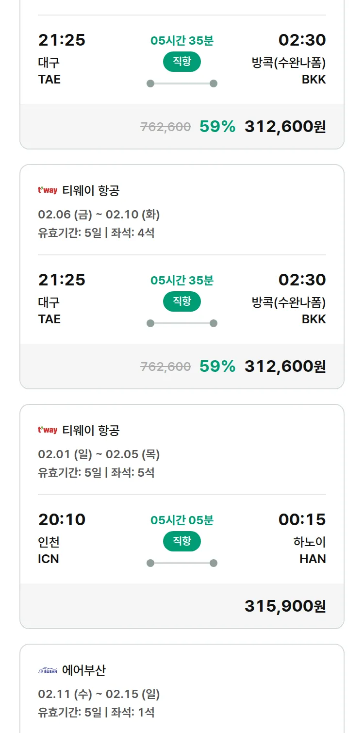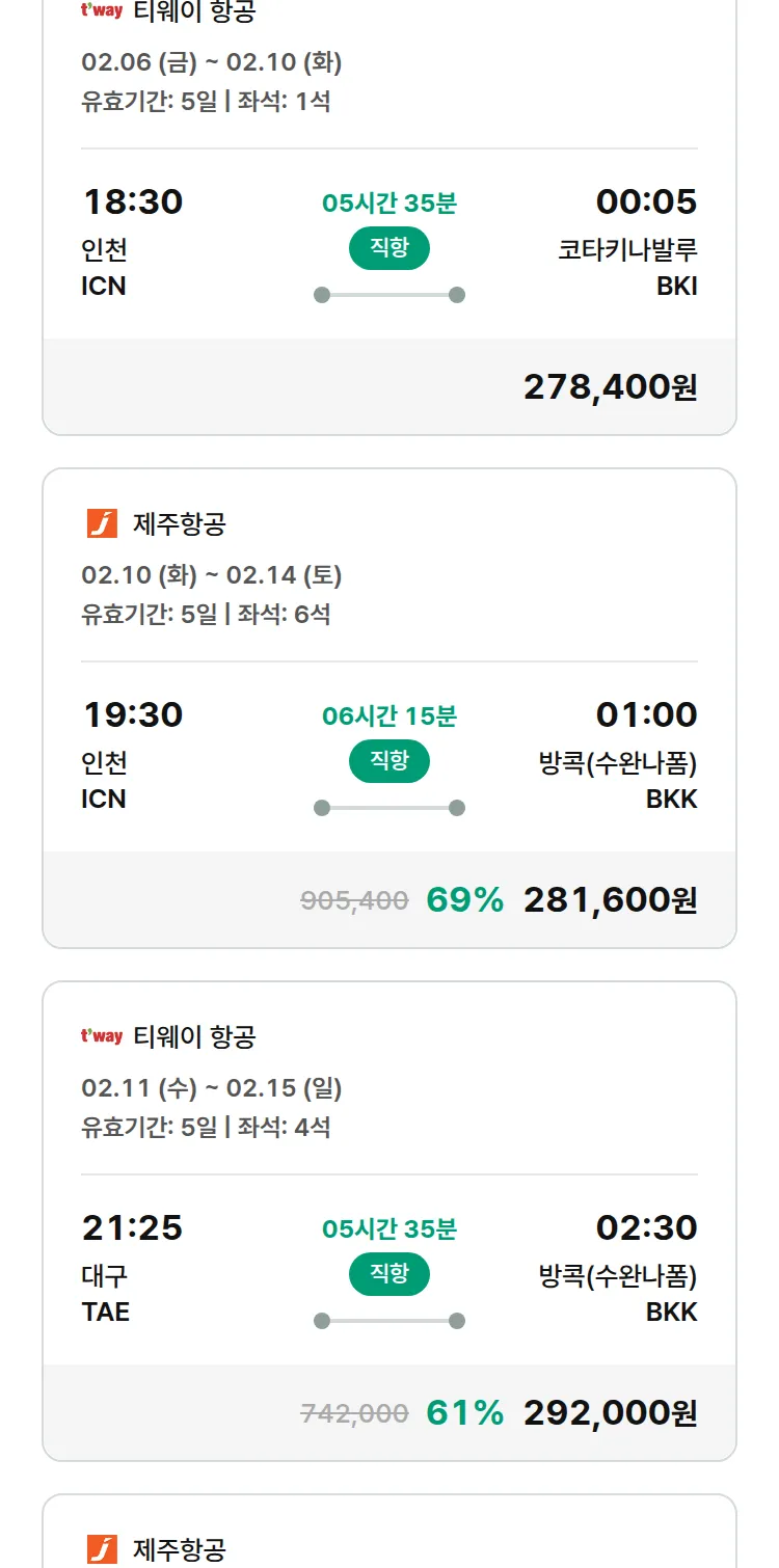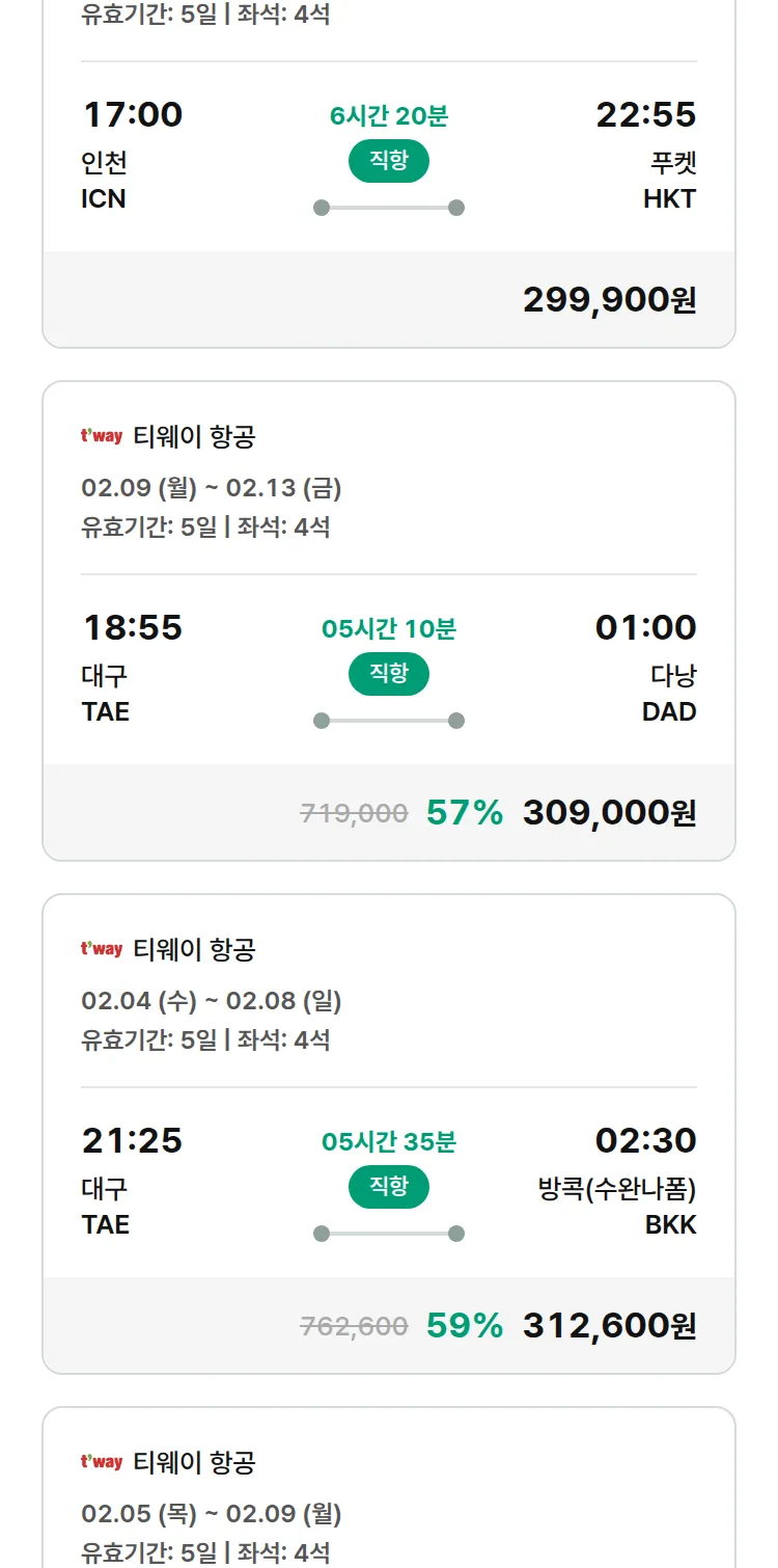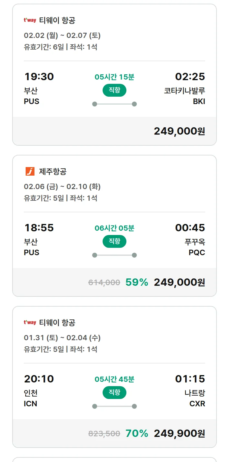 (1월 30일(금)) 땡처리 특가 항공권