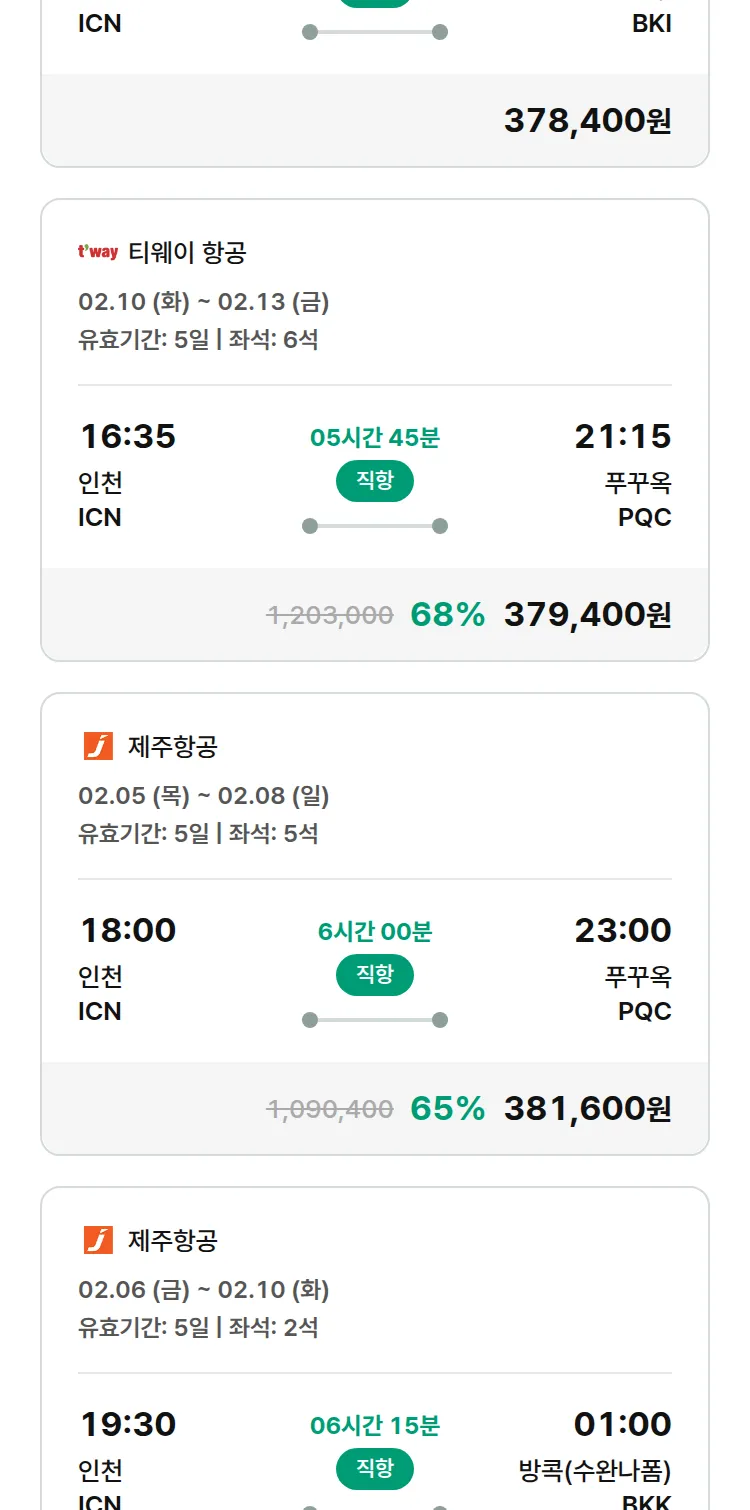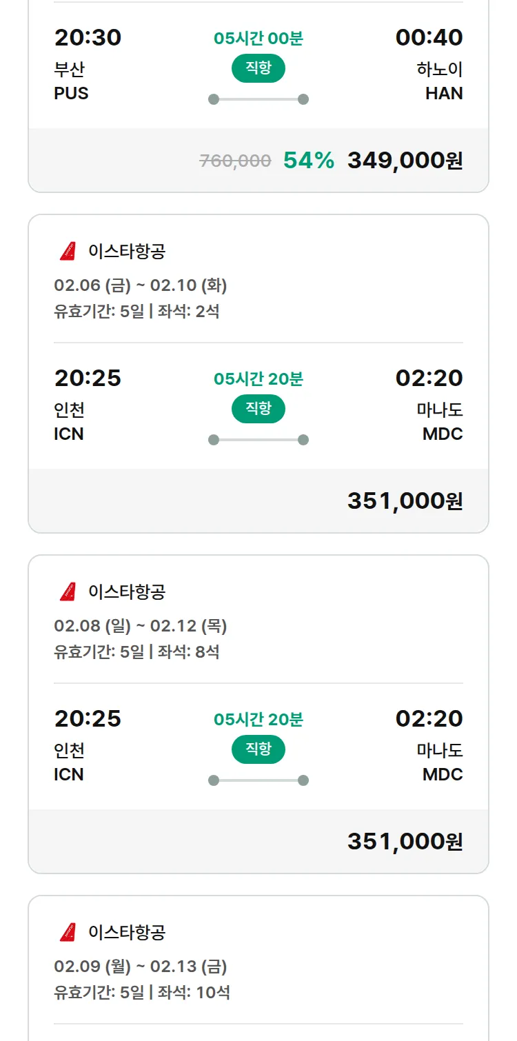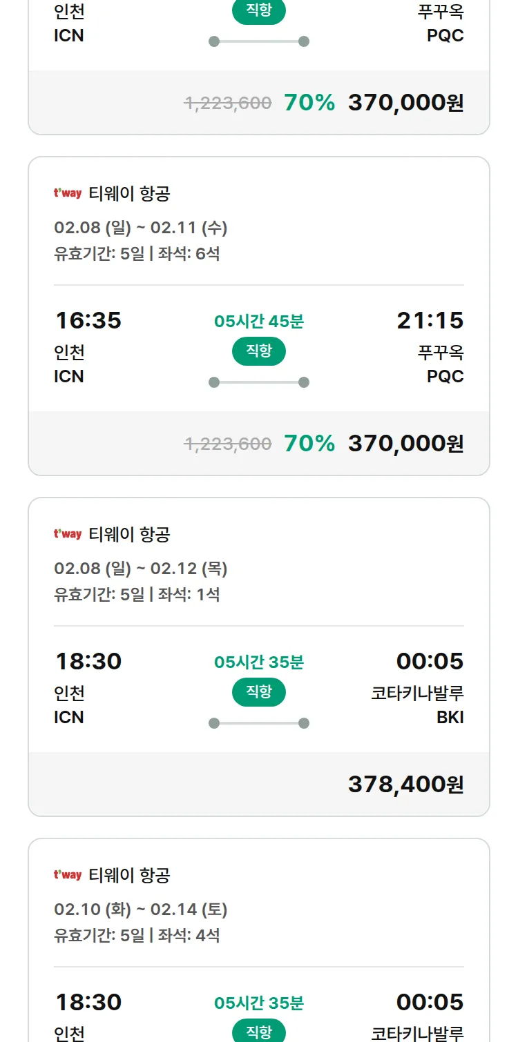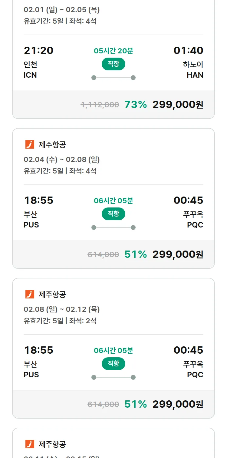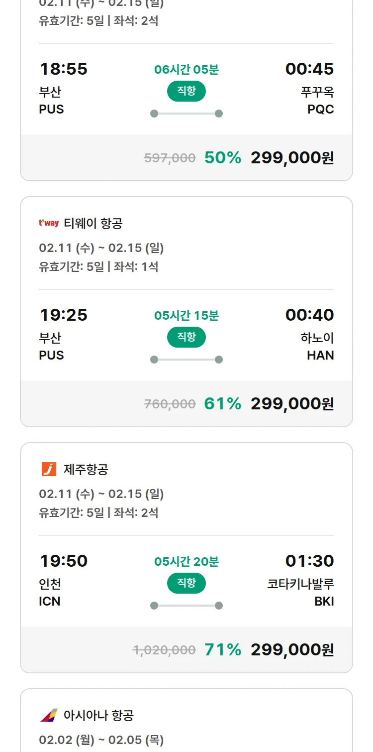 (1월 30일(금)) 땡처리 특가 항공권