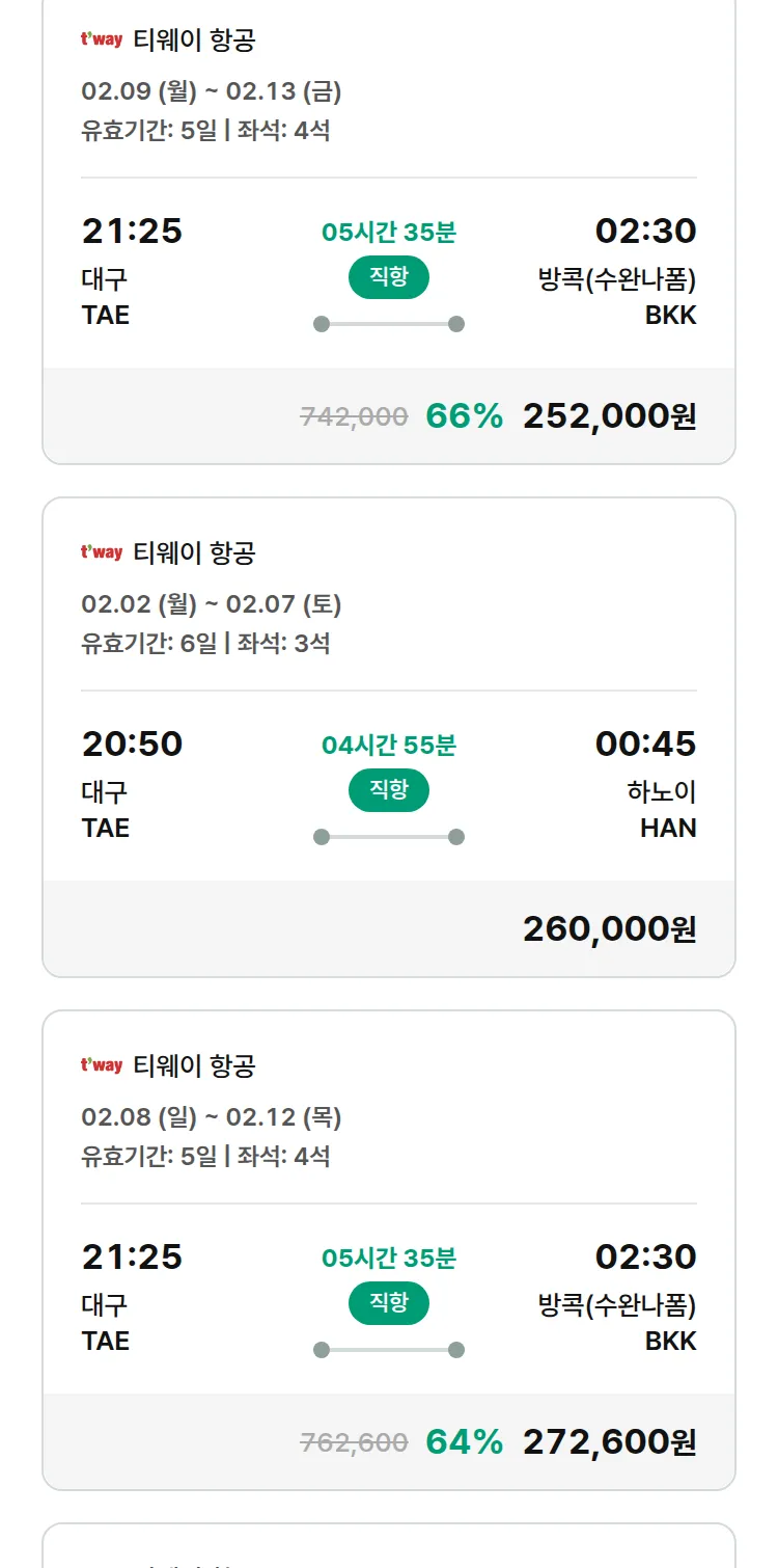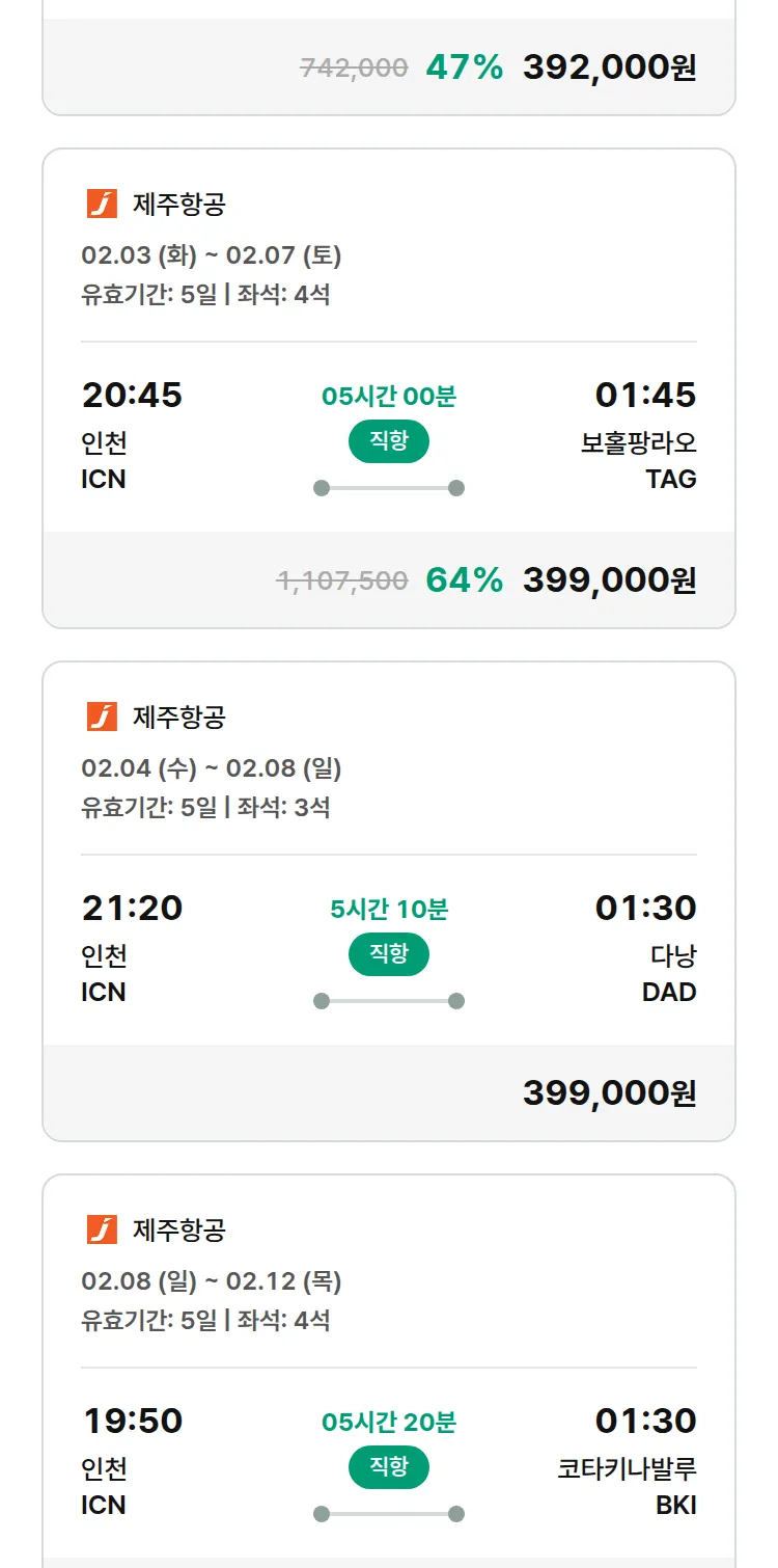 (1월 28일(수)) 땡처리 특가 항공권