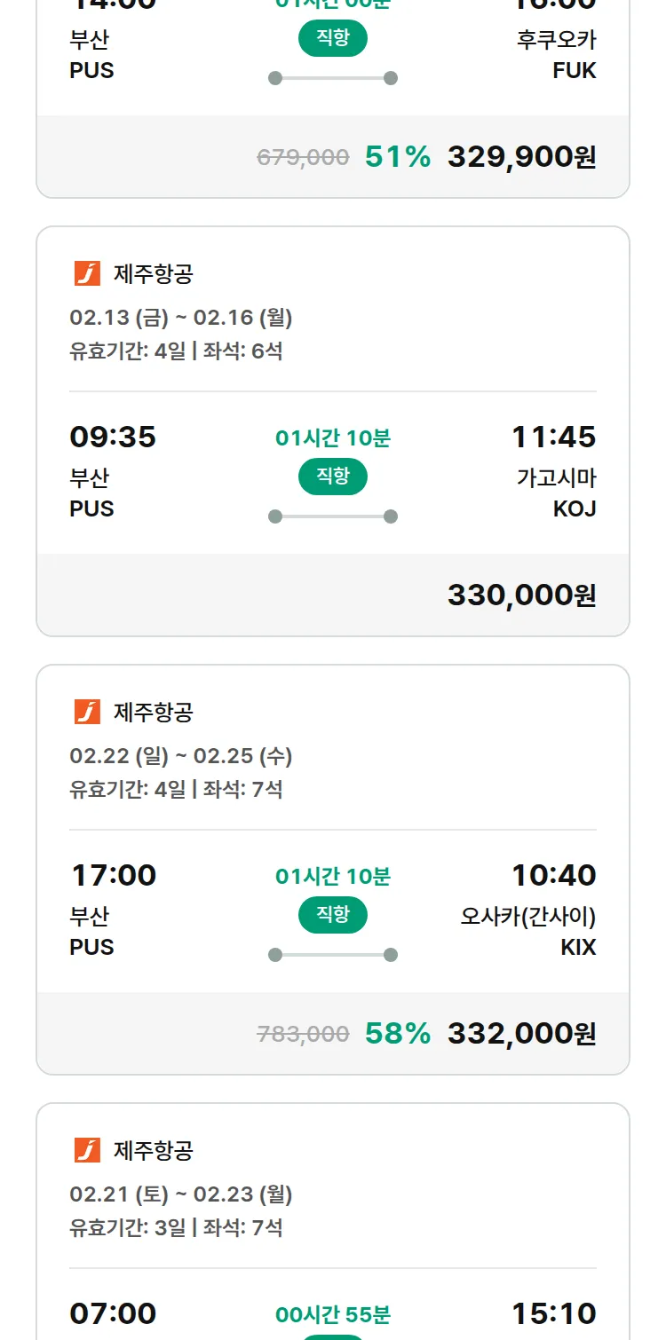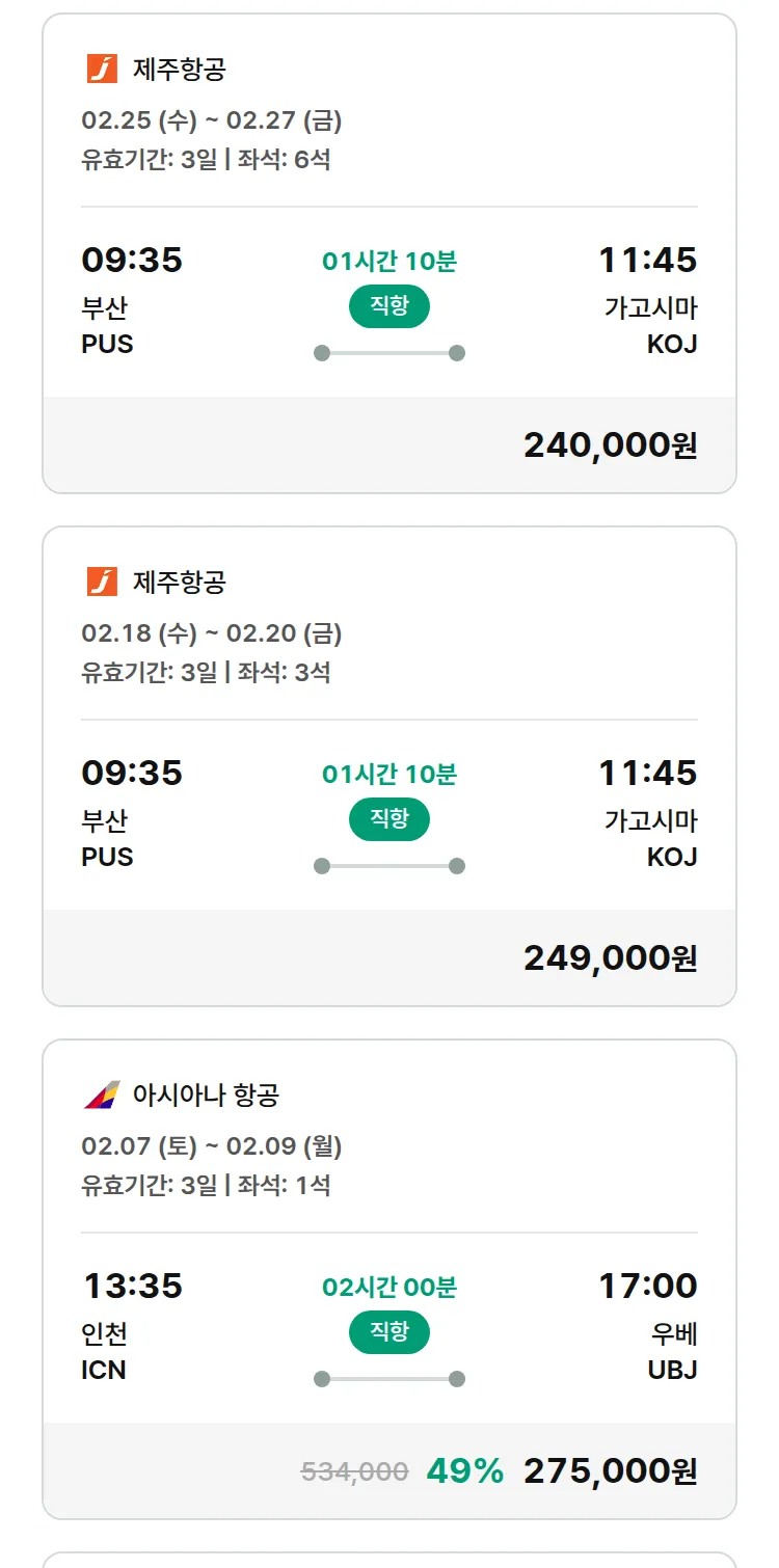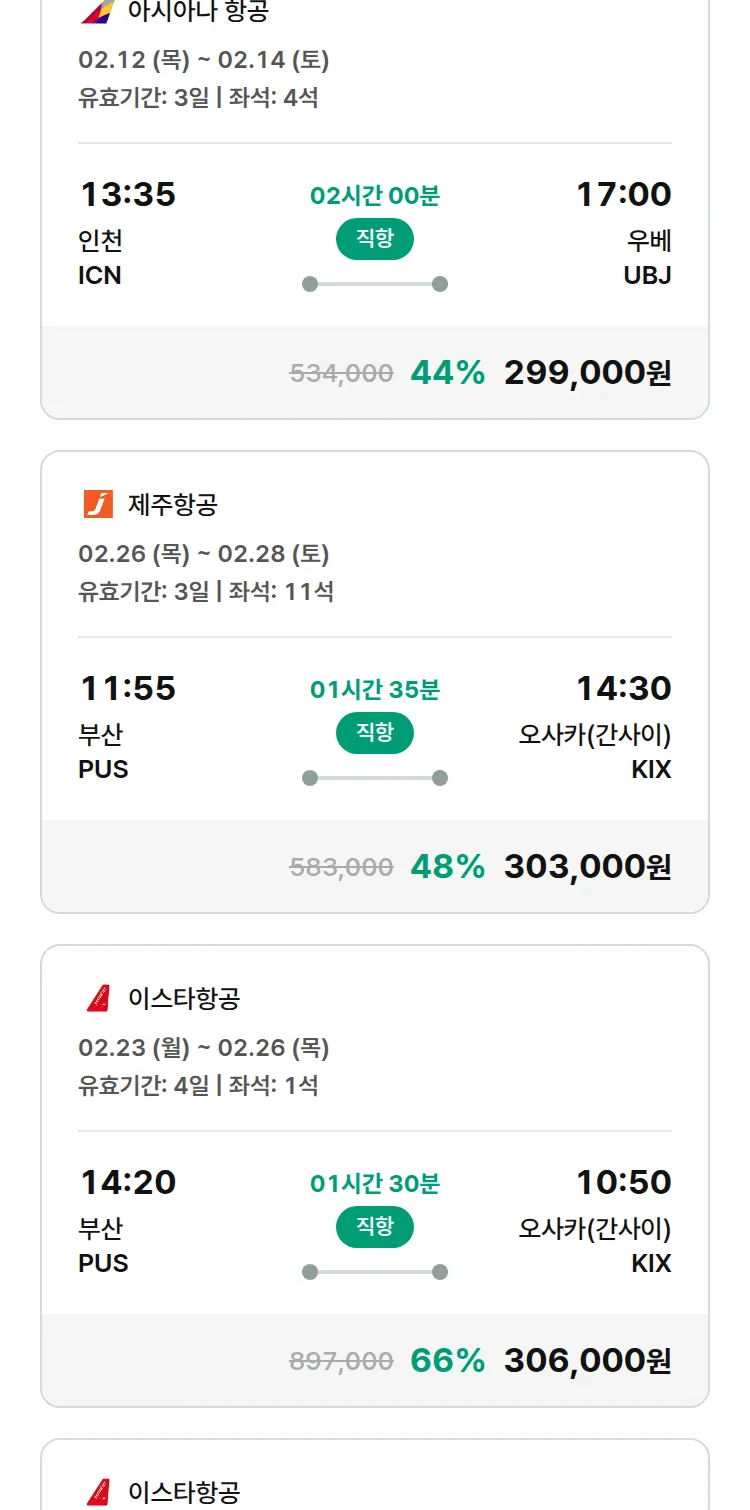 (1월 29일(목)) 모두투어 일본 특가 항공권