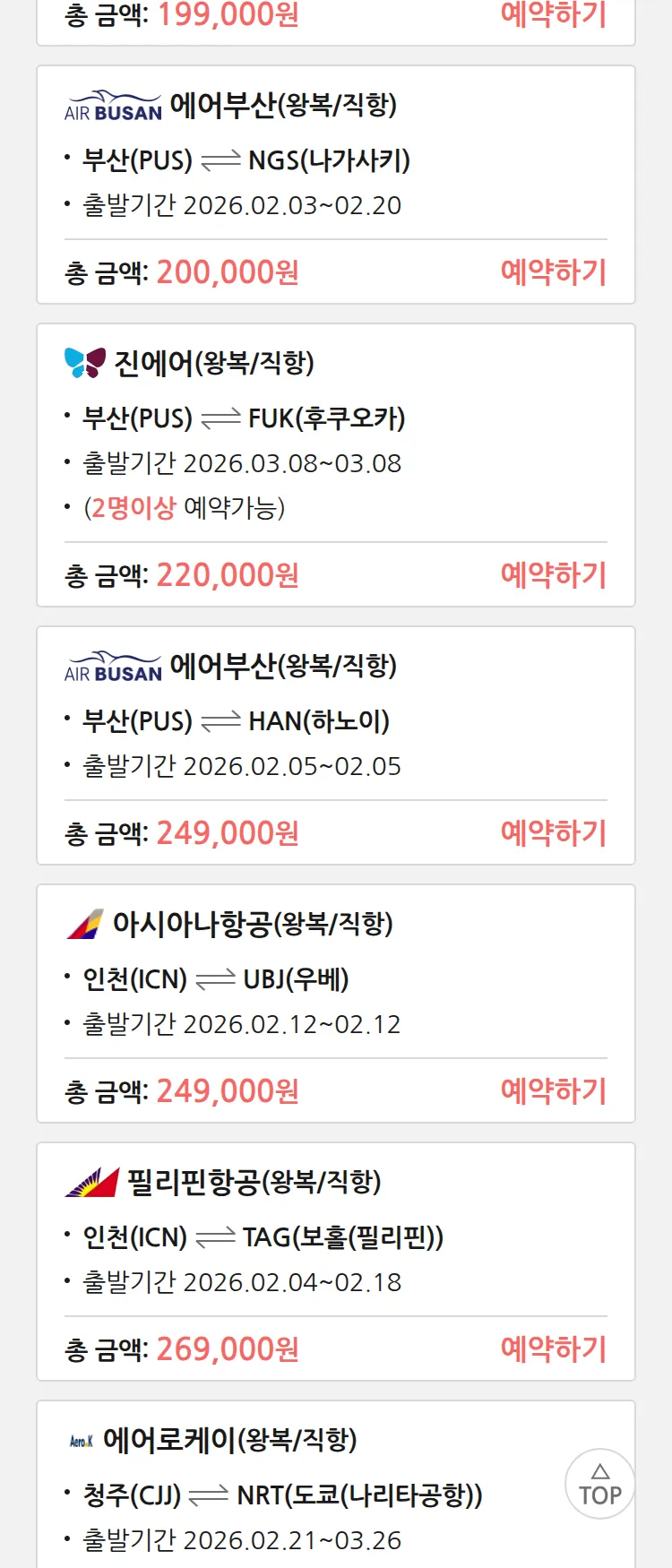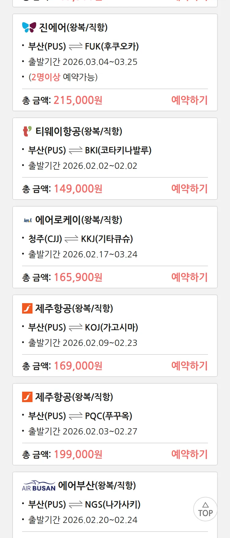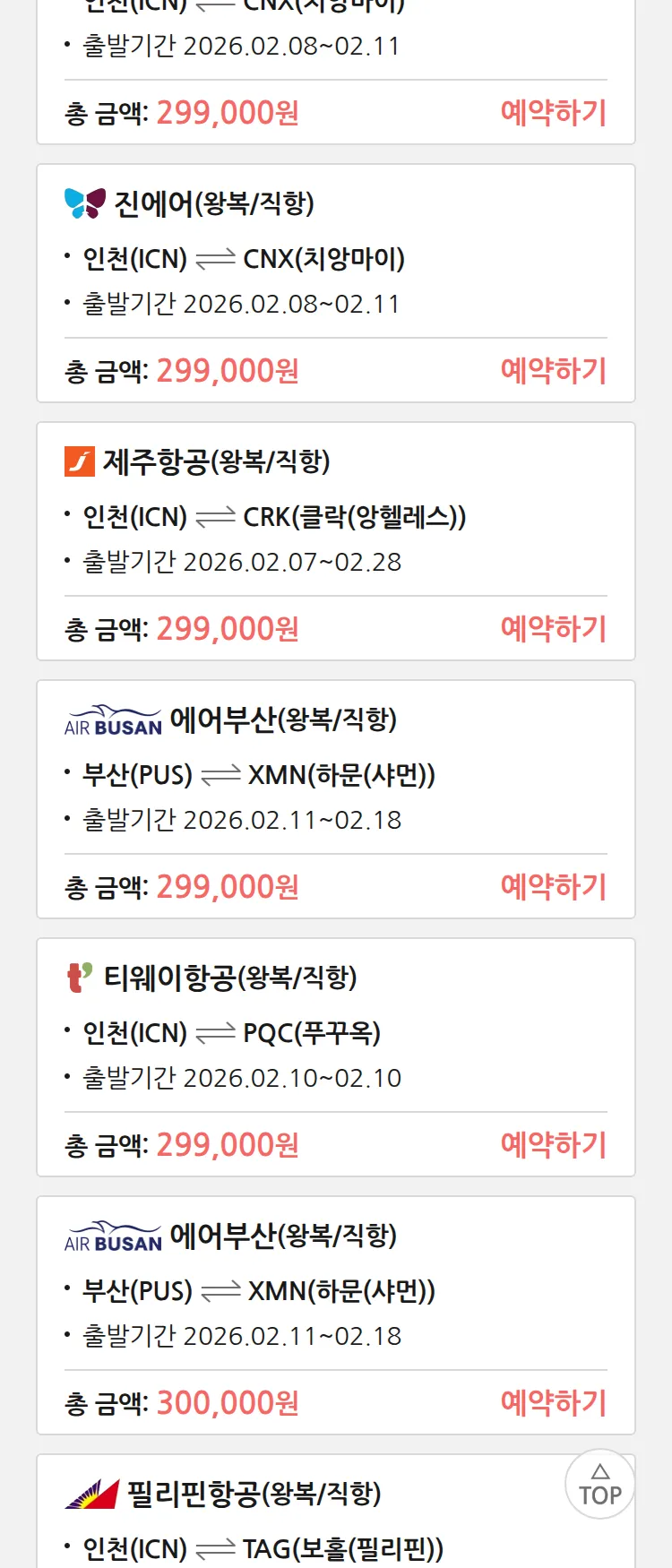 (1월 30일(금)) 땡처리 특가 항공권