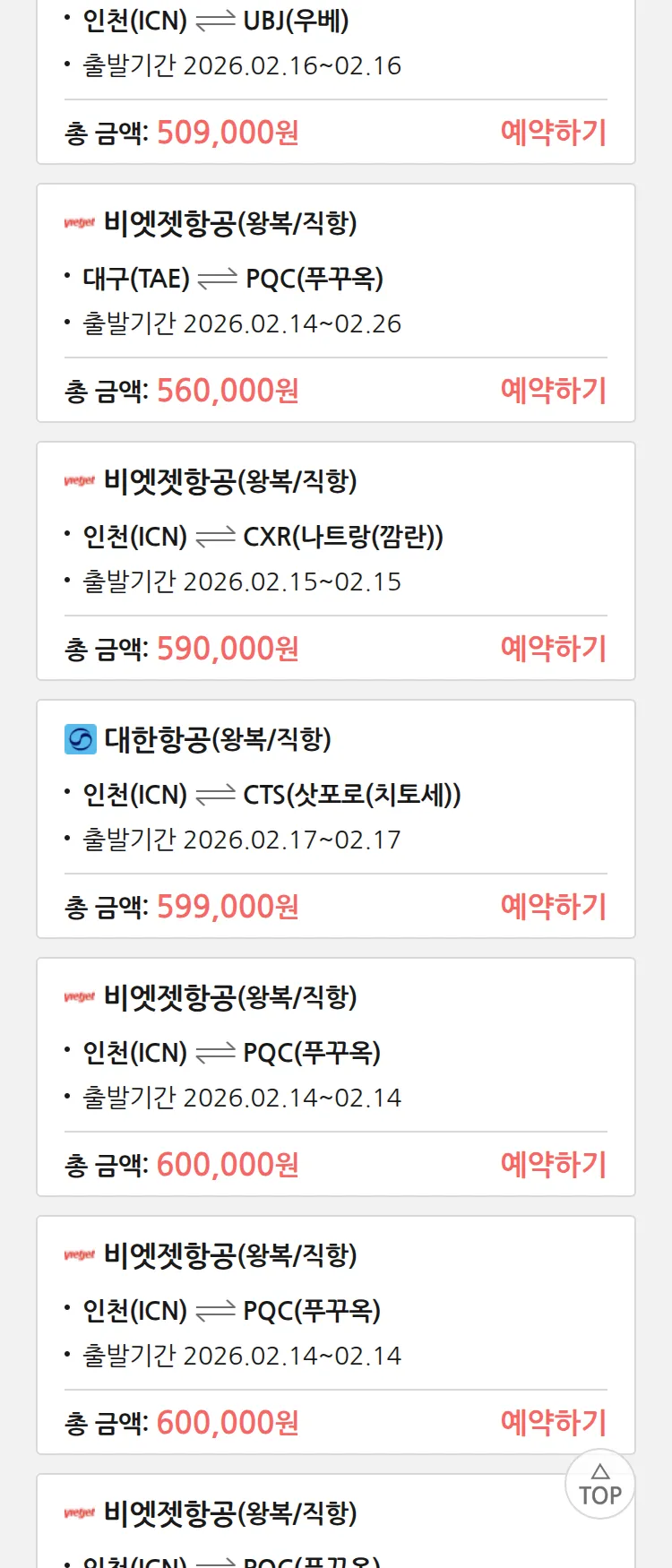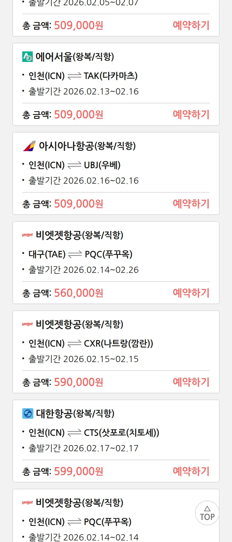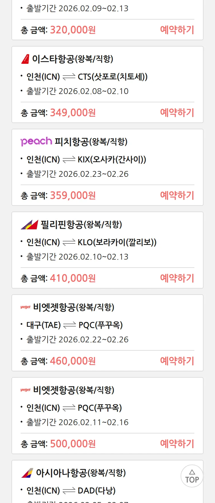 (1월 30일(금)) 땡처리 특가 항공권