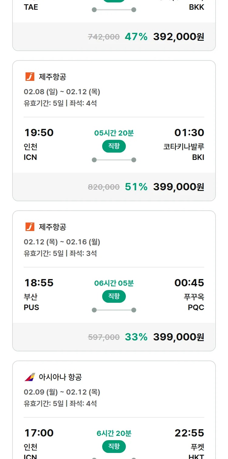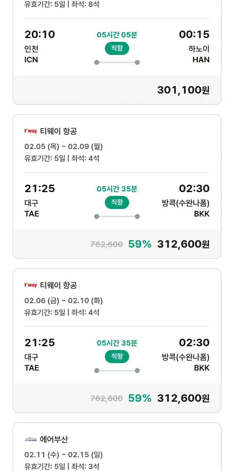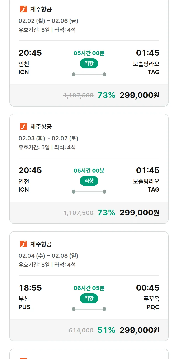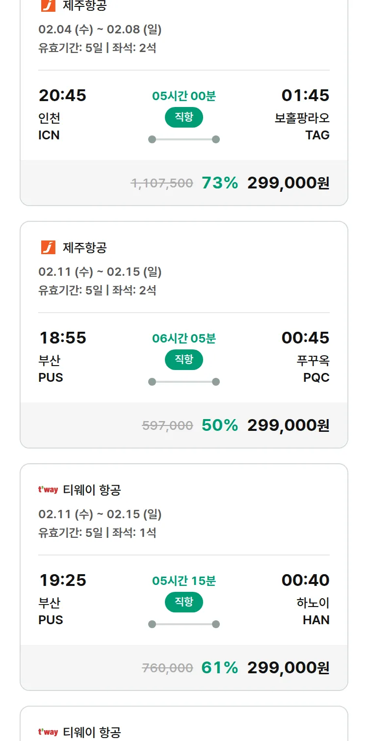 (1월 30일(금)) 땡처리 특가 항공권