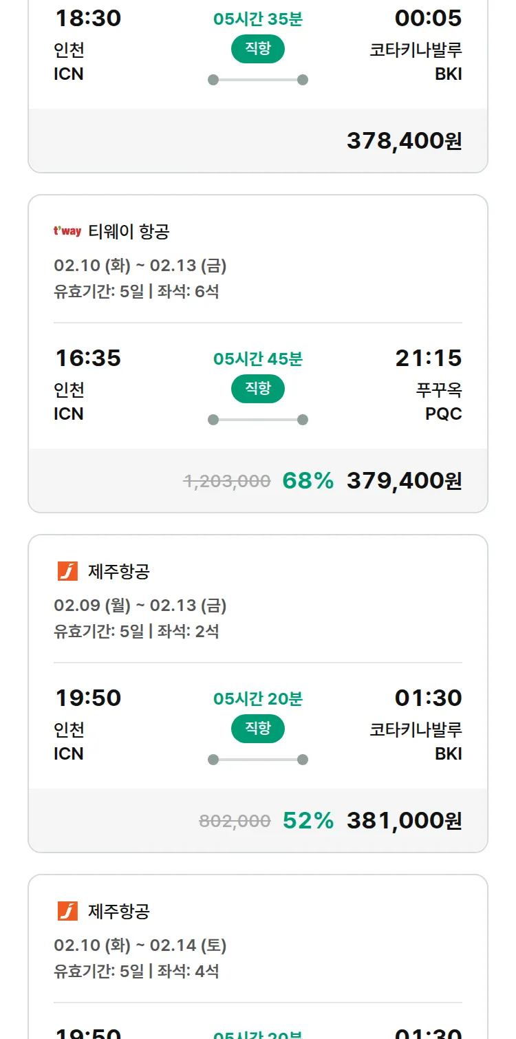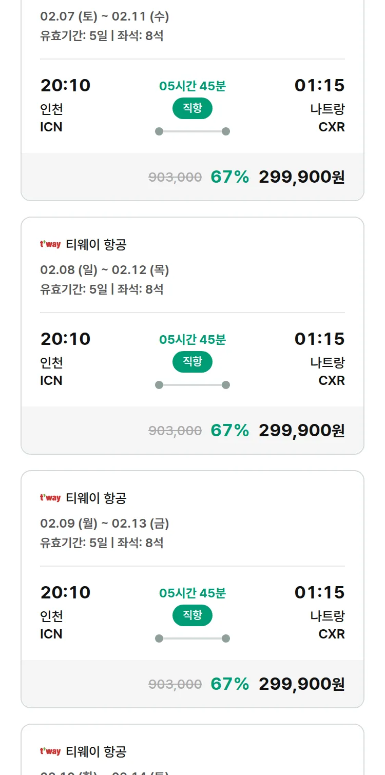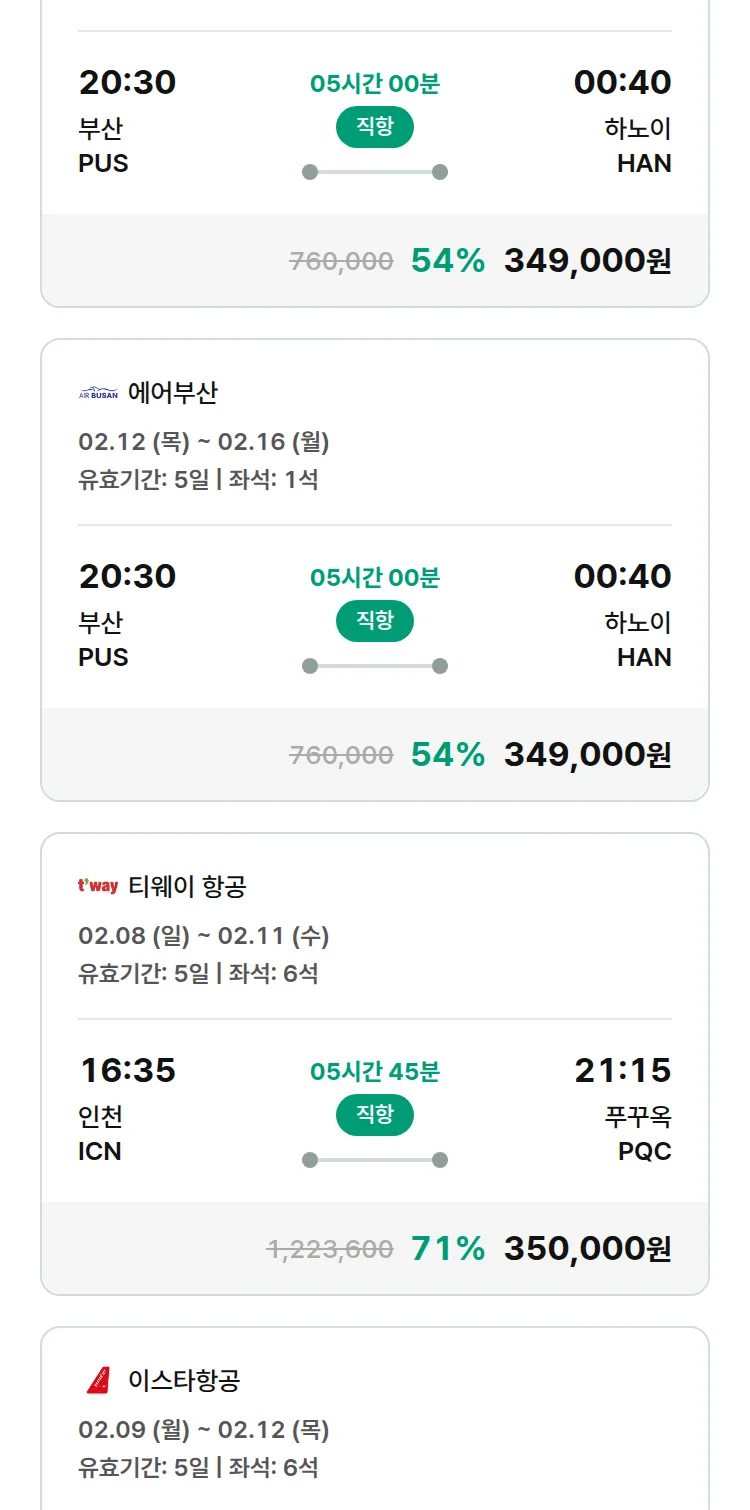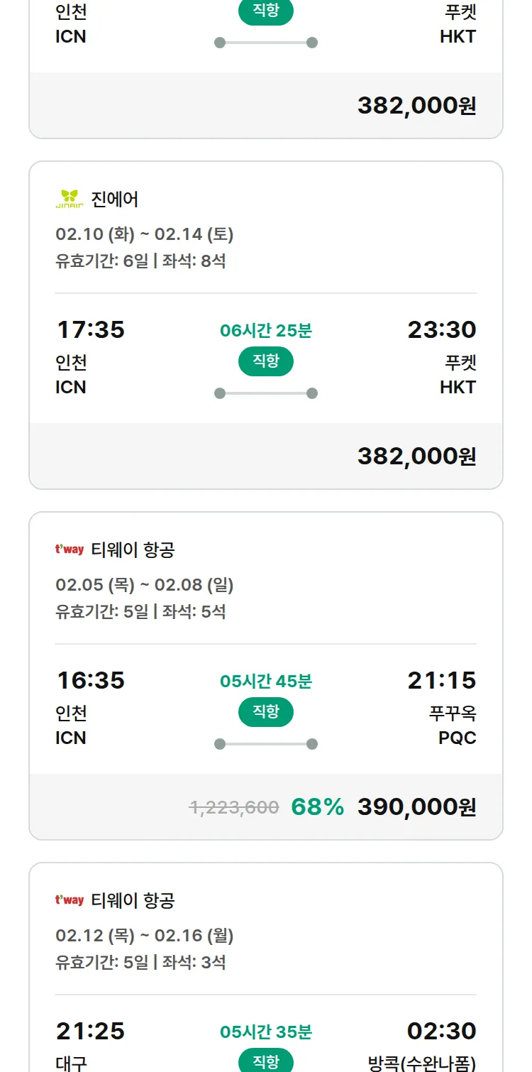 (1월 30일(금)) 땡처리 특가 항공권