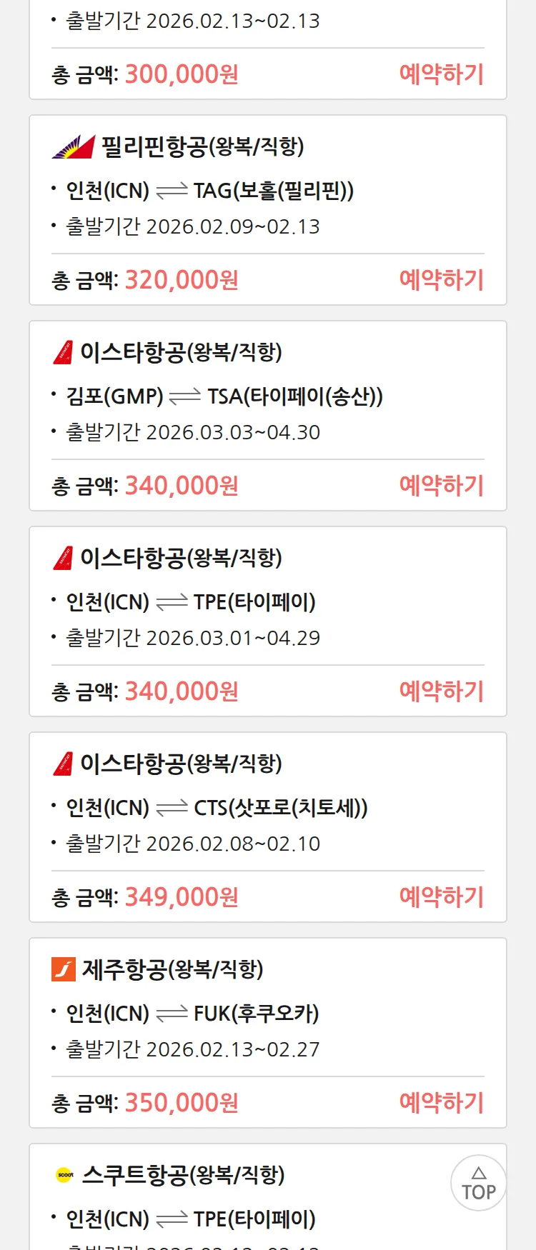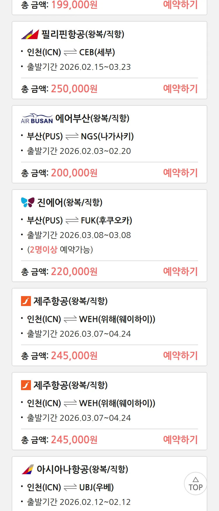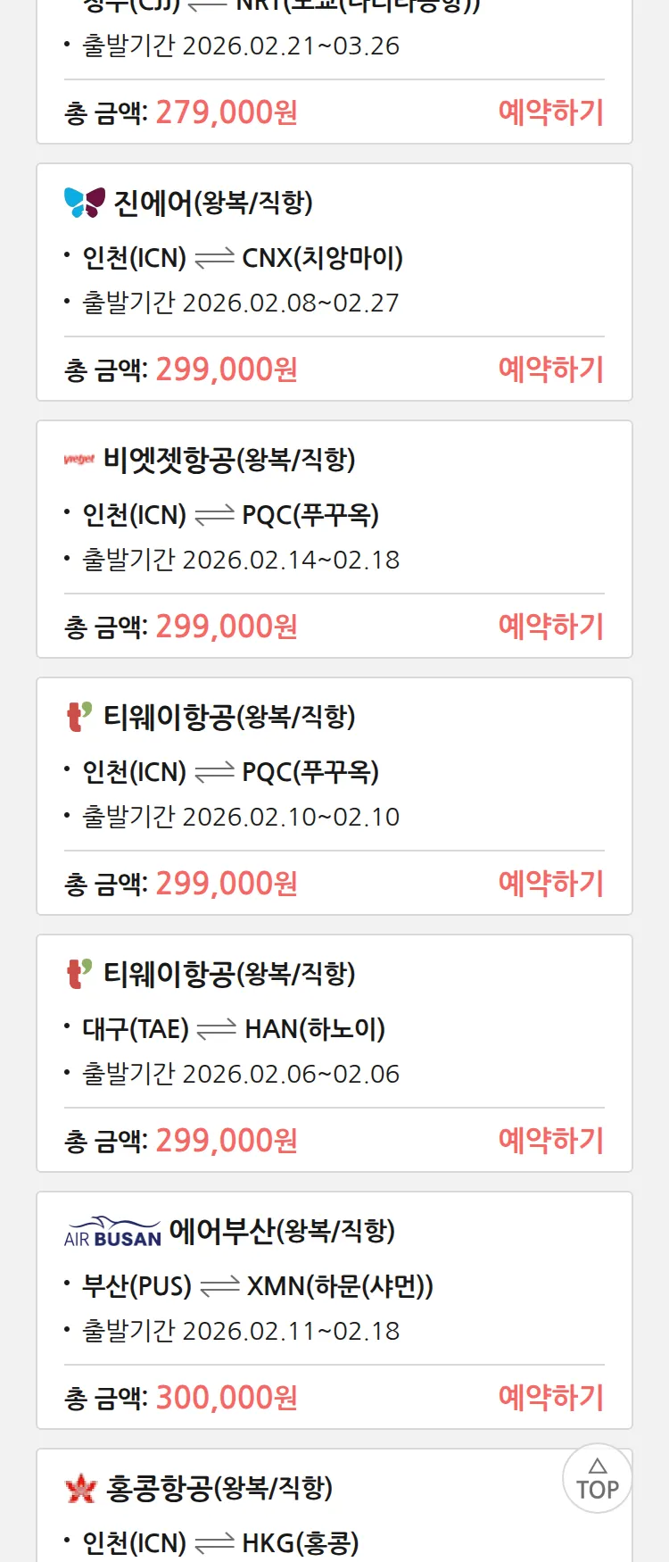 (1월 30일(금)) 땡처리 특가 항공권