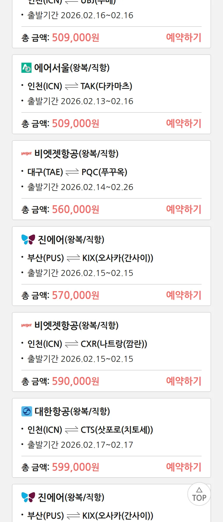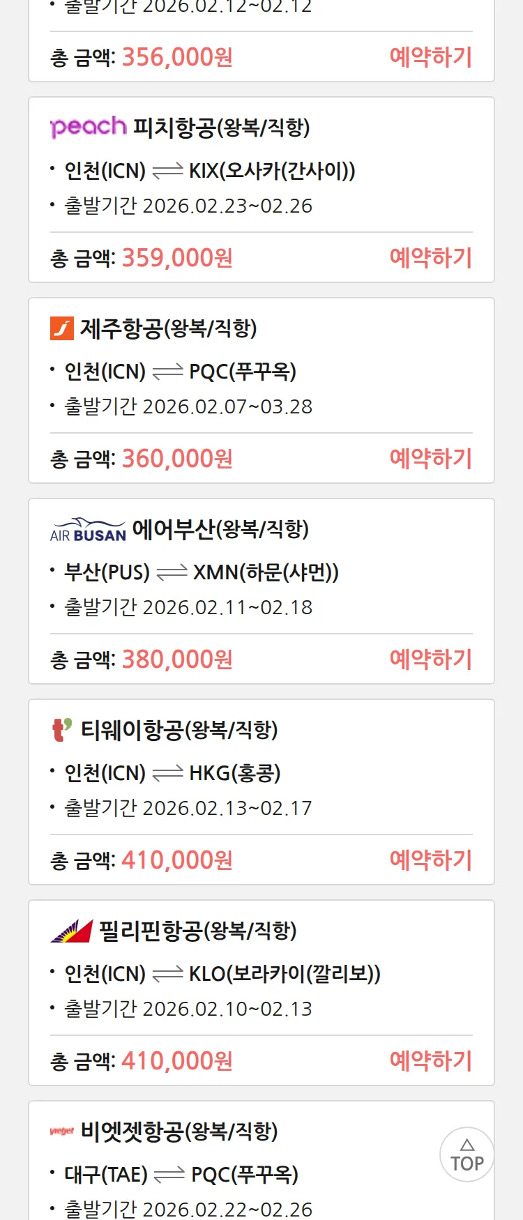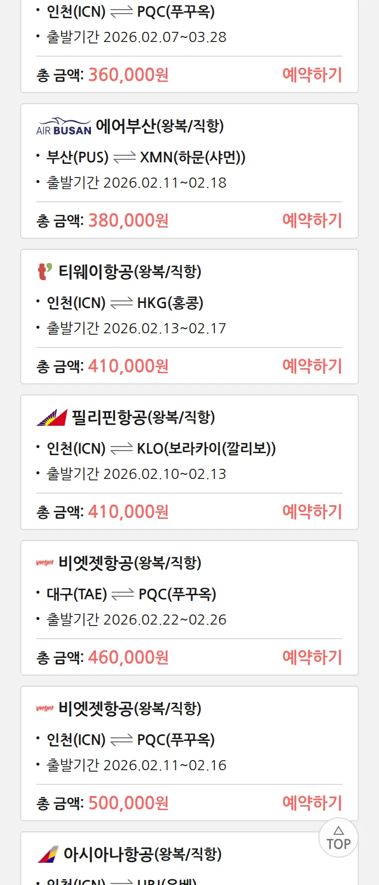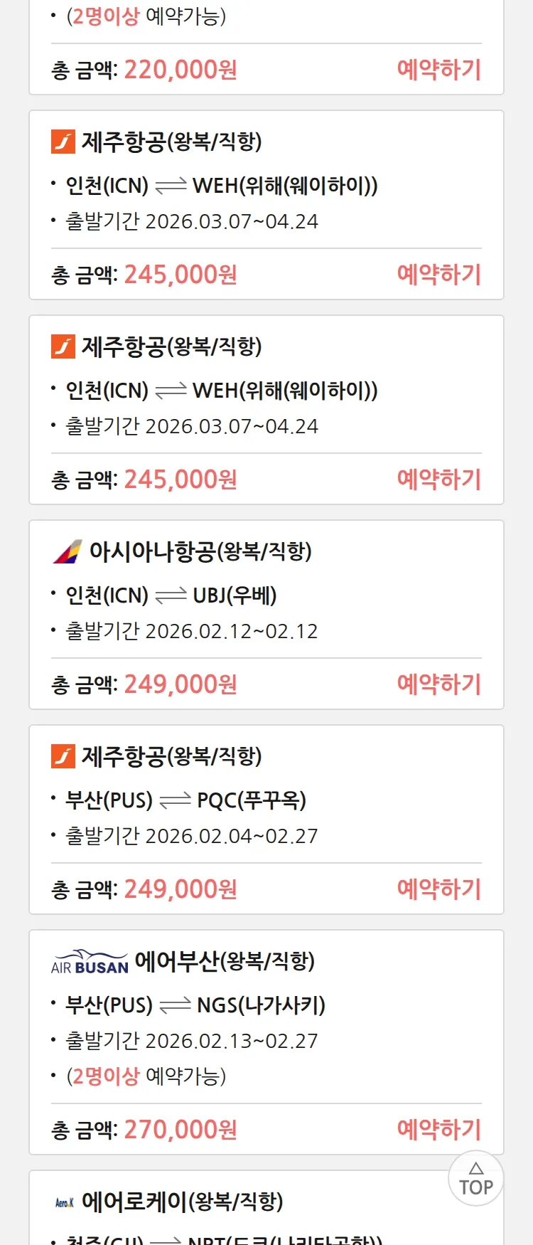 (1월 30일(금)) 땡처리 특가 항공권